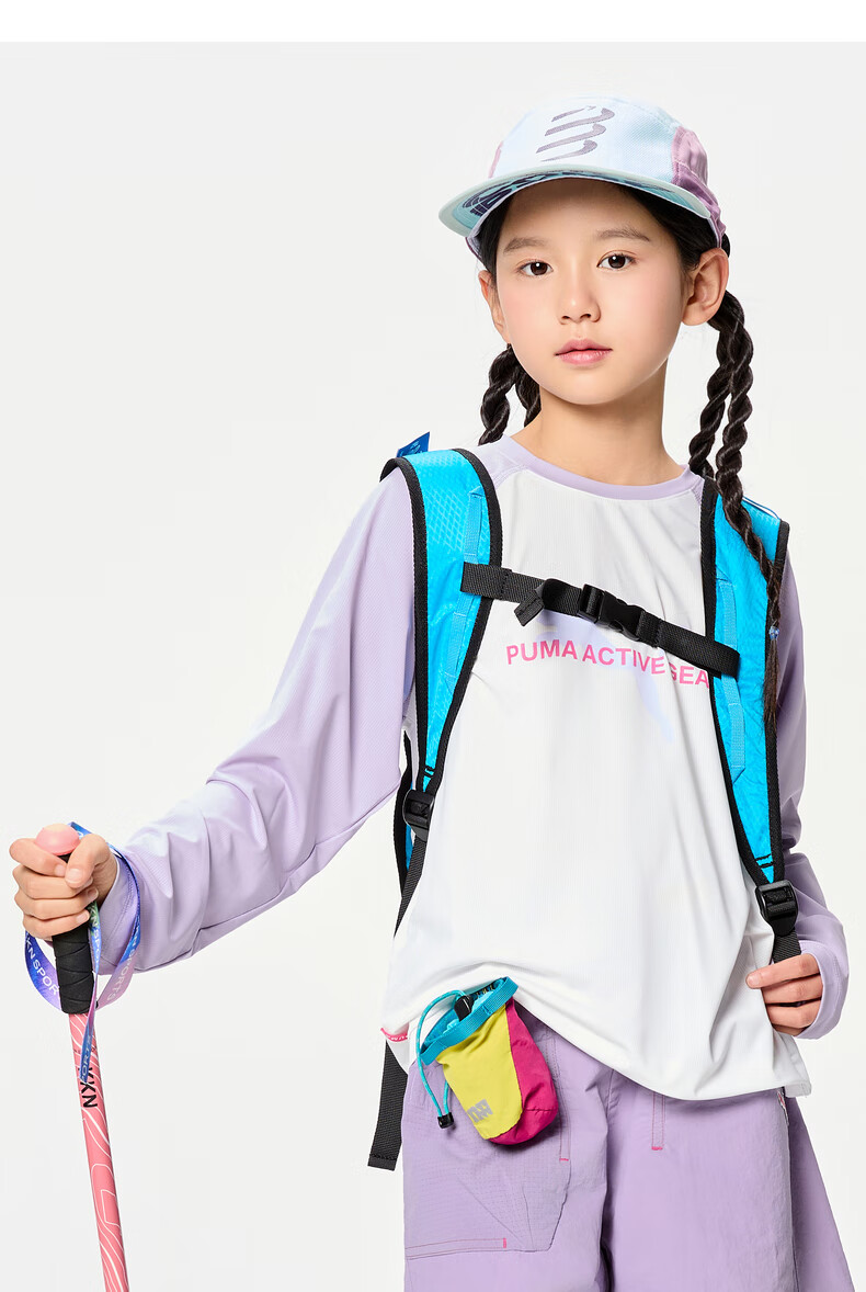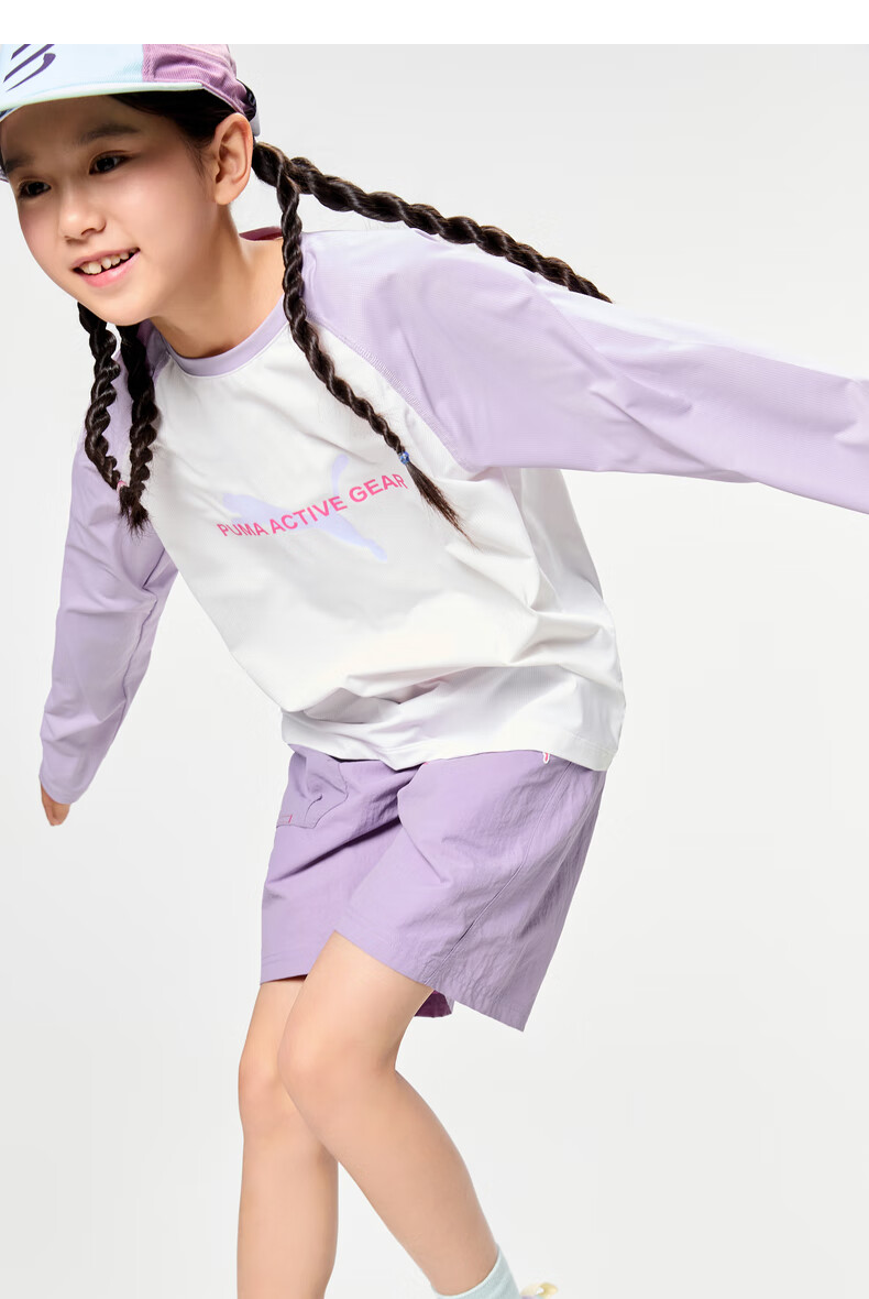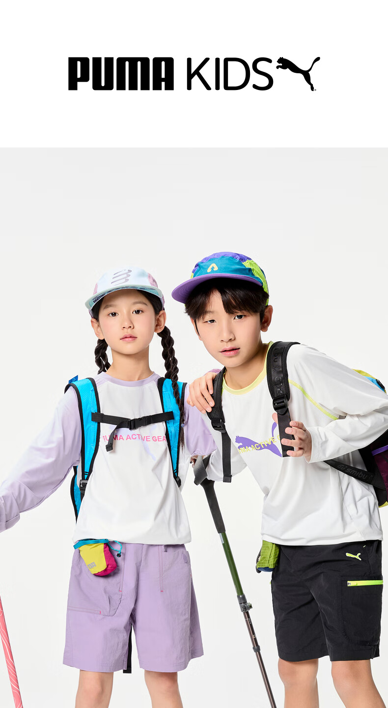 PUMA official authentic new children's summer long-sleeved T-shirt moisture-absorbent, quick-drying, breathable and comfortable, original white 10101 110