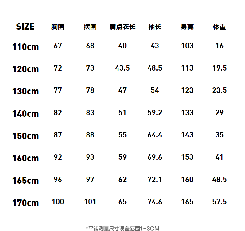 China (cm) 160-165/84-86 165-170 / 88-90 167-172 / 92-96 168-173 / 98-102 170-176 / 106-110