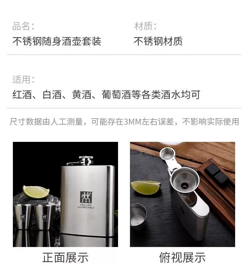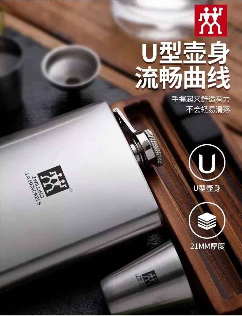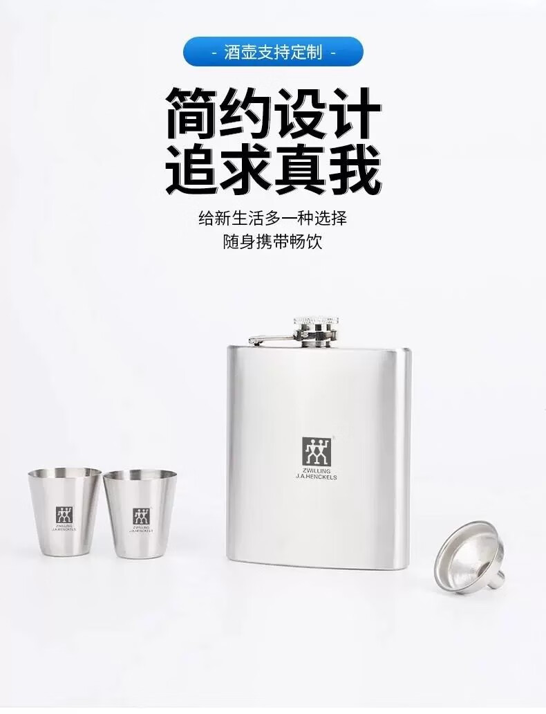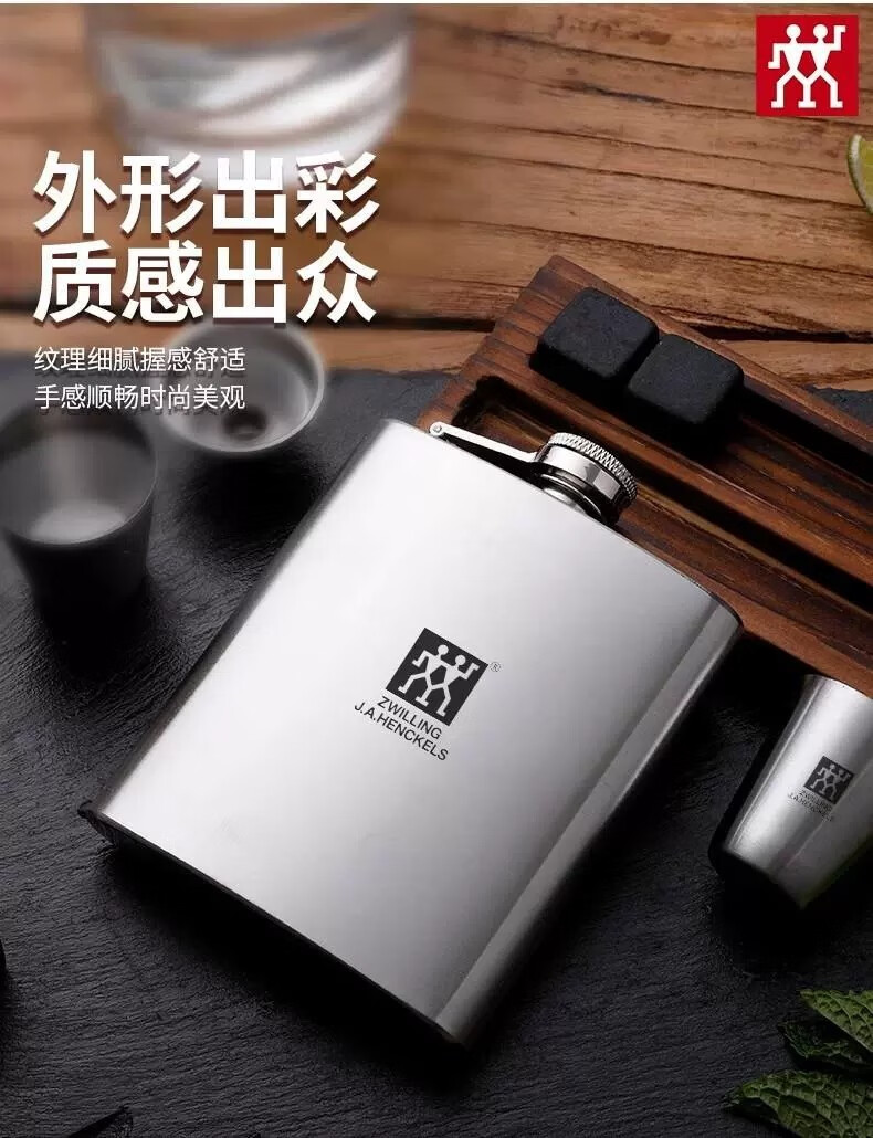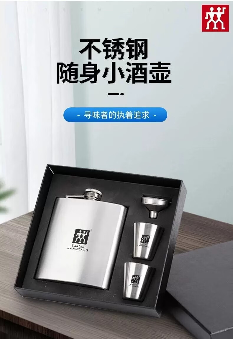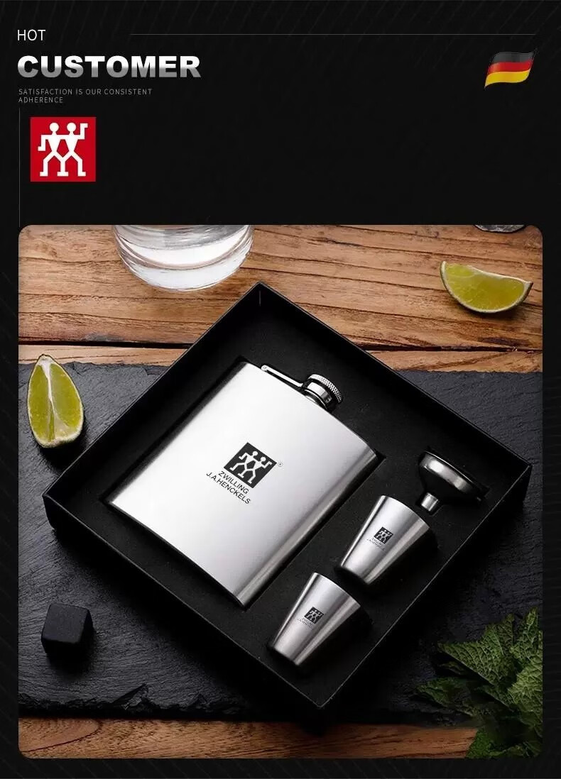 Zwilling German-made 304 stainless steel flask, white wine bottle, wine set, portable set, outdoor portable 304 small flask, 4-piece set