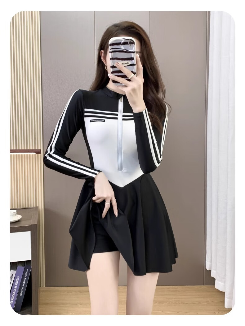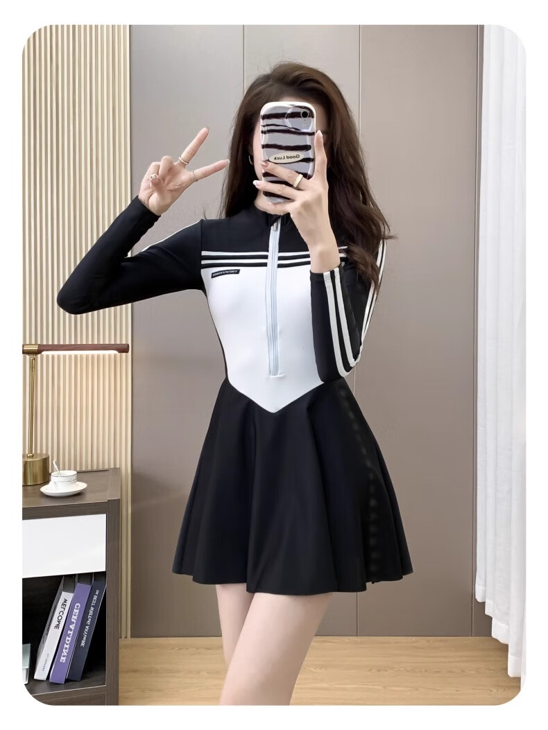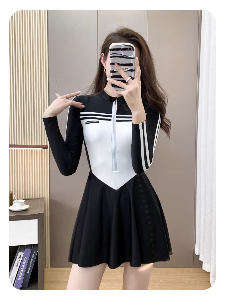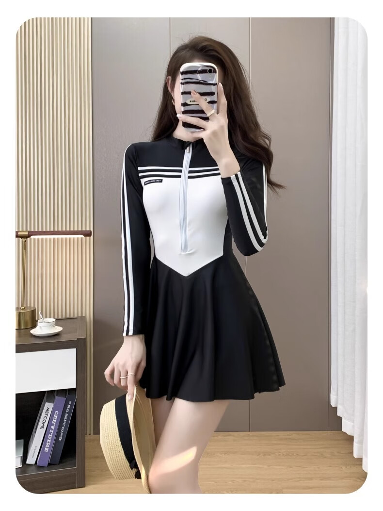 Bai Qixin swimsuit women's conservative and high-end one-piece swimsuit 2026 new summer professional belly-covering slimming large size swimsuit black and white one-piece long-sleeved swimsuit 80-120Jin Jin equals 0.5 kg