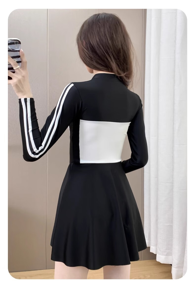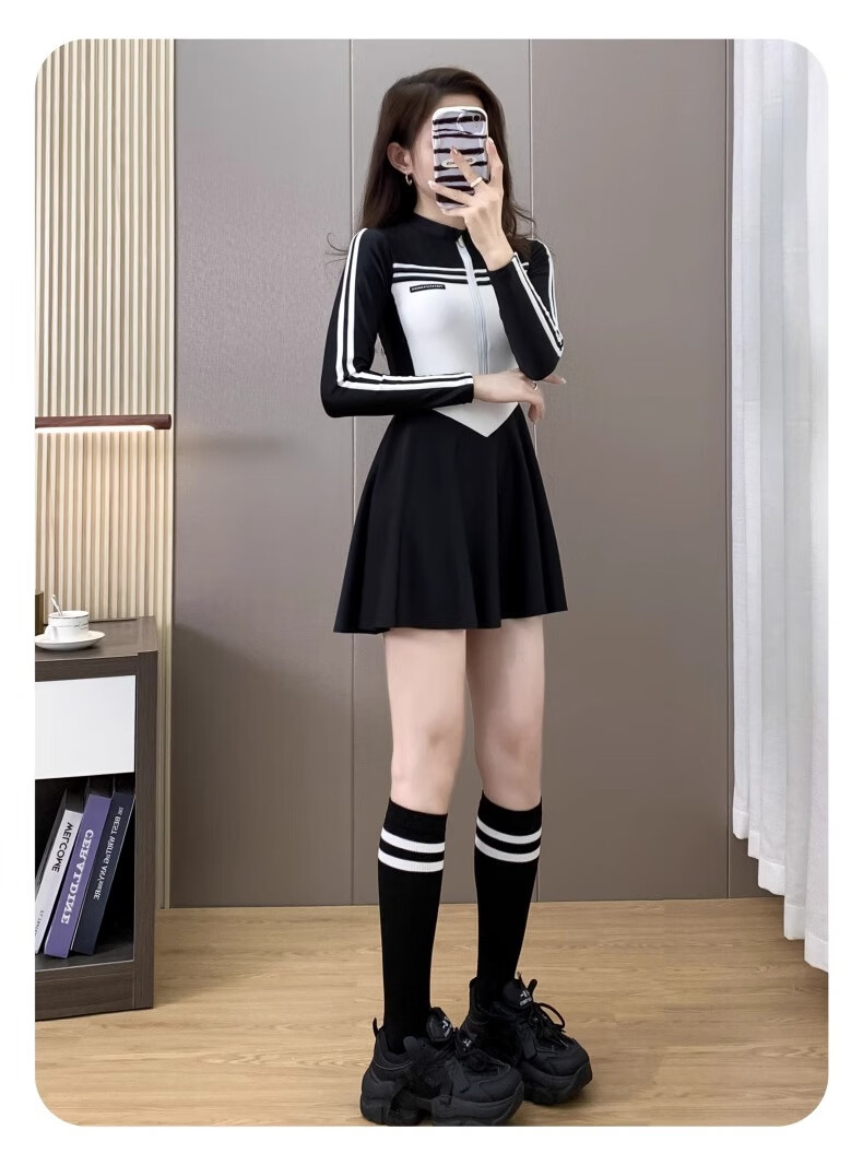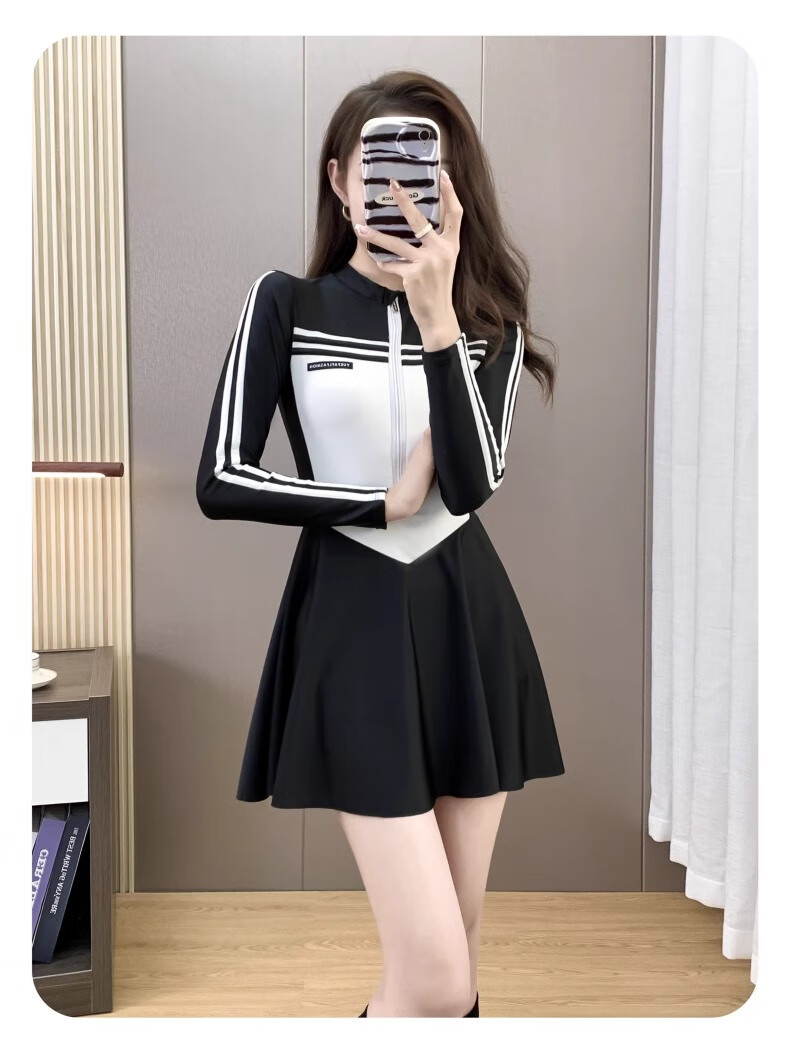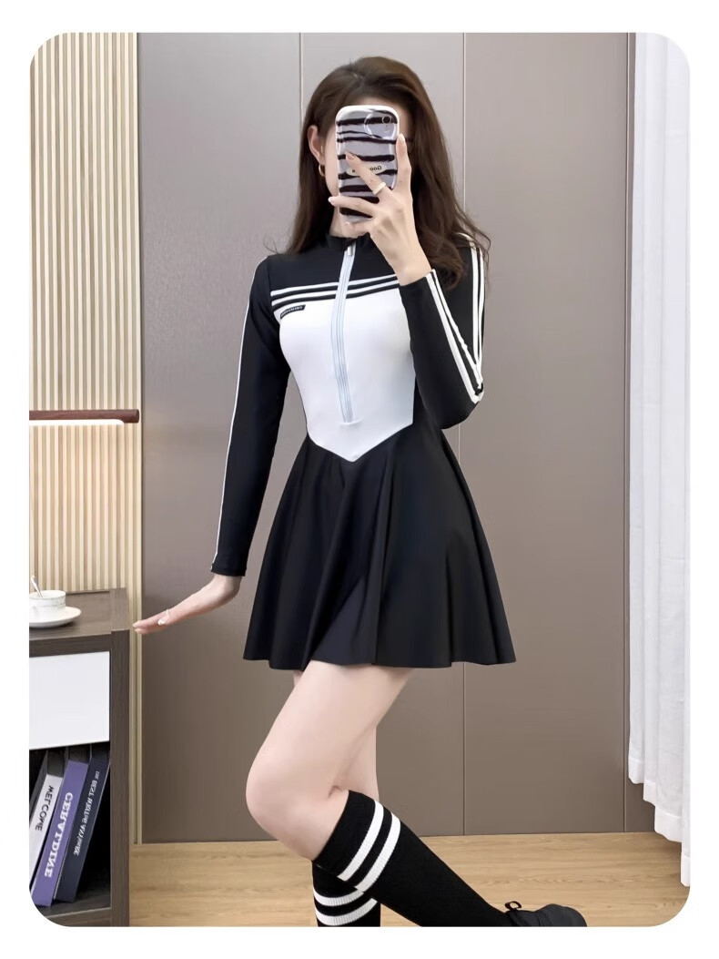 Bai Qixin swimsuit women's conservative and high-end one-piece swimsuit 2026 new summer professional belly-covering slimming large size swimsuit black and white one-piece long-sleeved swimsuit 80-120Jin Jin equals 0.5 kg