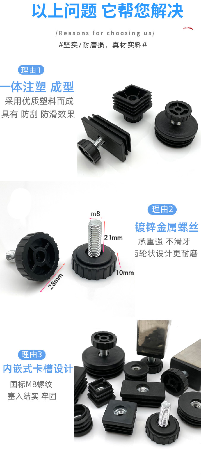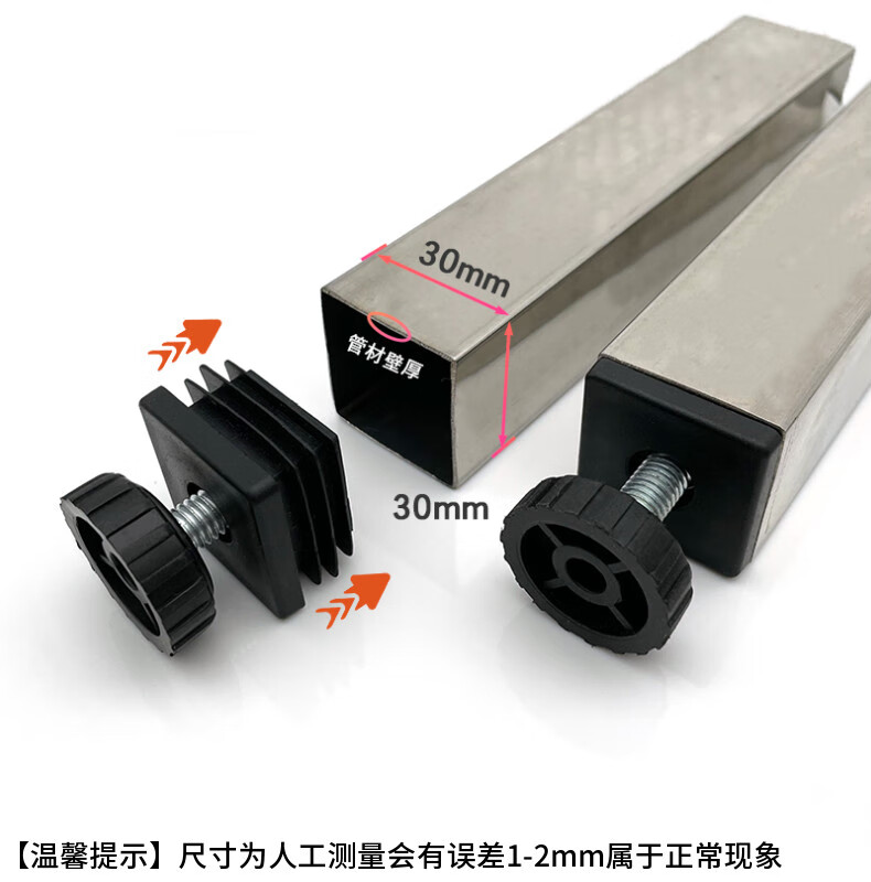 Junkiss 28*M8 Plastic Adjustable Feet Stainless Steel Nut Square Tube Plug Screw Adjustable Table and Chair High Support Foot Pad 30 38*38 Square Nut + 28x21 Screw Long