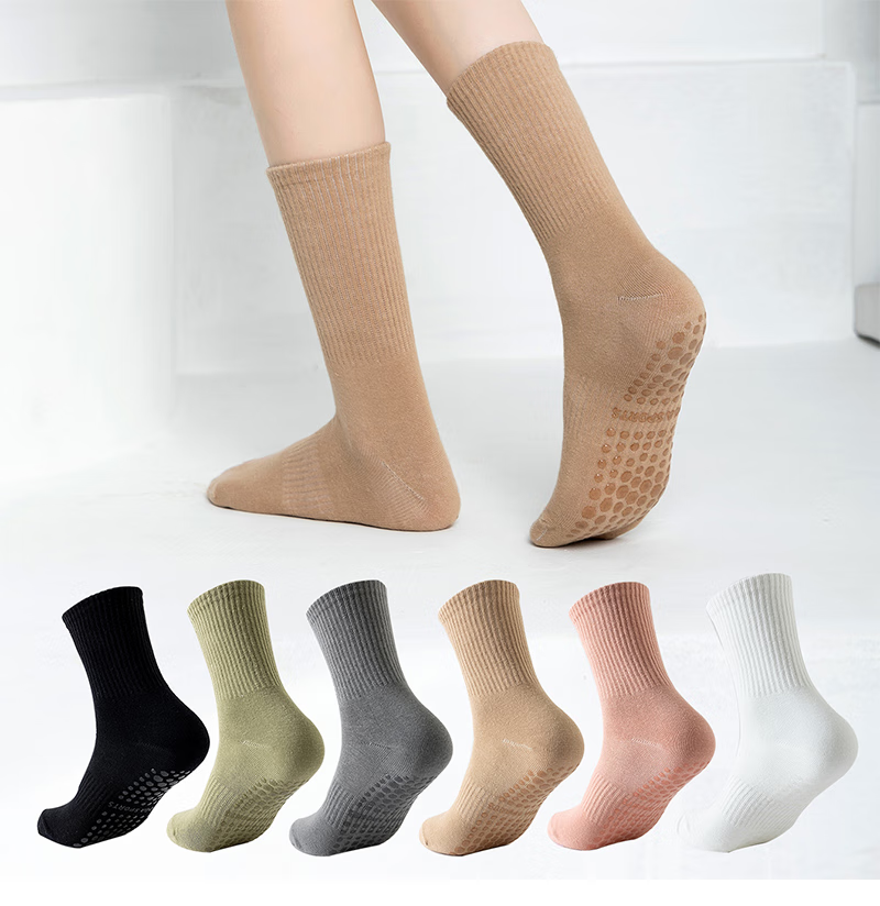 Yu Zhaolin (YUZHAOLIN) Yoga Socks Professional Summer Thin Sports Socks Indoor Fitness Socks Pilates Black + White + Khaki 3 Pairs One Size