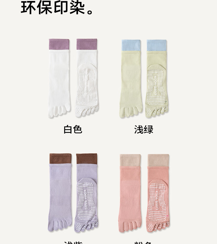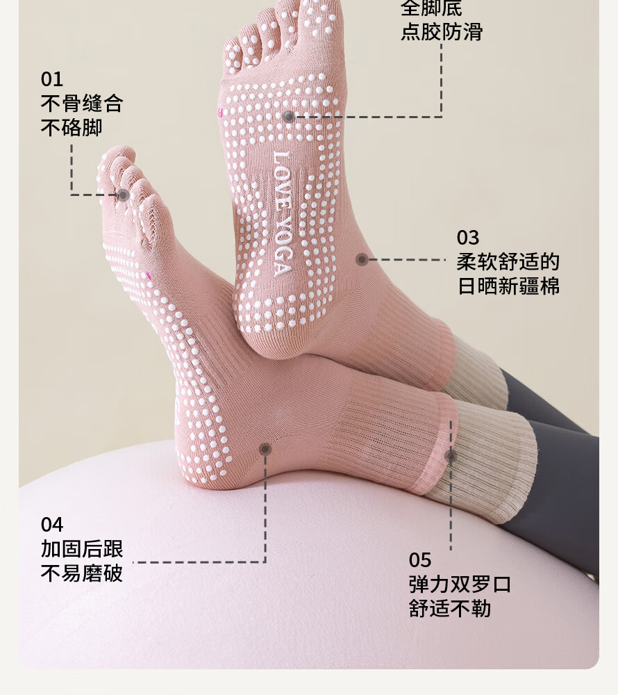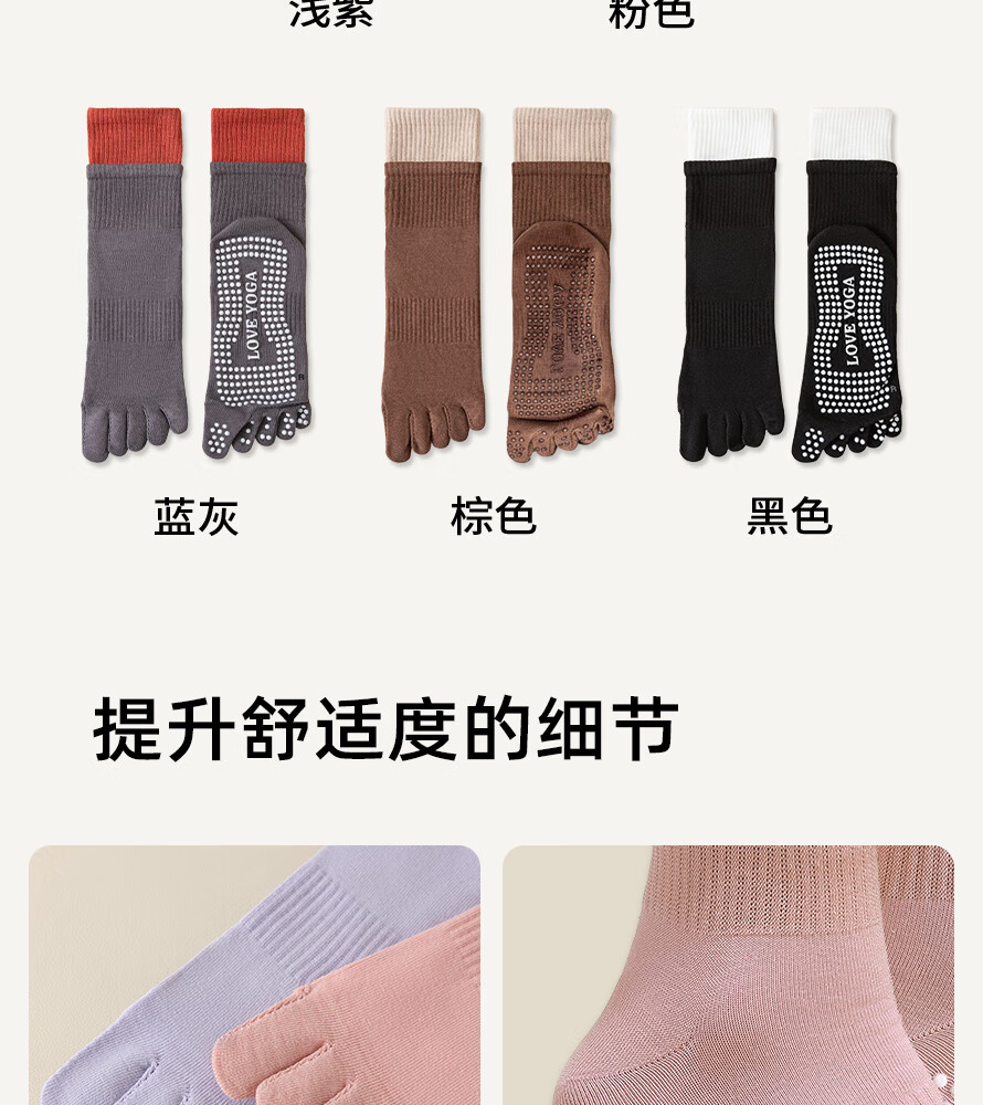 Yoga socks for women, professional non-slip socks, pure cotton toe socks, Pilates split toe socks, women's indoor fitness mid-calf socks, pink + light purple + gray + black + black