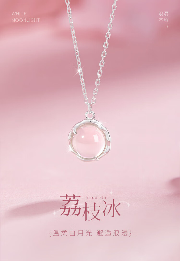 Chinese Gold Lychee Ice Silver Necklace for Women 2025 New Jade Pendant Girls Niche Birthday Gift for Girlfriends and Best Friends Lychee Ice Necklace