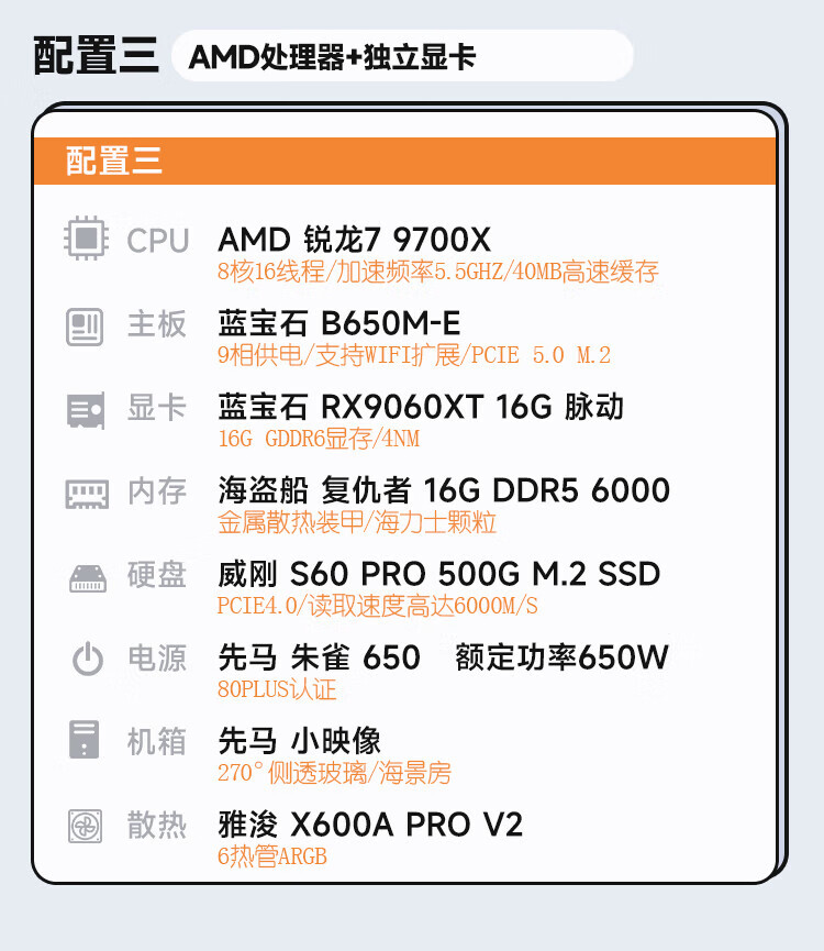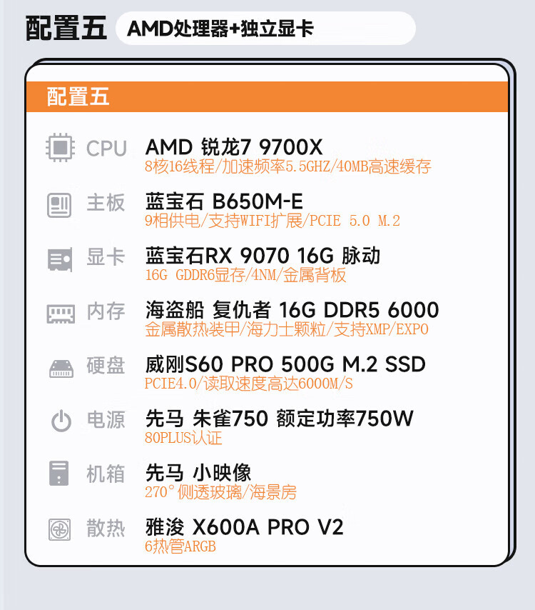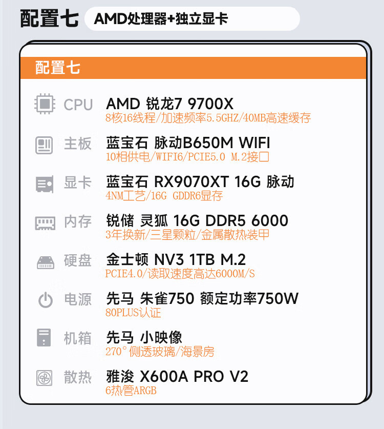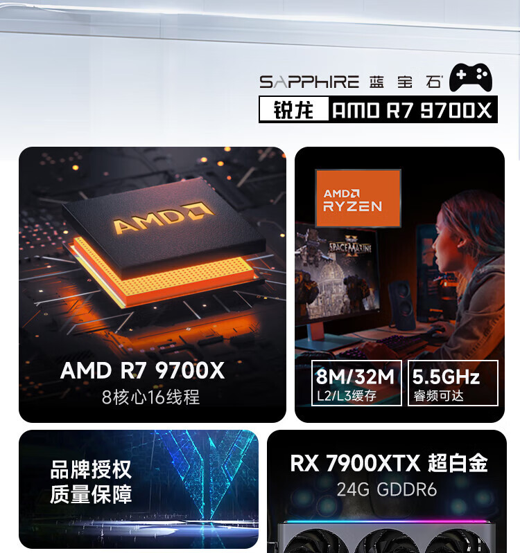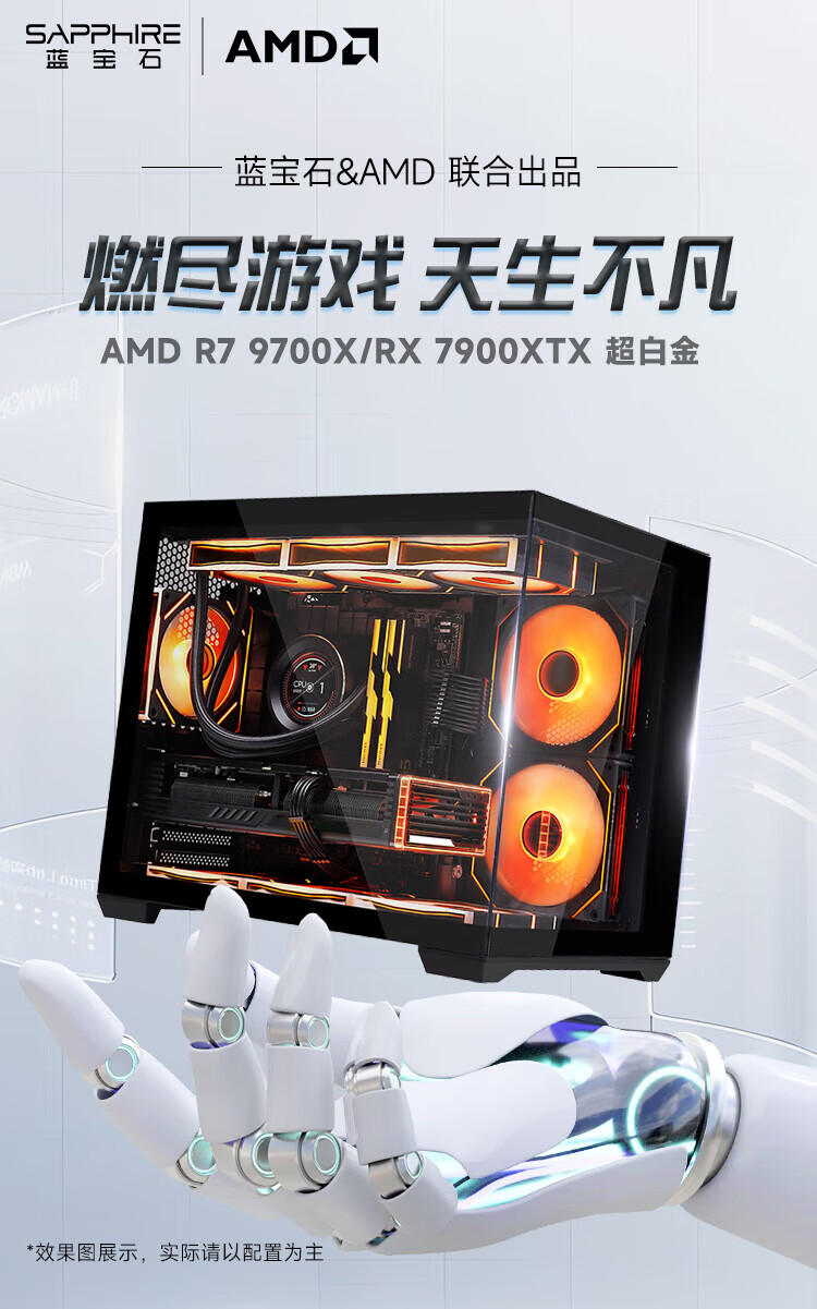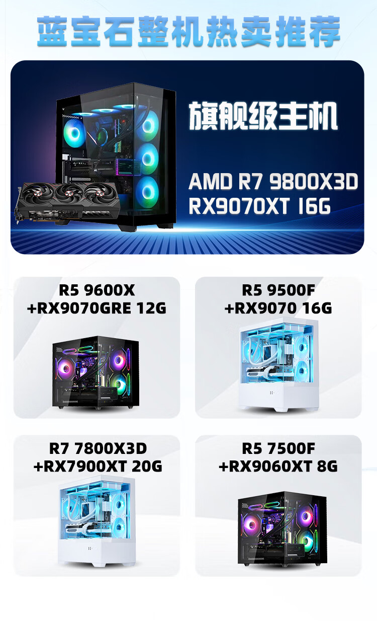Sapphire AMD Ryzen R7 9700X host RX9070XT/RX9070GRE/RX9060XT office design rendering computer game e-sports live broadcast DIY desktop assembly machine configuration 7 9700X/RX9070XT/16G