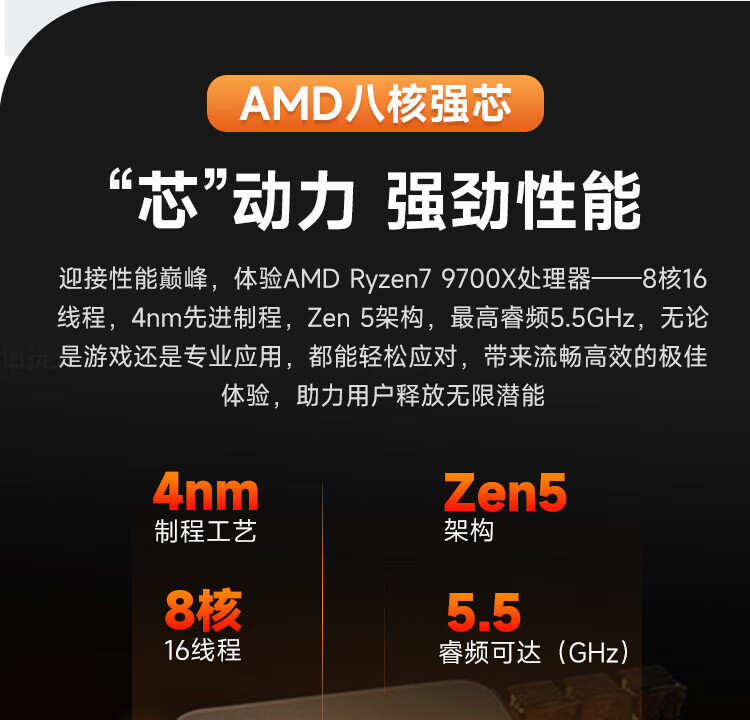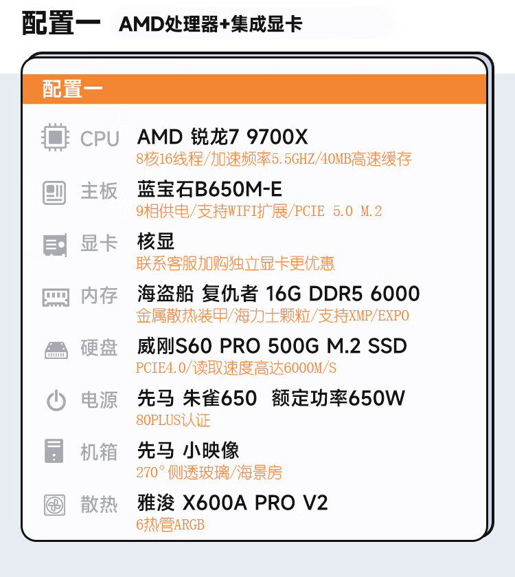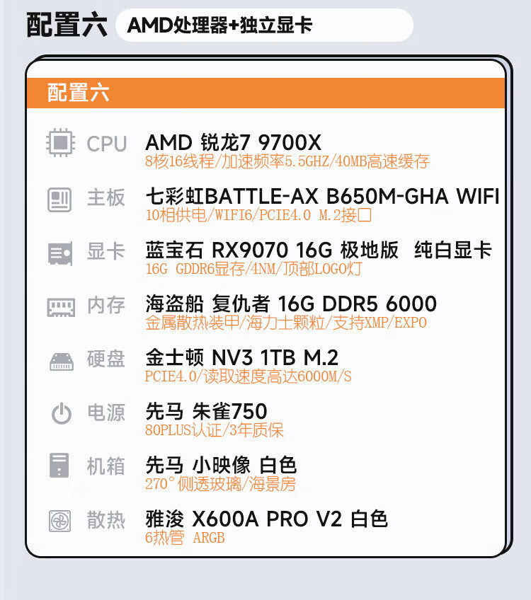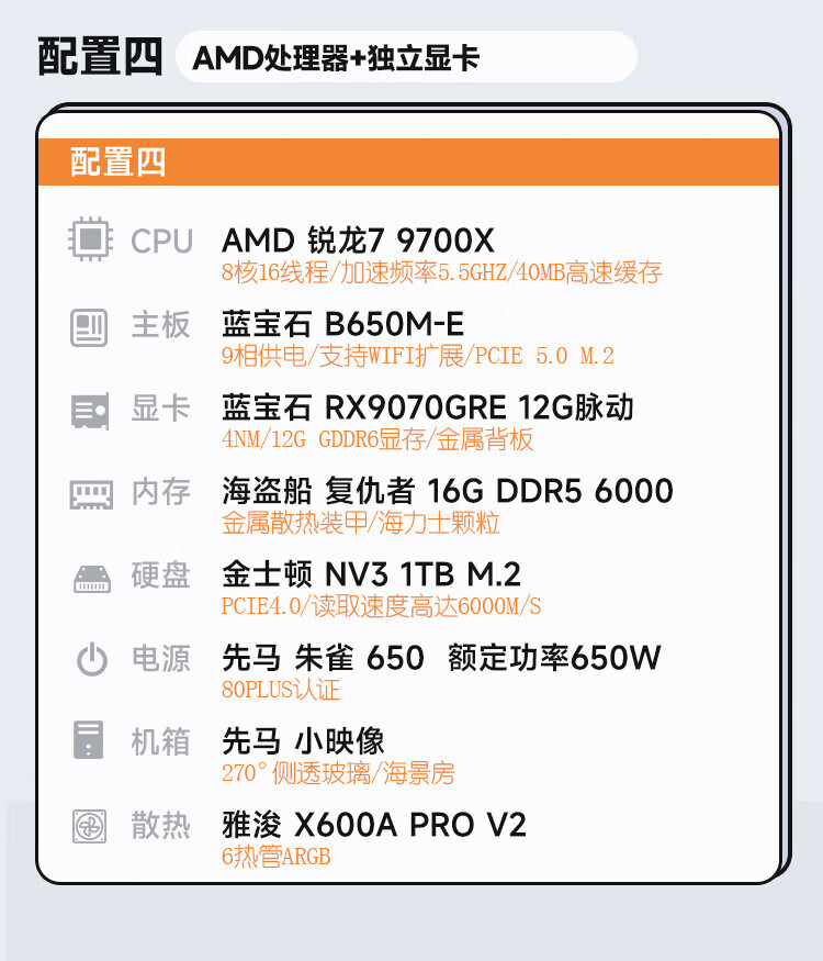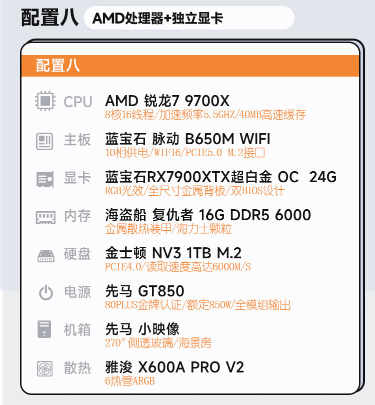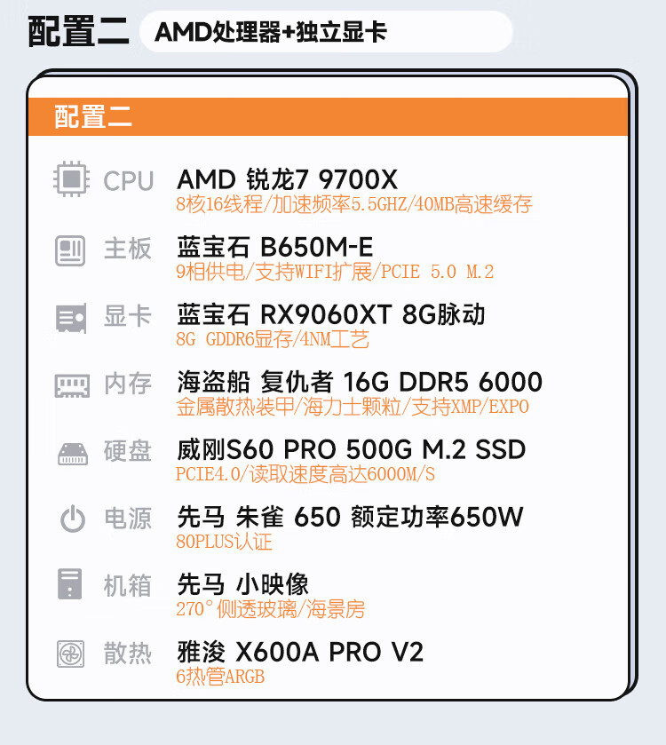Sapphire AMD Ryzen R7 9700X host RX9070XT/RX9070GRE/RX9060XT office design rendering computer game e-sports live broadcast DIY desktop assembly machine configuration 7 9700X/RX9070XT/16G