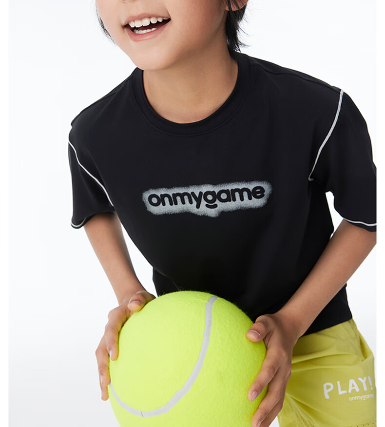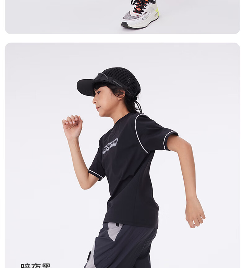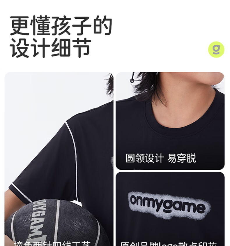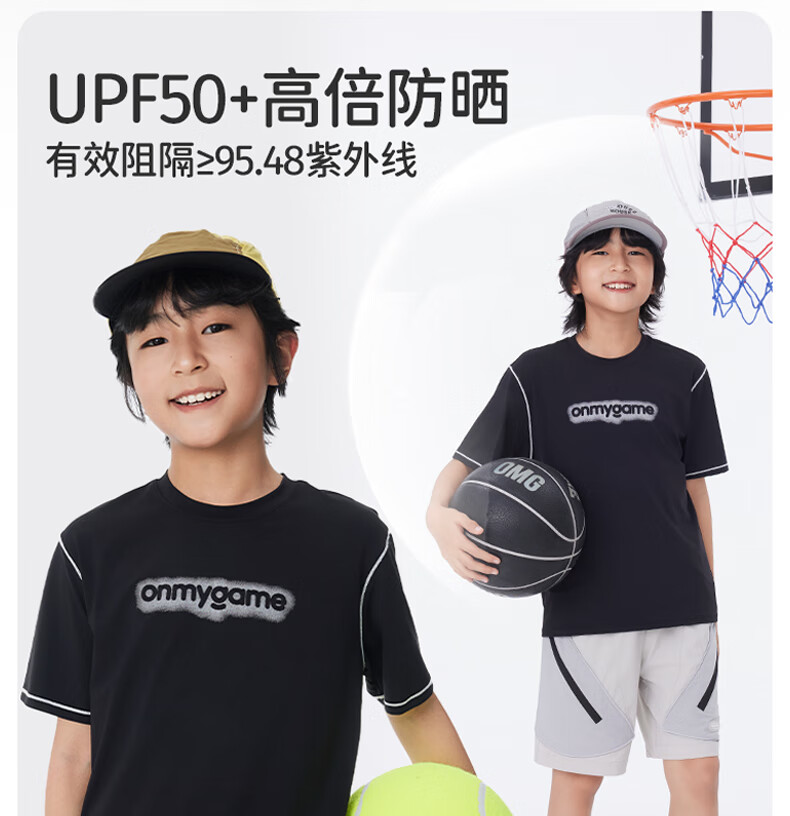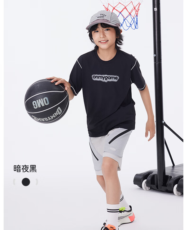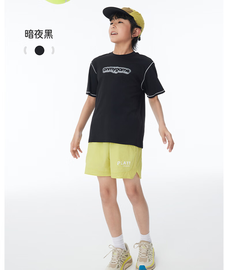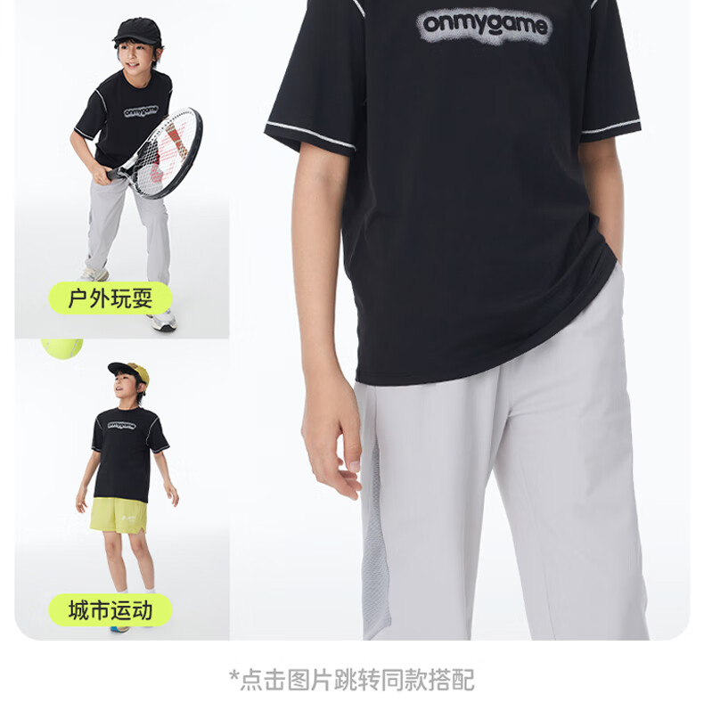 Onmygame sun protection quick-drying boys' sports short-sleeved cool summer new moisture-wicking children's T-shirt dark night black top + recycled gray pants 140