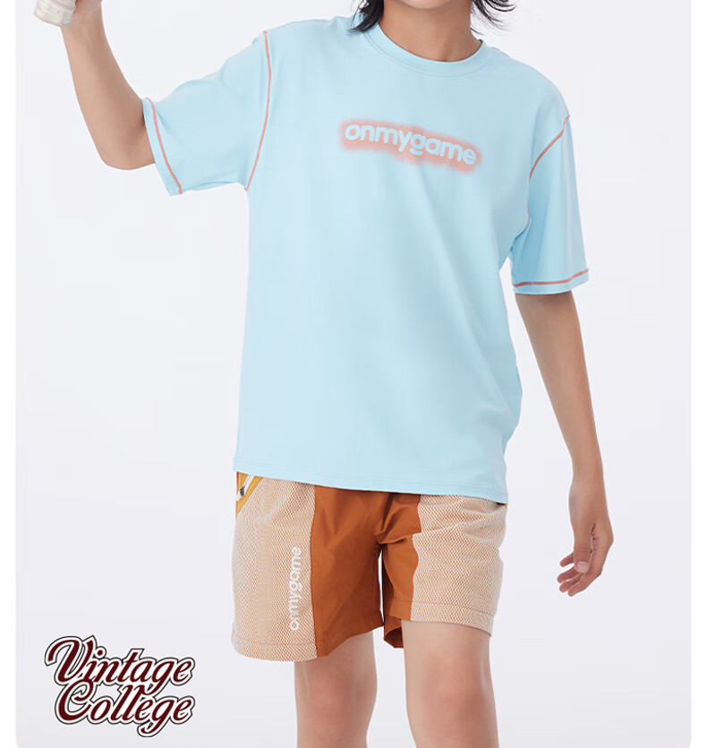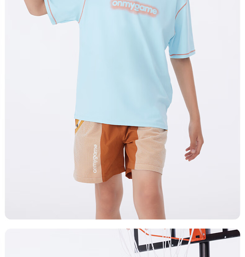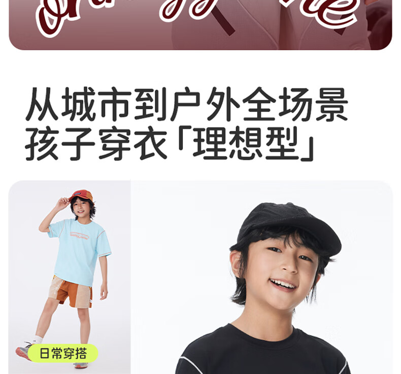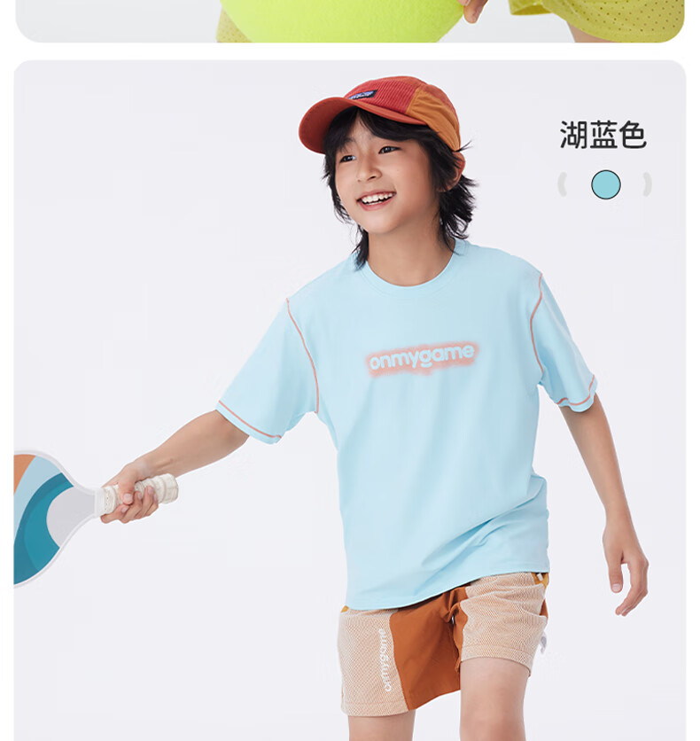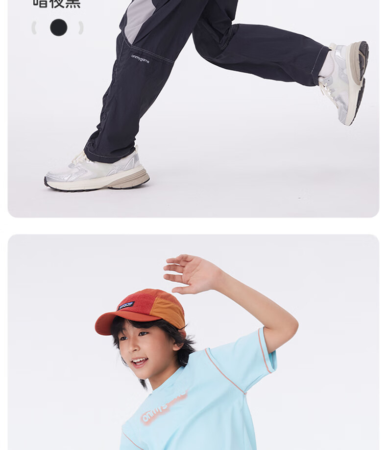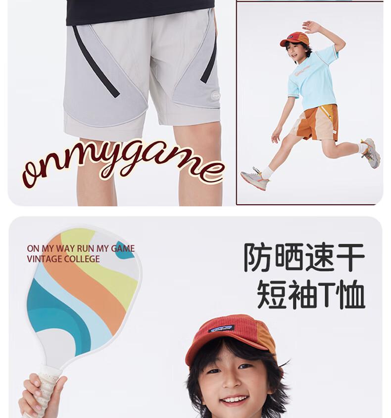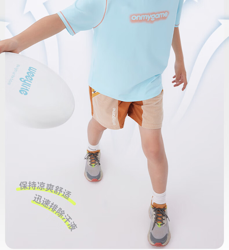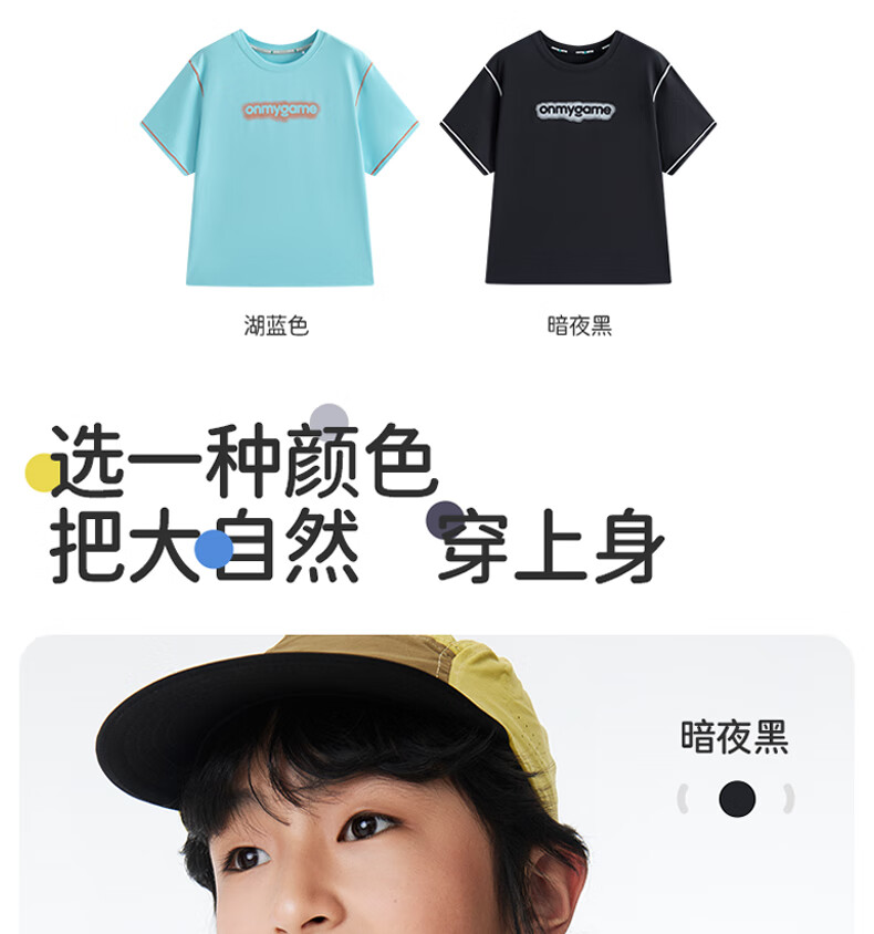 Onmygame sun protection quick-drying boys' sports short-sleeved cool summer new moisture-wicking children's T-shirt dark night black top + recycled gray pants 140