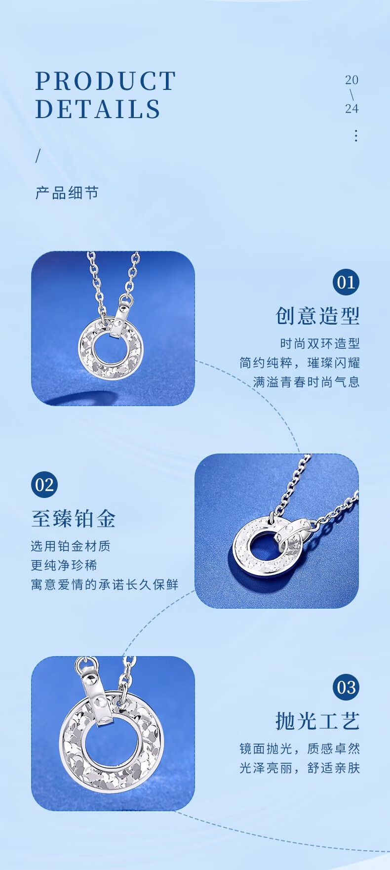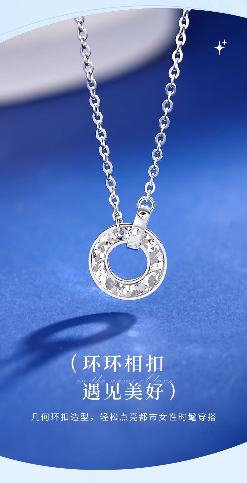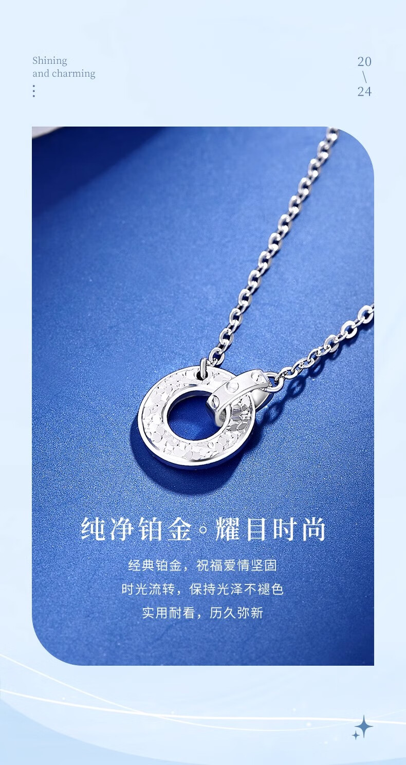 Lao Fengxiang PT950 platinum crushed ice interlocking necklace anniversary birthday gift for girlfriend and wife PT950 platinum interlocking chain set about 4.2g