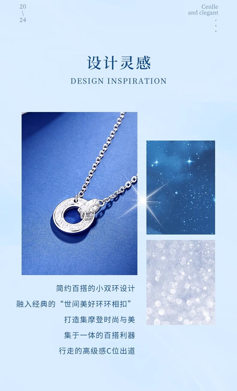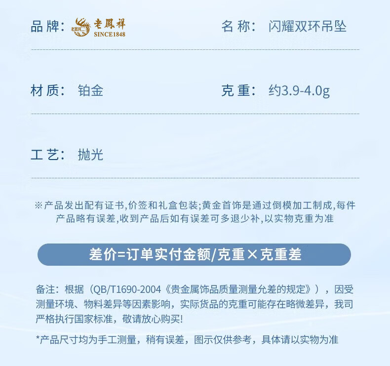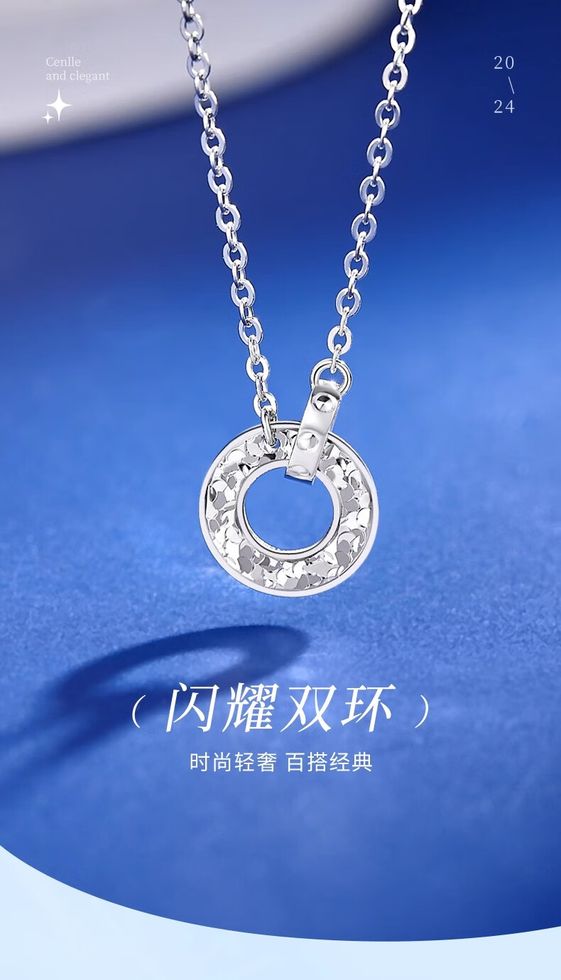 Lao Fengxiang PT950 platinum crushed ice interlocking necklace anniversary birthday gift for girlfriend and wife PT950 platinum interlocking chain set about 4.2g