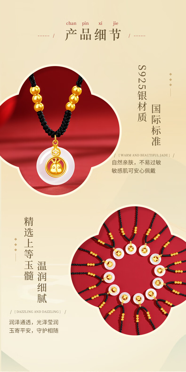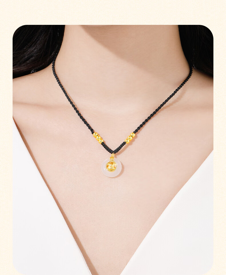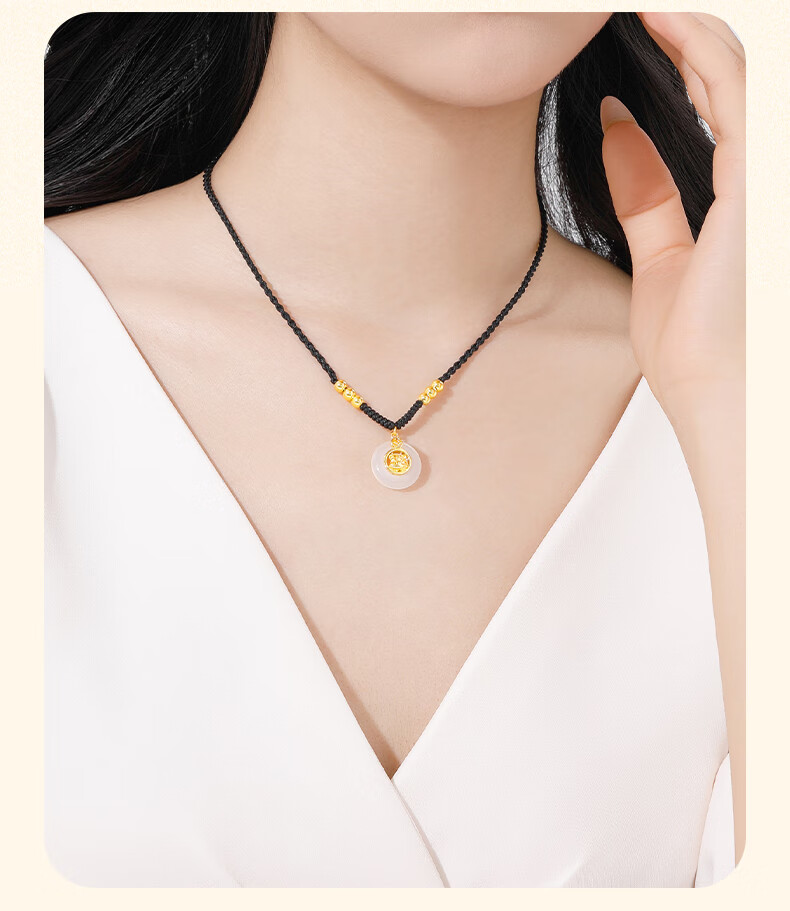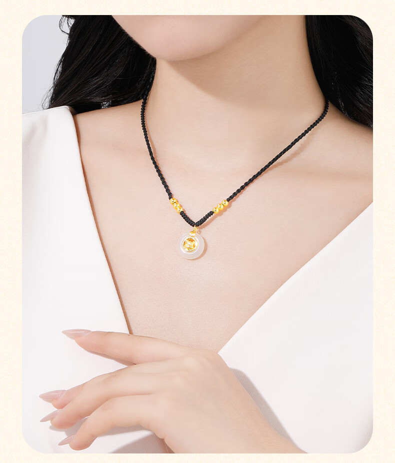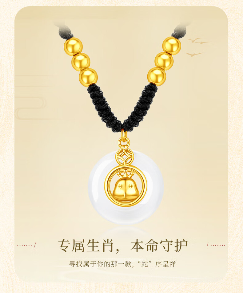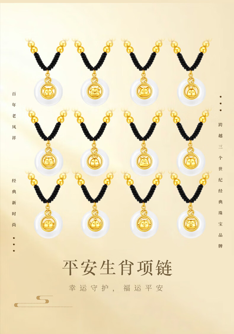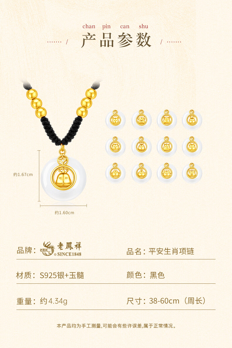 Lao Fengxiang's Twelve Zodiac Necklace for Women's Year of the Year Chalcedony Peace Buckle Pendant Anniversary Birthday Gift for Girlfriend and Wife Zodiac Monkey Peace Zodiac Necklace