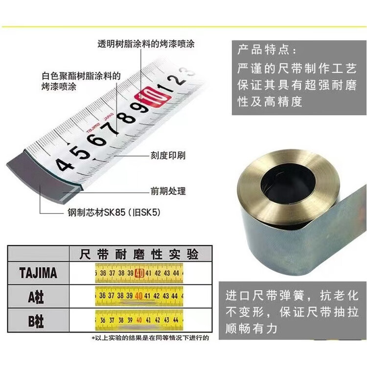 Tajima (TAJIMA) Tajima TAJIMA steel tape measure 5 meters 3.5 meters 5.5 meters 7.5 meters 10 meters steel tape measure 5 meters 19mm white and reverse white one set