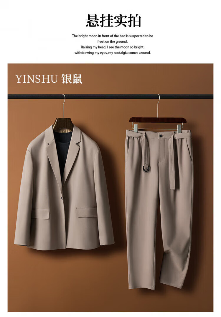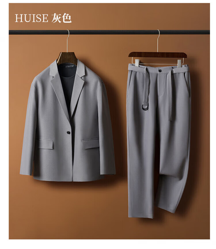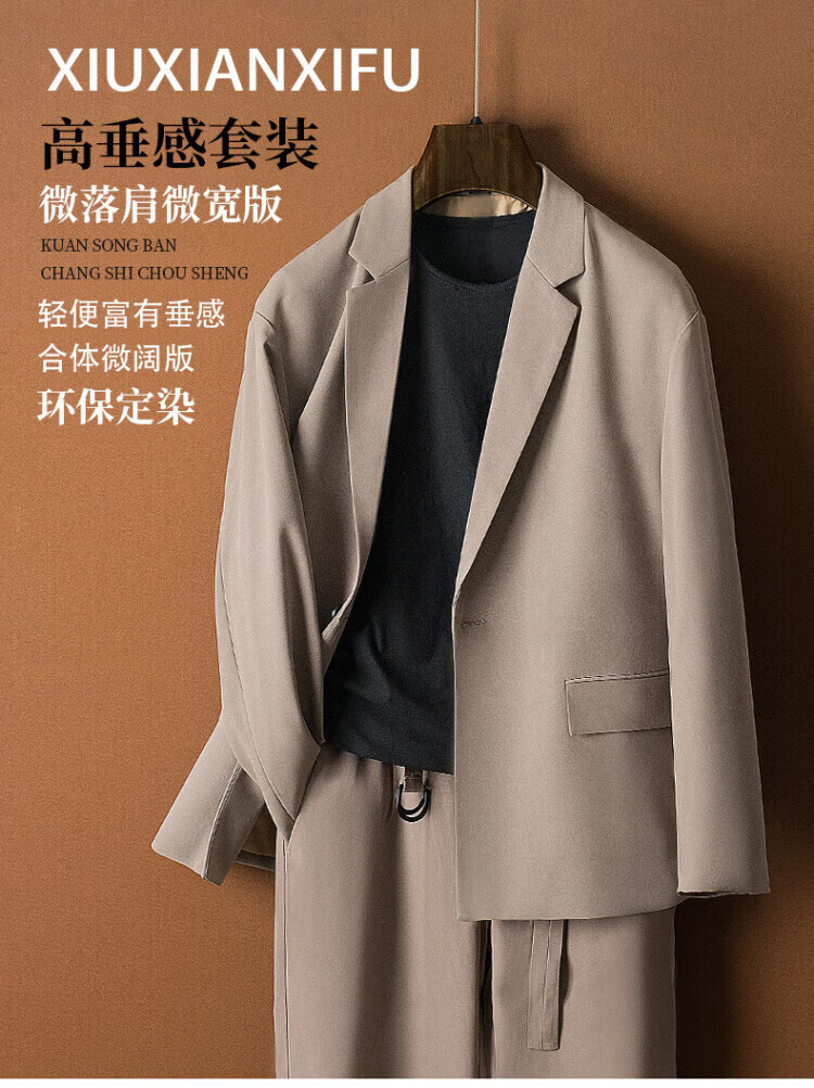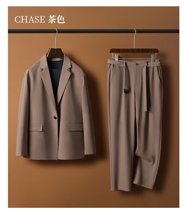 DK high-end men's casual casual suit set, men's high-end, easy-care, no-iron, drape business suit two-piece set, brown single suit 3XL 180-200Jin Jin equals 0.5 kg