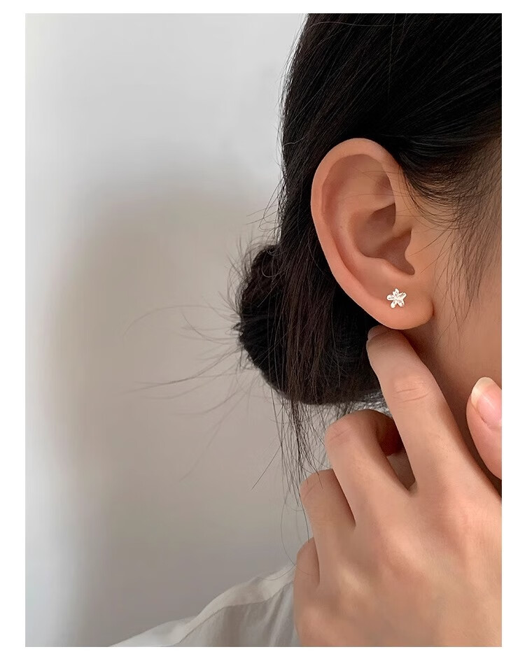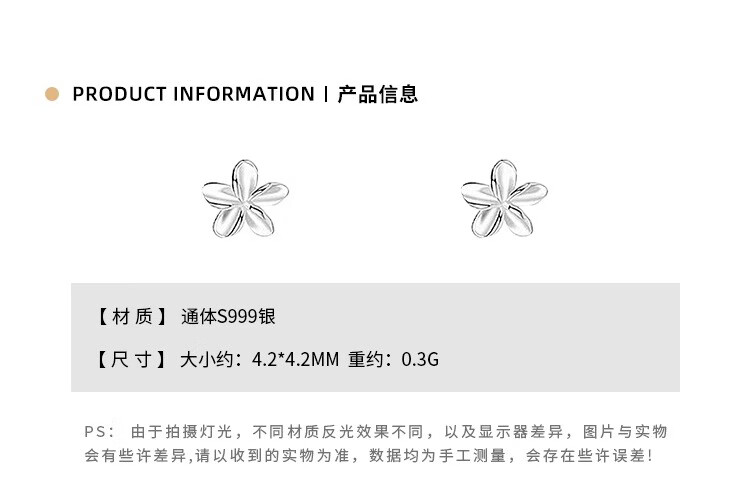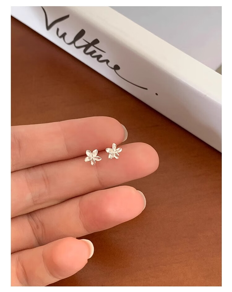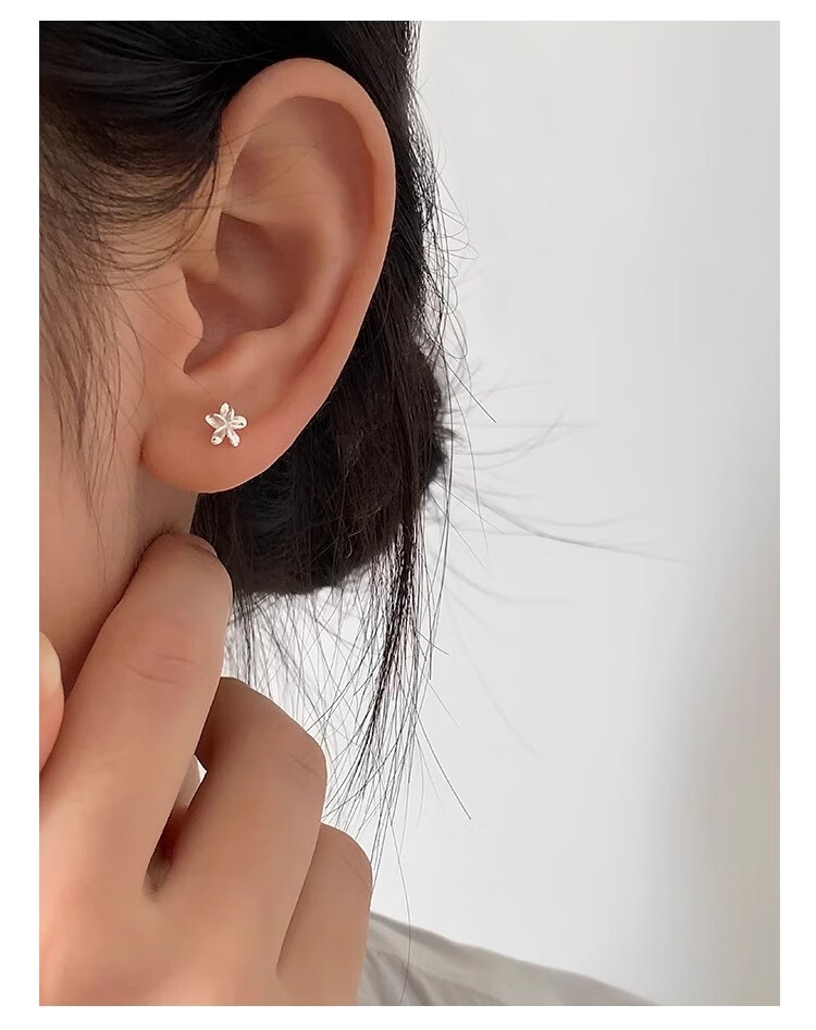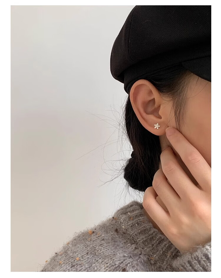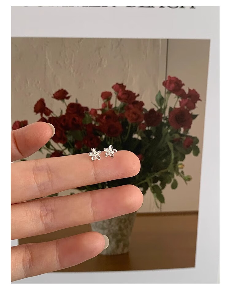 Love for Two Worlds S999 Pure Silver Flower Earrings for Girls Exquisite, Small and Sweet Daily Commuting Ears Versatile Bestie Earrings and Earrings S999 Pure Silver-A Pair of Small Flower Earrings