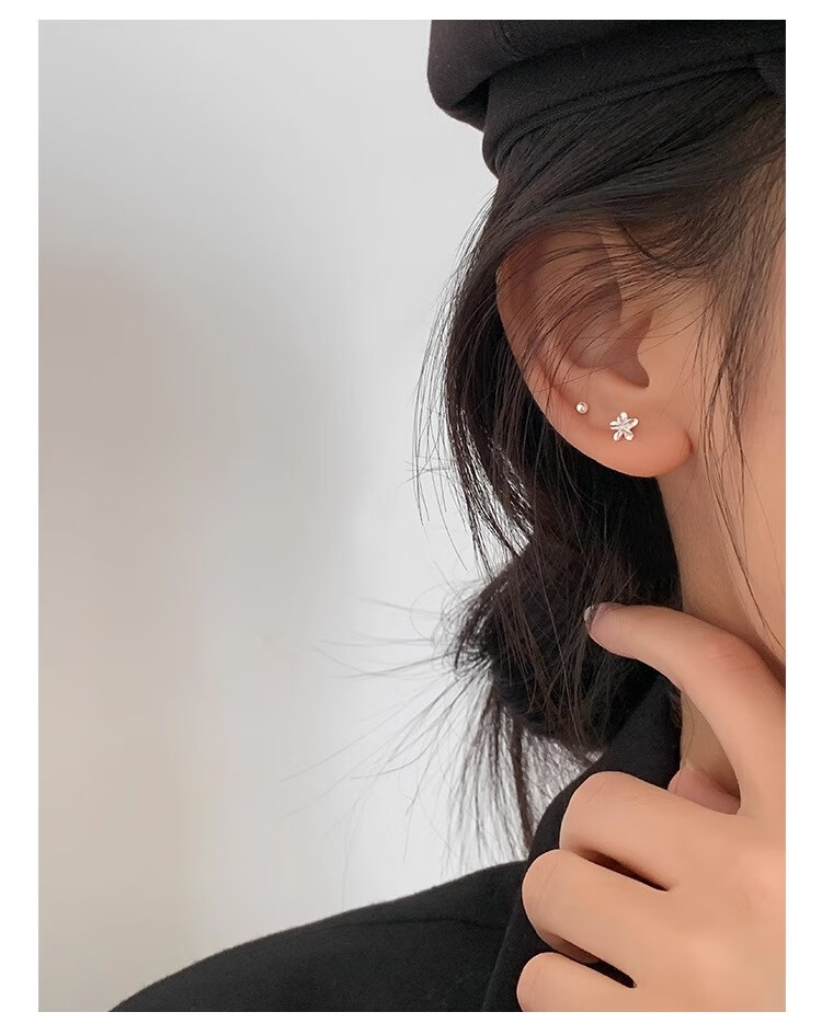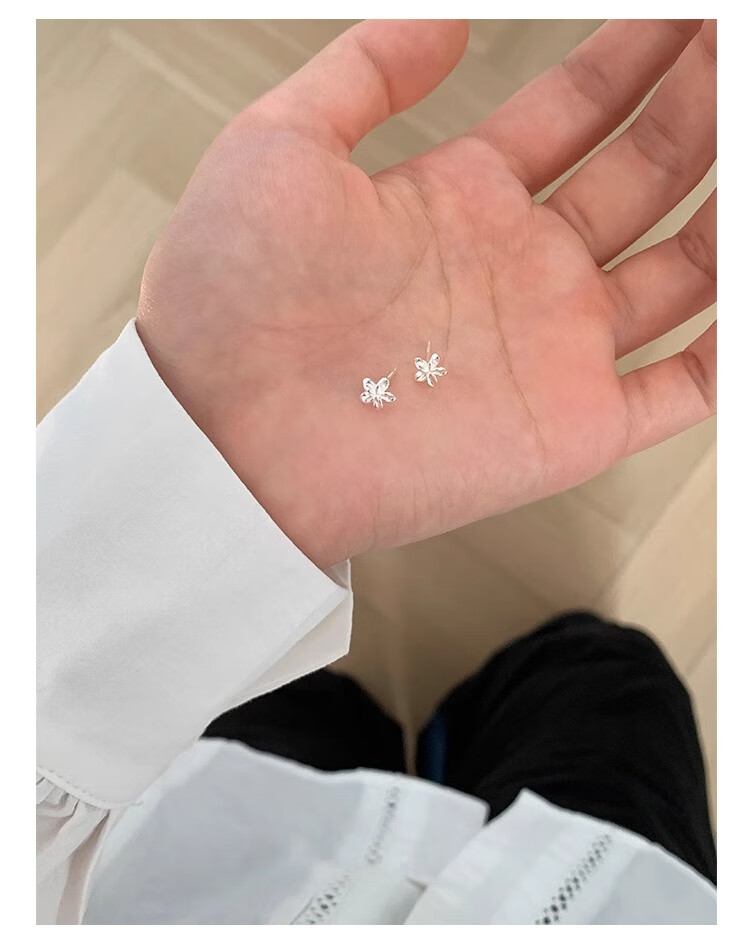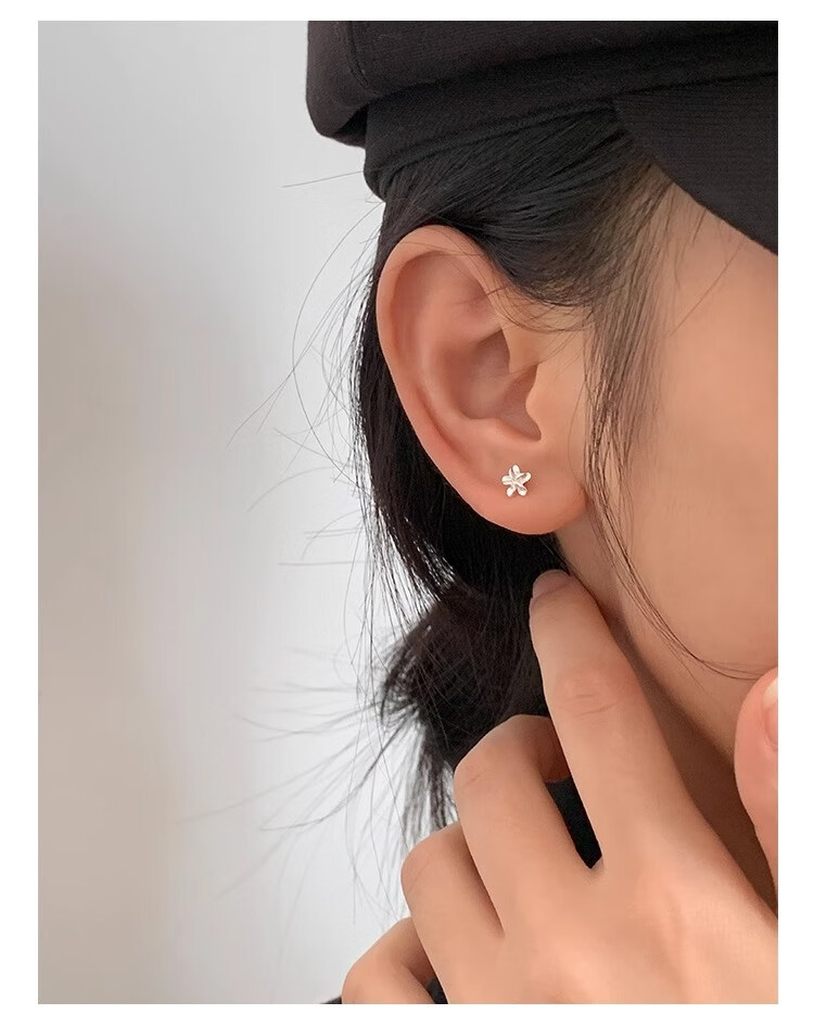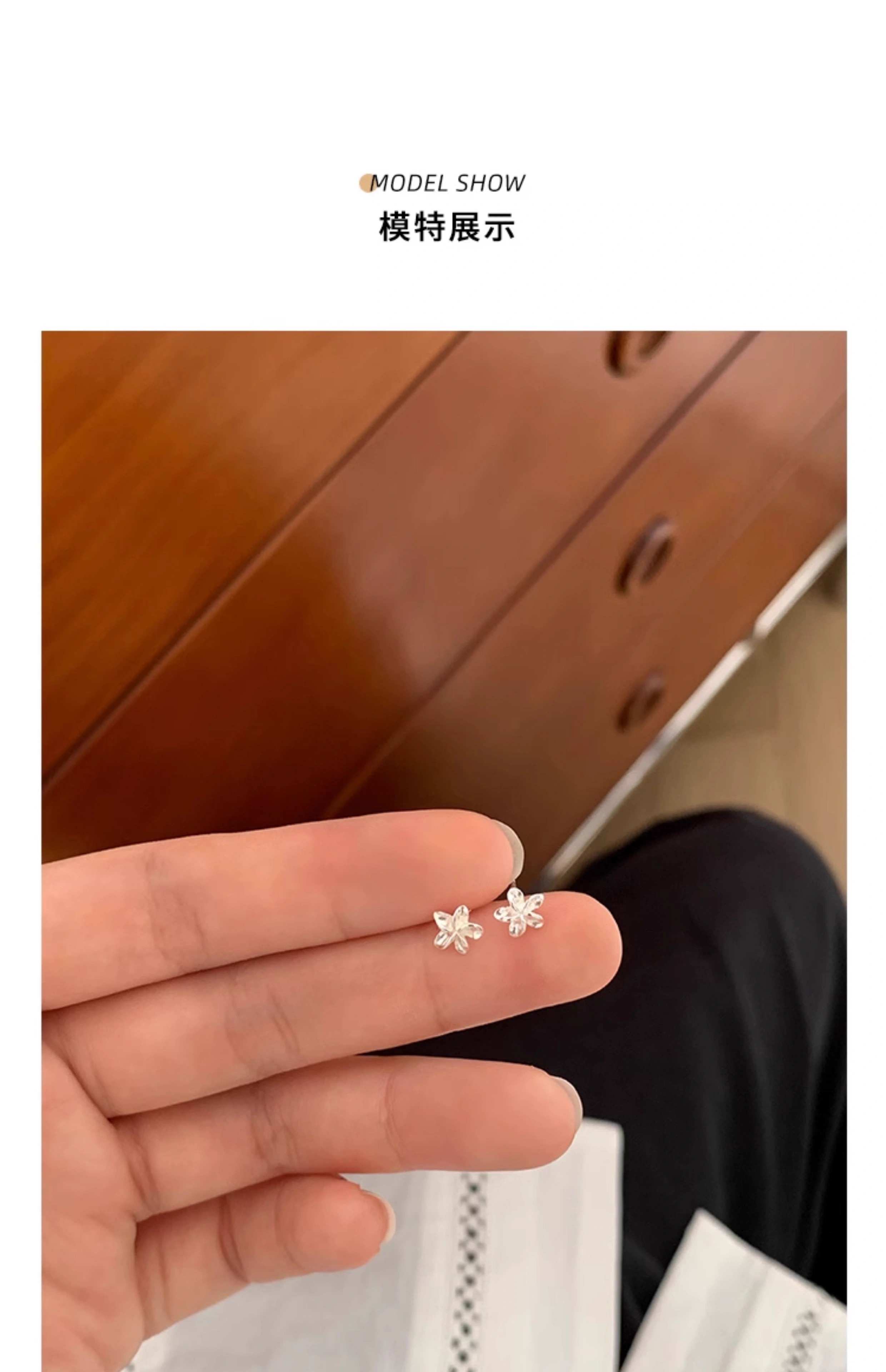 Love for Two Worlds S999 Pure Silver Flower Earrings for Girls Exquisite, Small and Sweet Daily Commuting Ears Versatile Bestie Earrings and Earrings S999 Pure Silver-A Pair of Small Flower Earrings