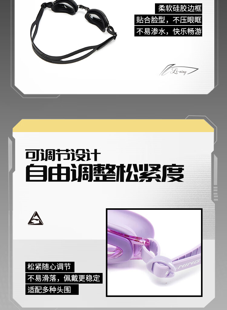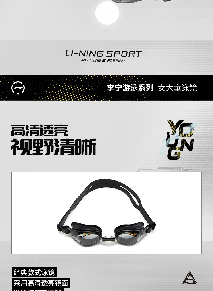 Li-Ning K swimming gear for girls, summer swimming series, sporting goods, swimming goggles, black-4F