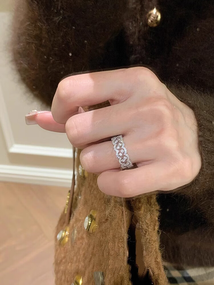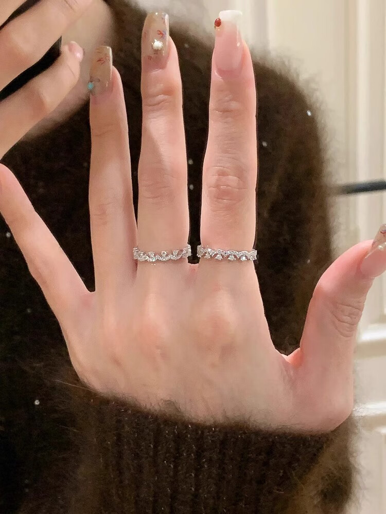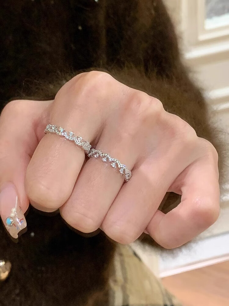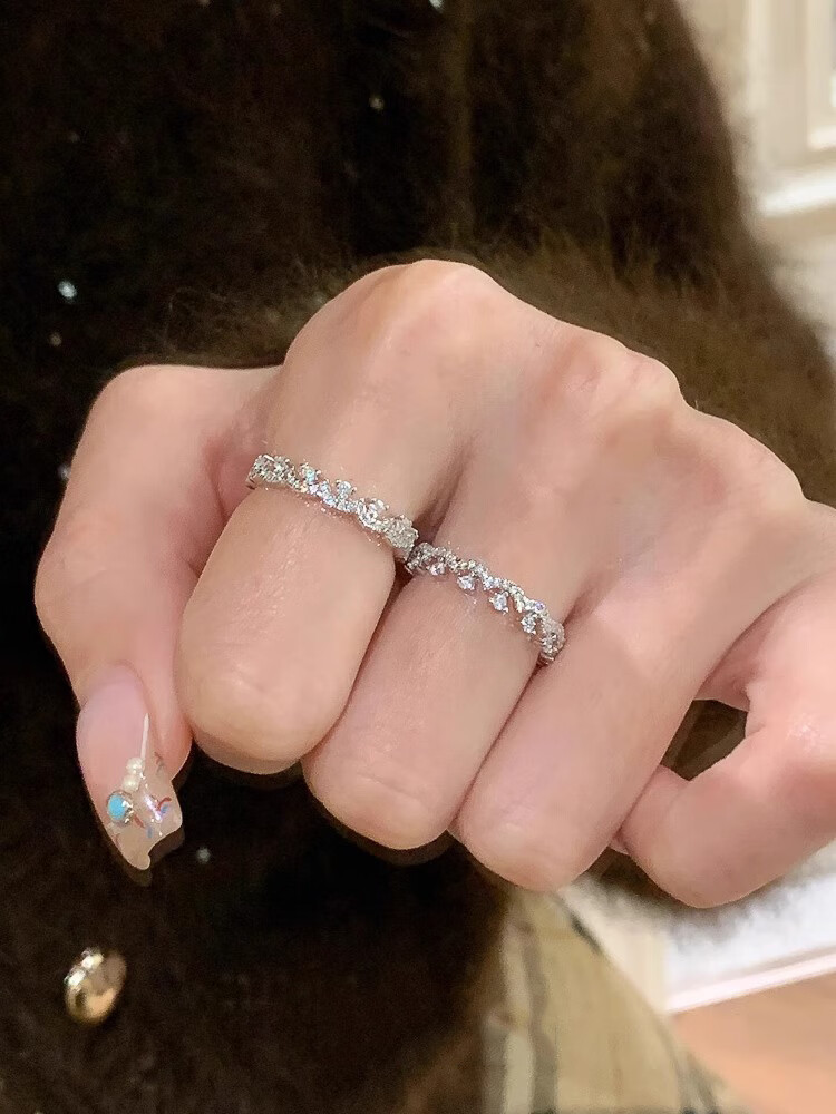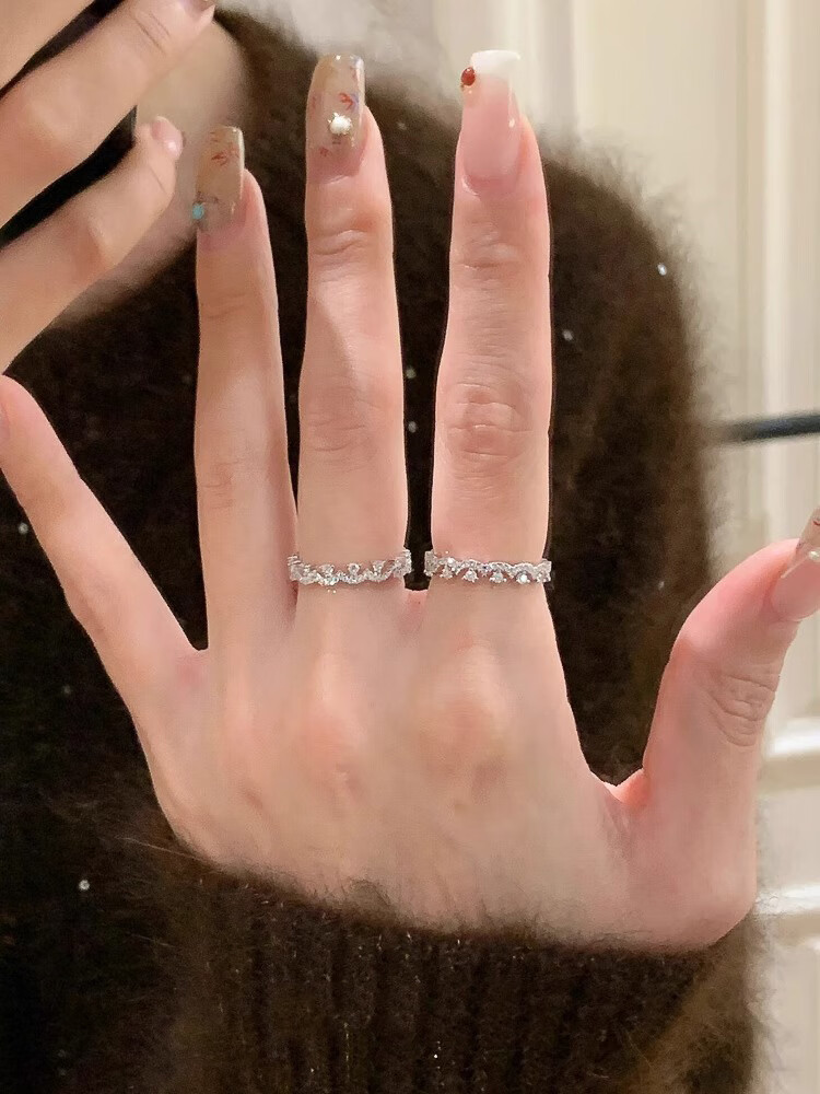 Yan Ru decorated French lace super sparkling diamond ring, elegant and light luxury index finger ring, exquisite and versatile, stackable ring gift R0650 lace ring, one pair