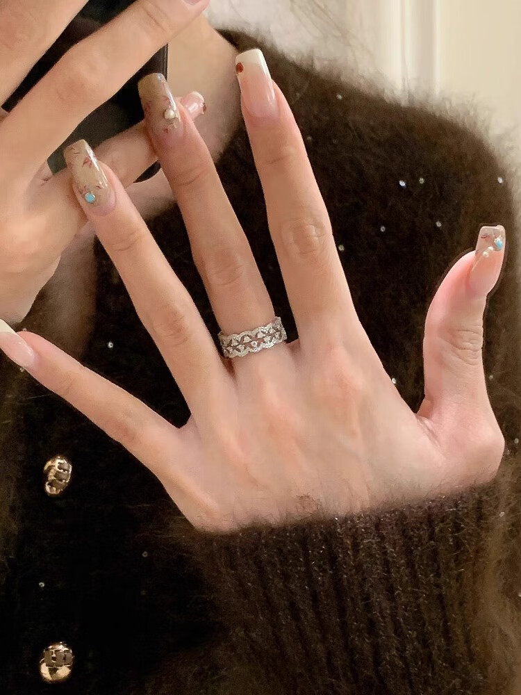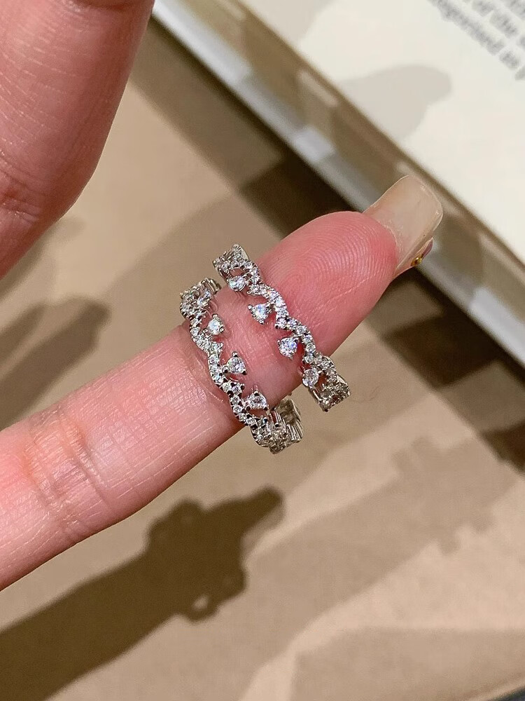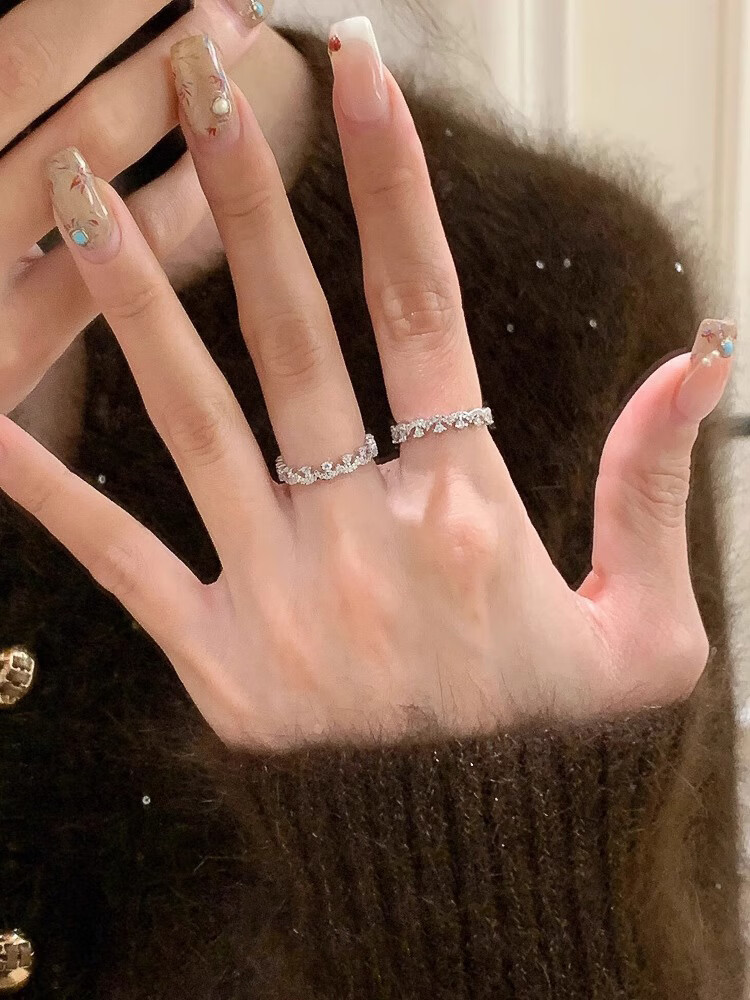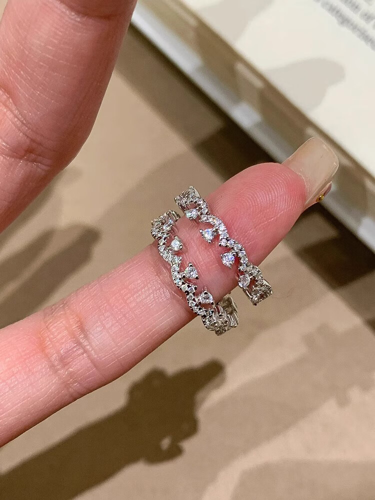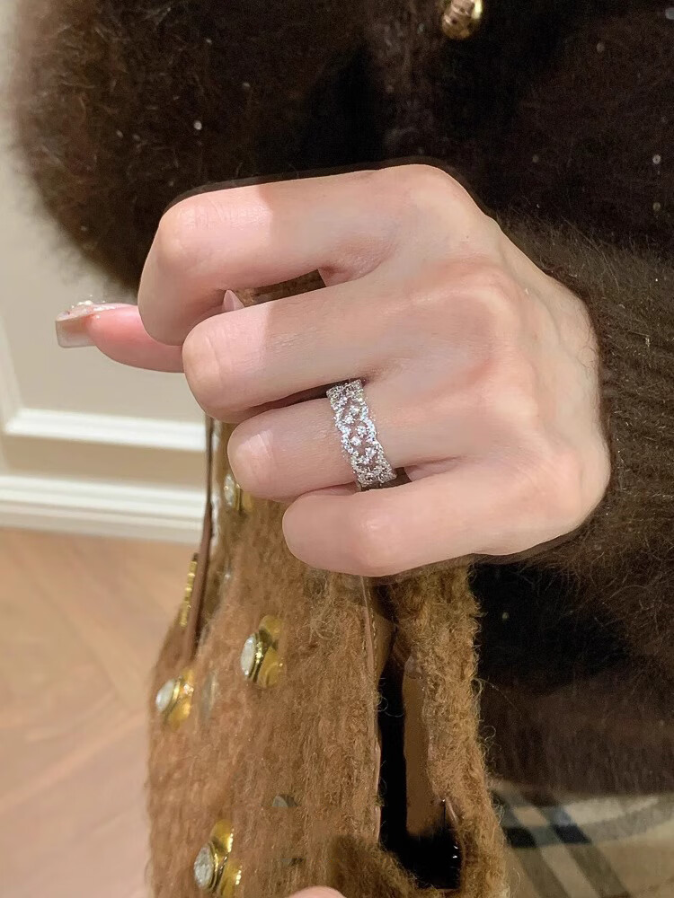 Yan Ru decorated French lace super sparkling diamond ring, elegant and light luxury index finger ring, exquisite and versatile, stackable ring gift R0650 lace ring, one pair