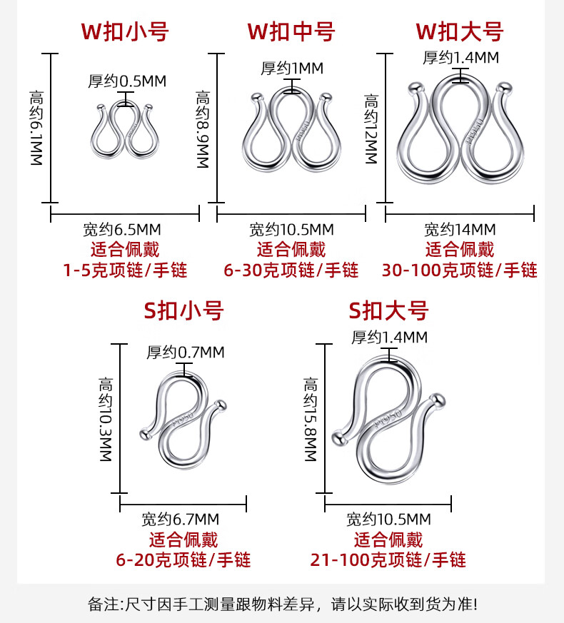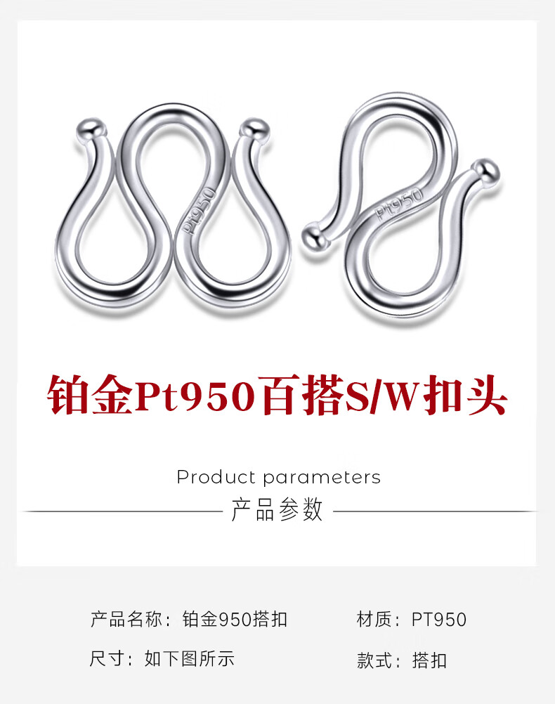 Fiber bundle (QIANSHU) platinum buckle M buckle necklace tail buckle head DIY accessories PT950w buckle S buckle bracelet link buckle live mouth on both sides Small W buckle PT950 - about 0.3 grams