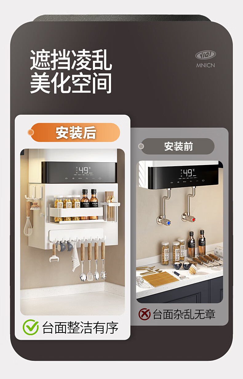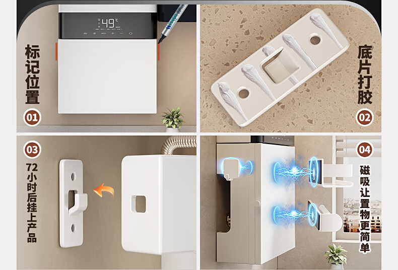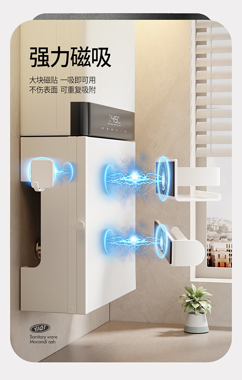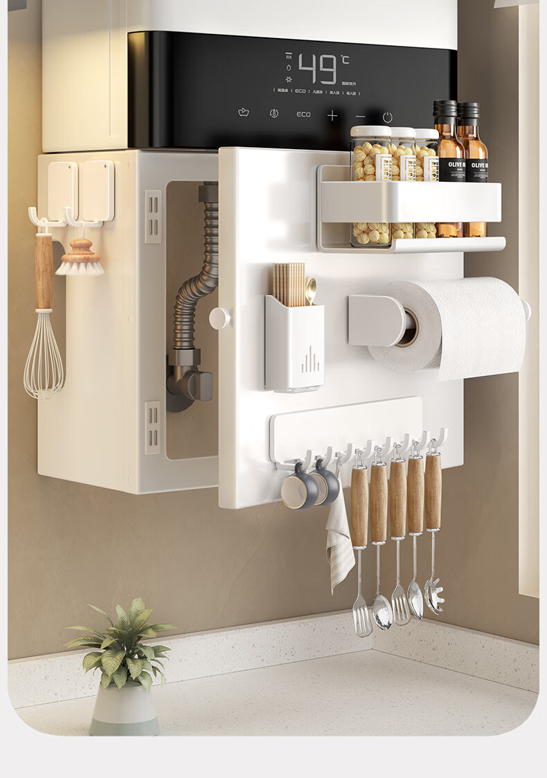 MNICN燃气热水器遮挡罩厨房壁挂磁吸管道遮丑装饰盖板挂钩洞洞板置物架 白色磁吸款小挂钩3只(承重1斤)