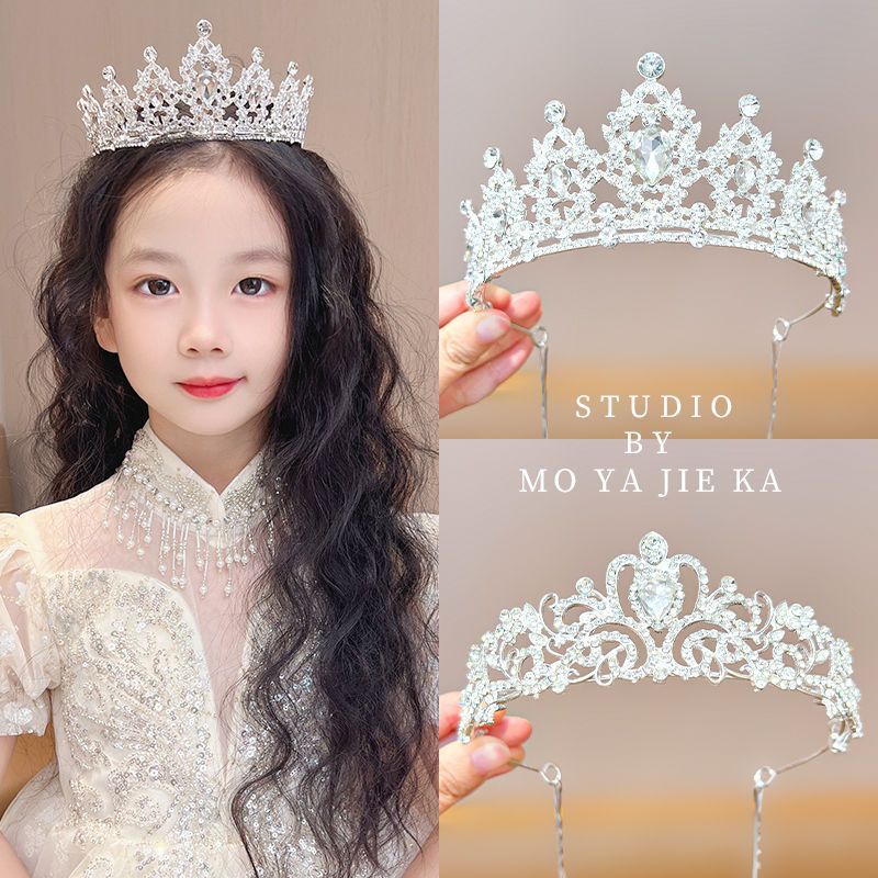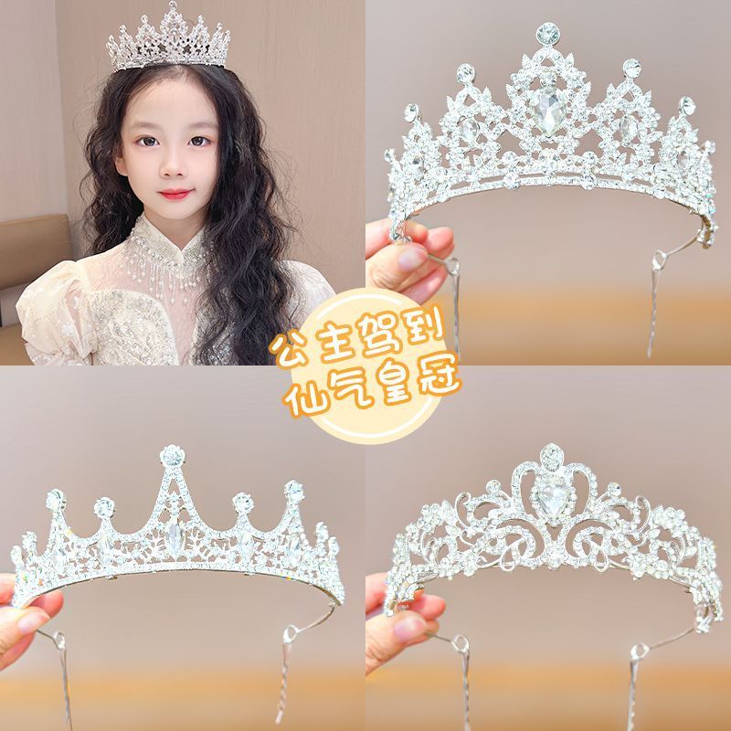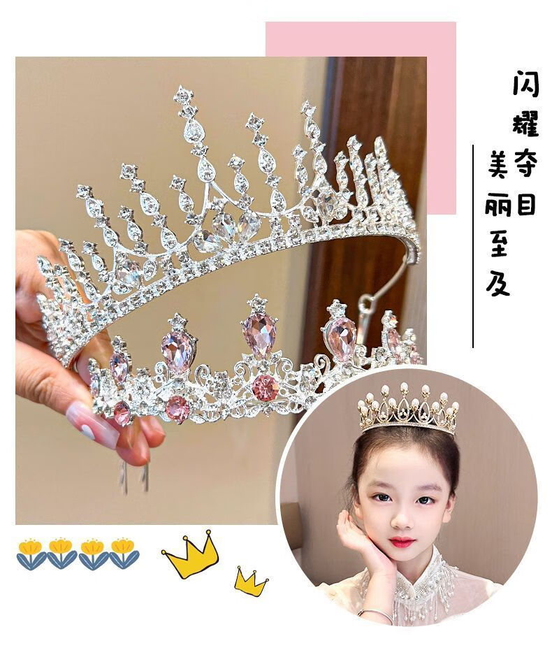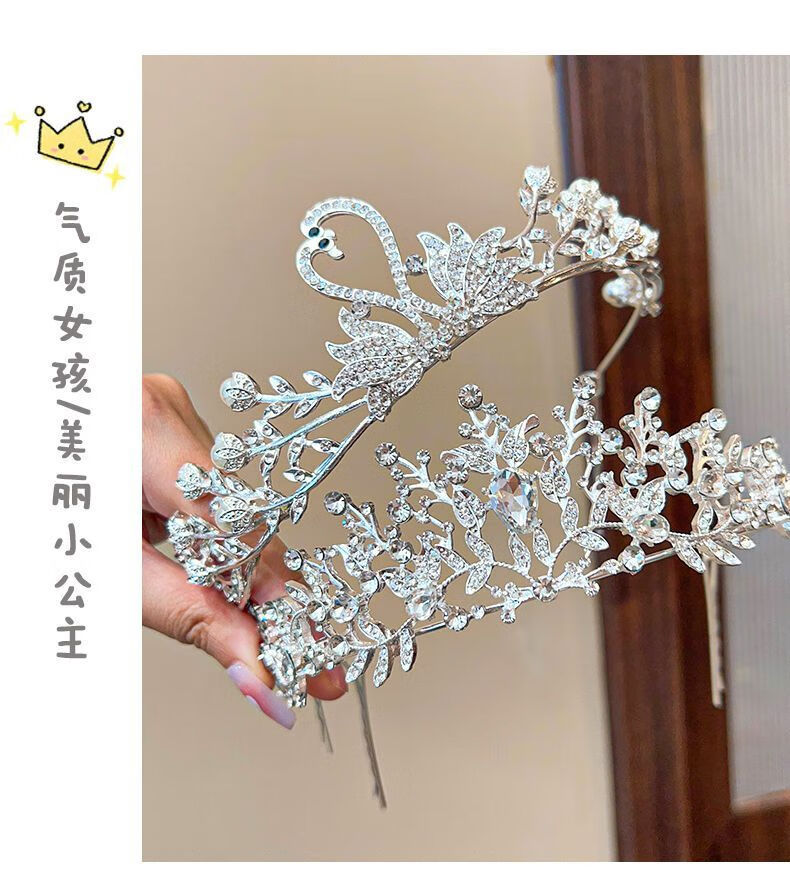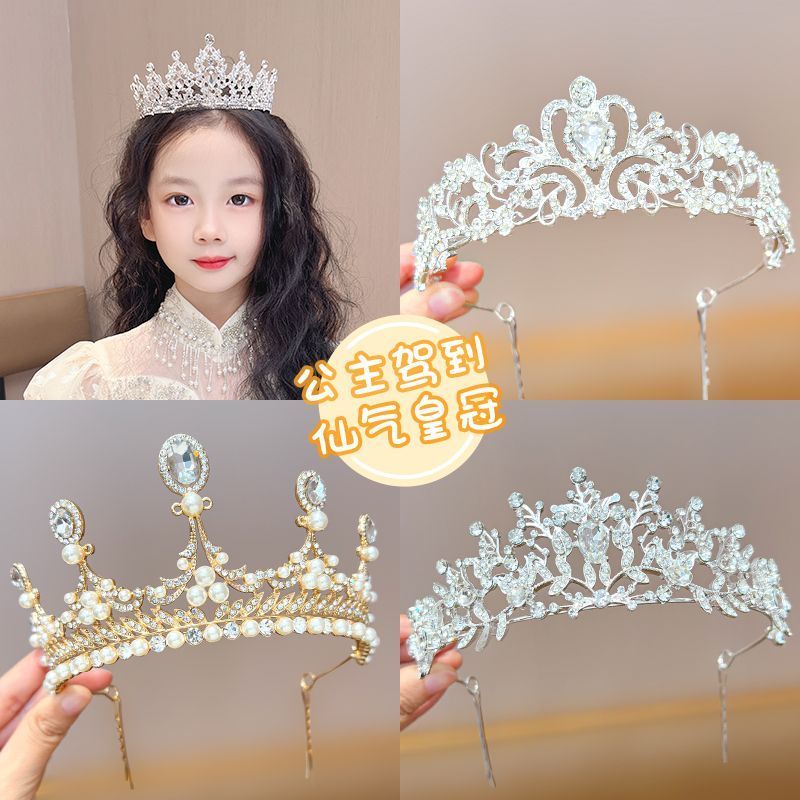 DL 1998 crown tiara for girls and children high-end crystal crown birthday gift princess baby hair clip hair pearl leaf style