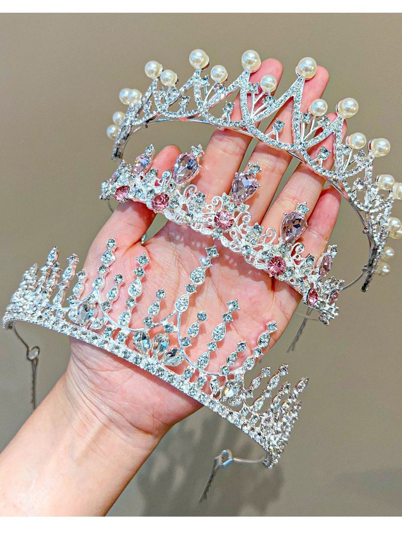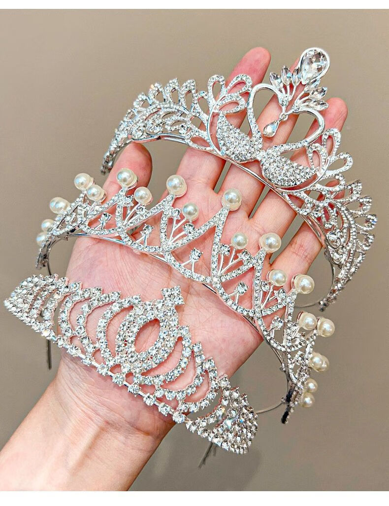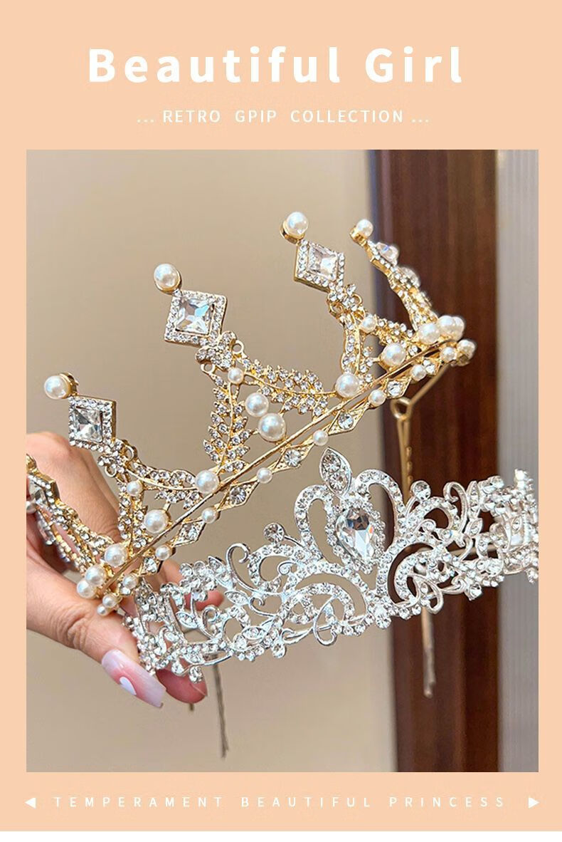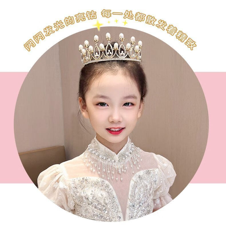 DL 1998 crown tiara for girls and children high-end crystal crown birthday gift princess baby hair clip hair pearl leaf style