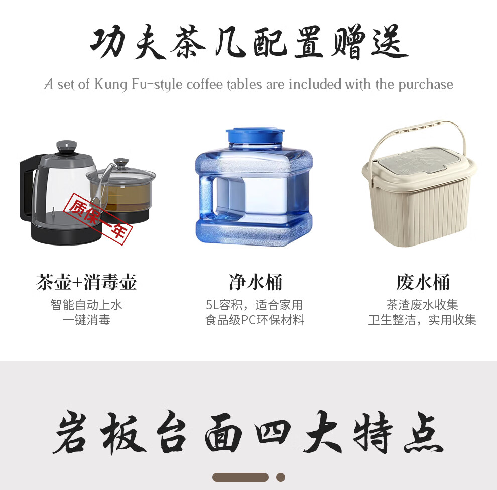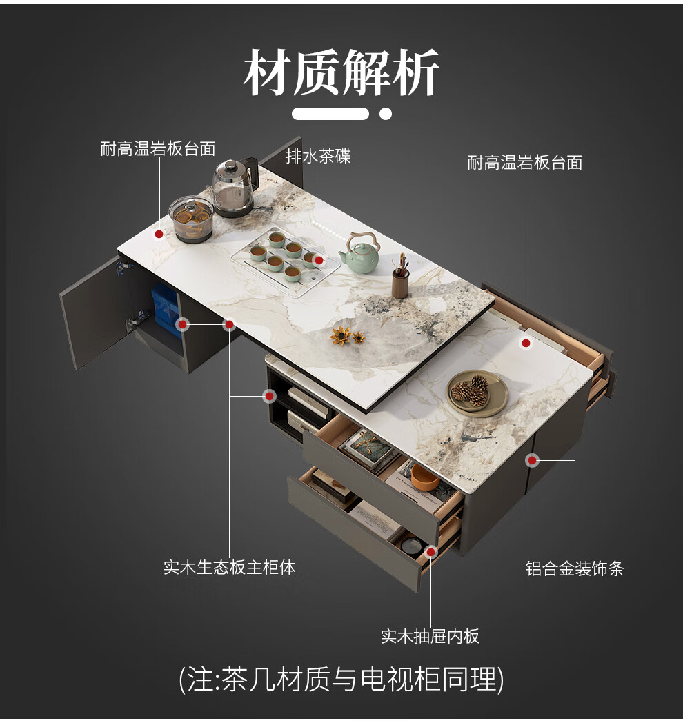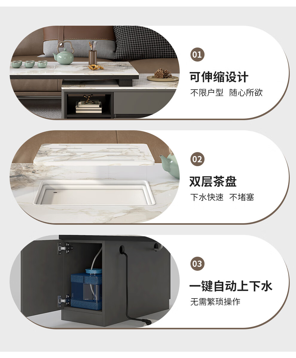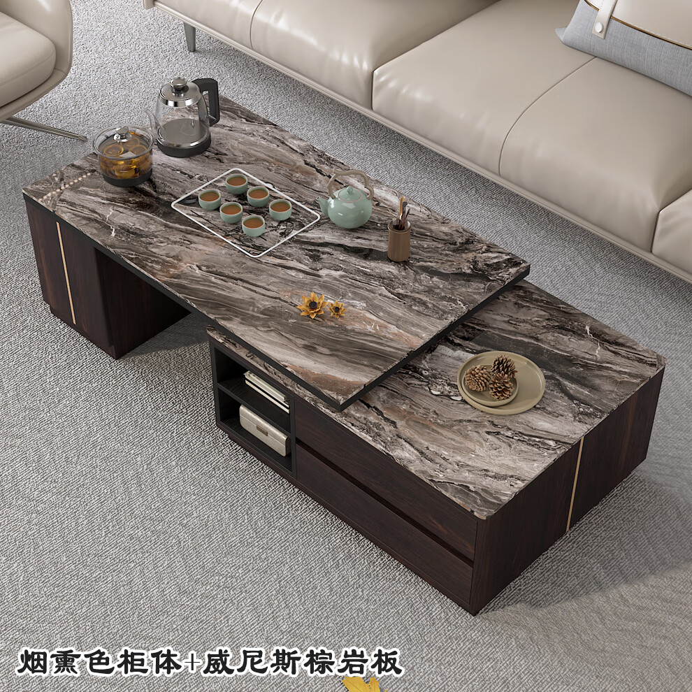 Tiransen 2025 New Slate Kung Fu Coffee Table Retractable Living Room Floor Cabinet Simple Home Kettle Integrated Tea Table Light Luxury Gray Kung Fu Coffee Table (Smart Water Supply)