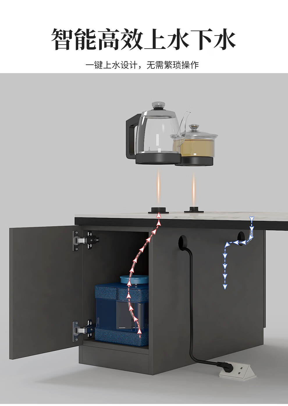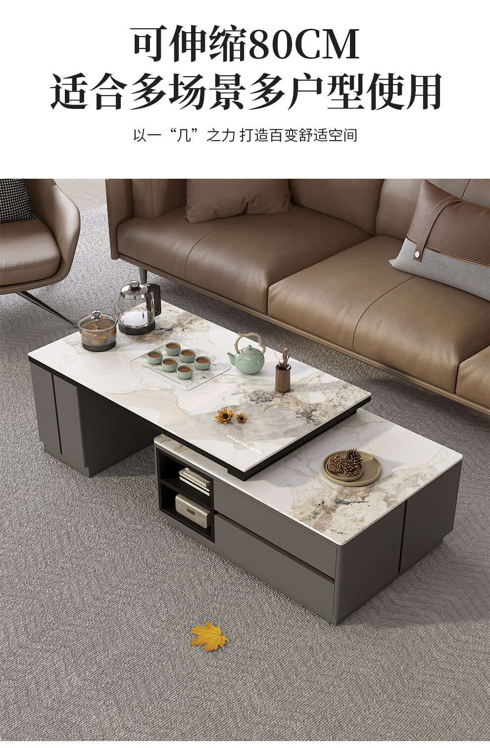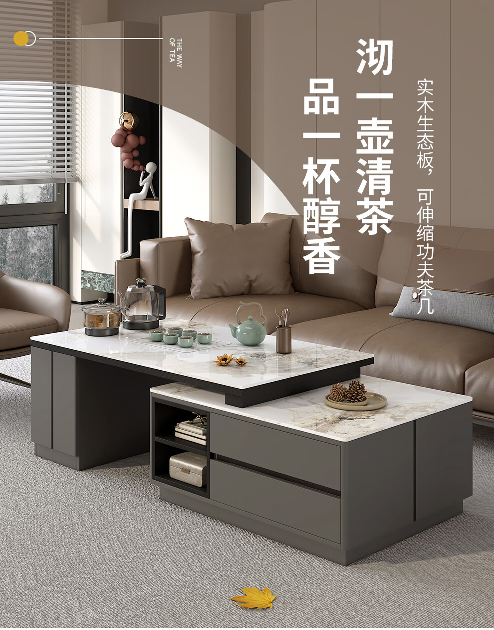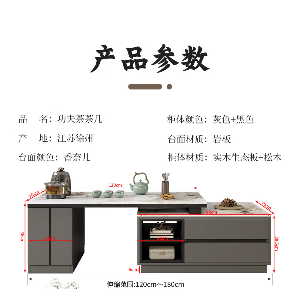 Tiransen 2025 New Slate Kung Fu Coffee Table Retractable Living Room Floor Cabinet Simple Home Kettle Integrated Tea Table Light Luxury Gray Kung Fu Coffee Table (Smart Water Supply)