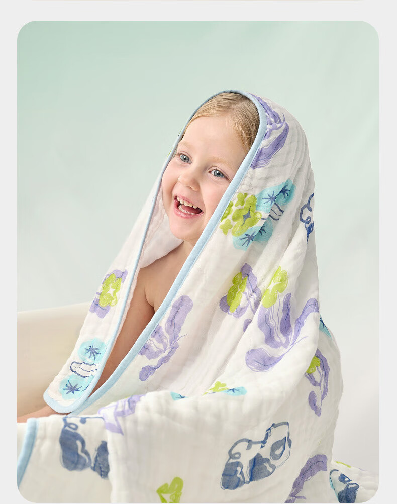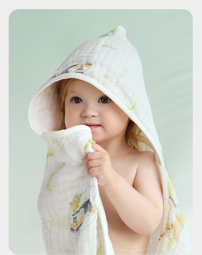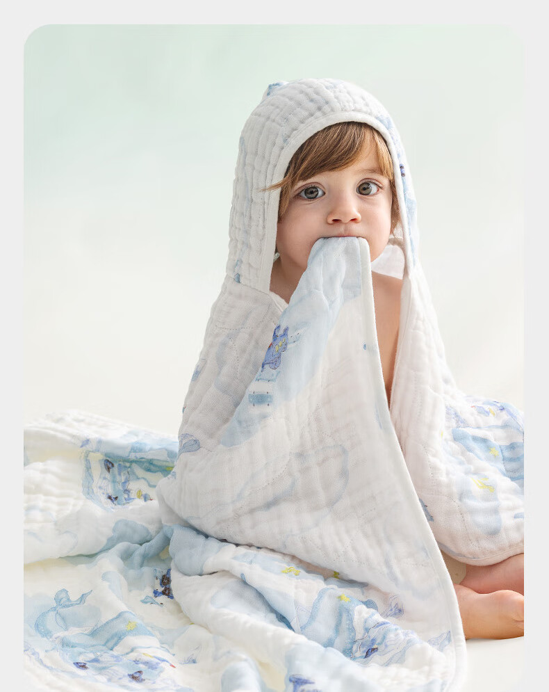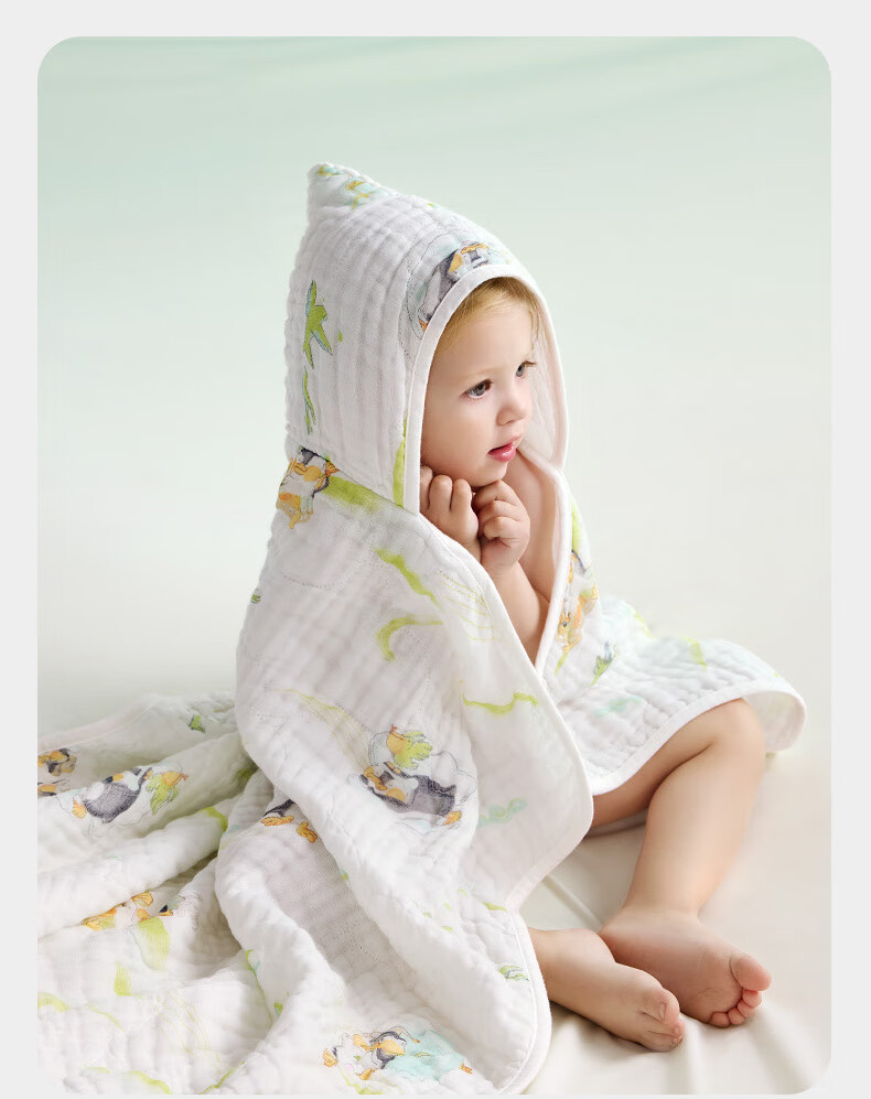 Babycare baby bath towel for newborns and children, special blanket, towel, gauze, bath towel, wrap gauze, penguin band hooded model - can be bath towel or quilt 115x115cm