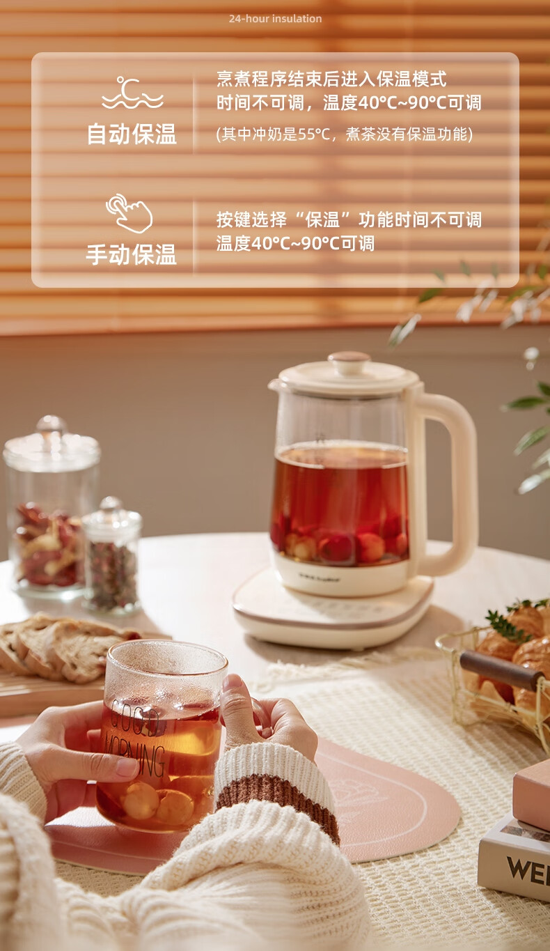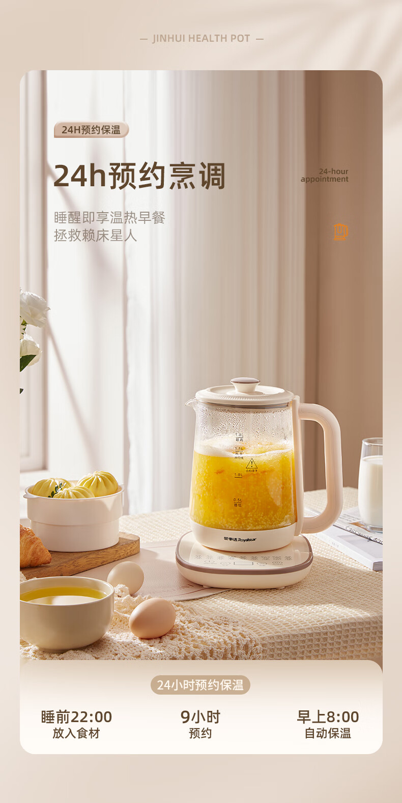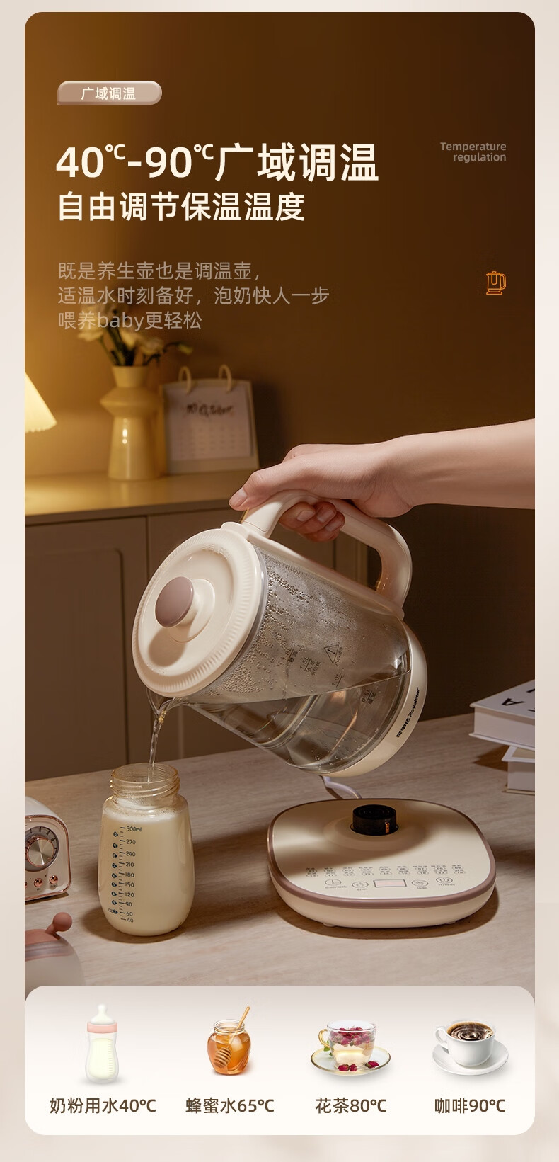 Royalstar Health Kettle Tea Kettle Constant Temperature Health Kettle Hot Water Kettle Tea Maker Fully Automatic Glass Office Home New Tea Making Intelligent Large Capacity Beige 1.8L