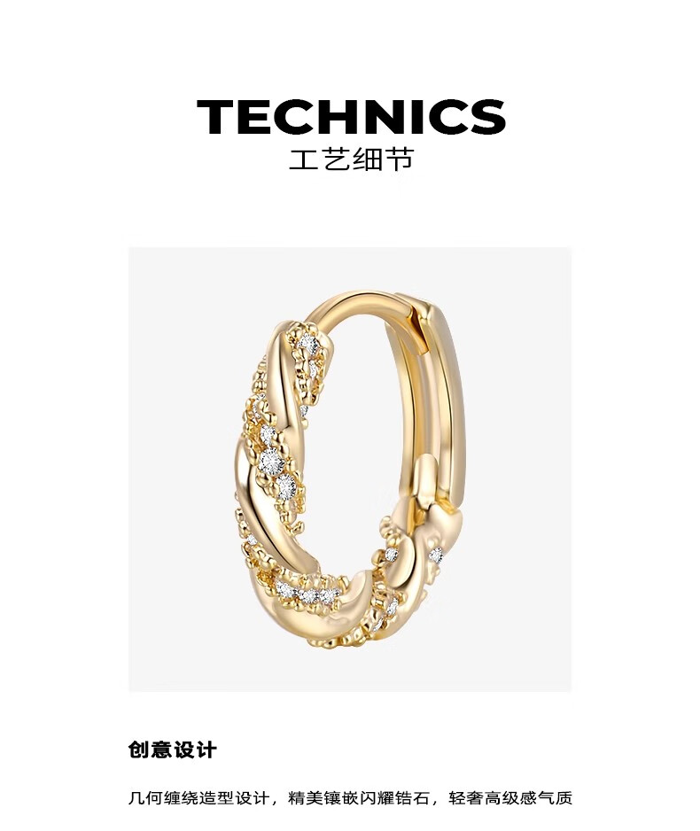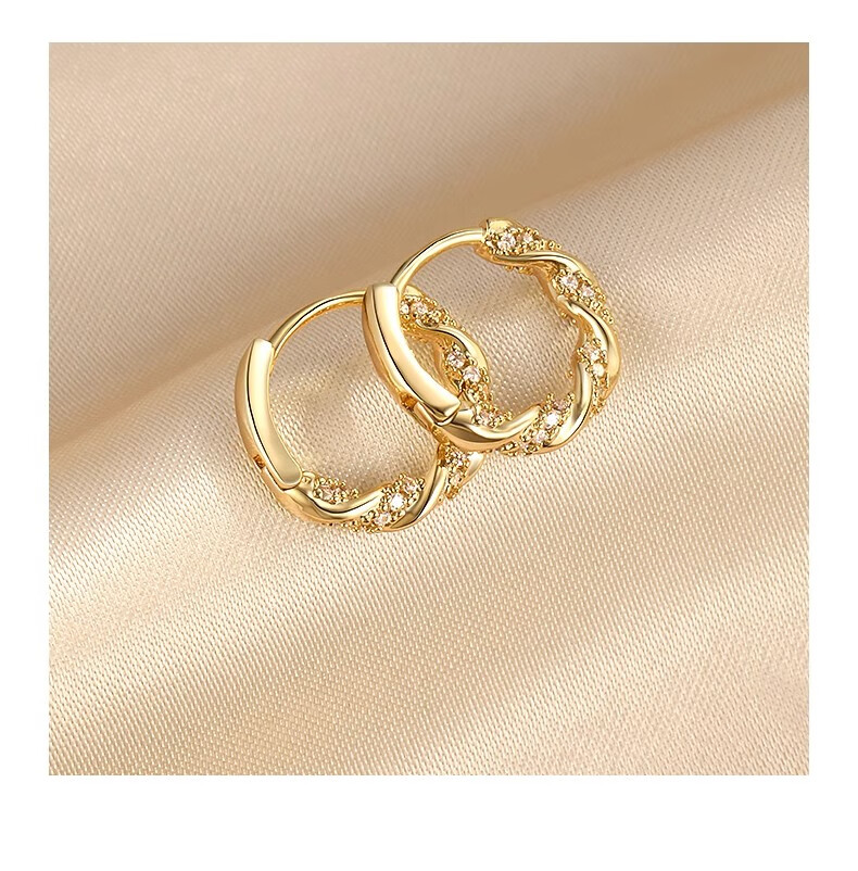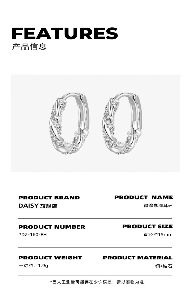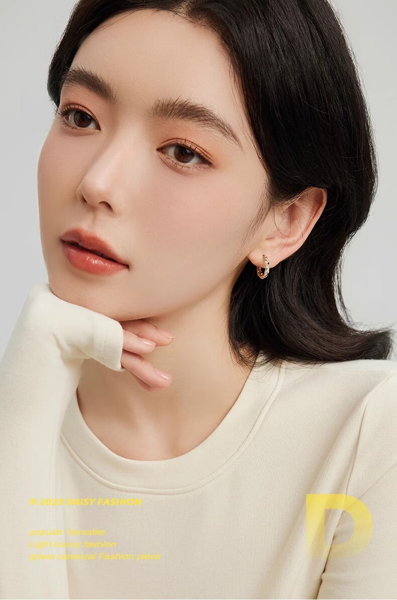 DAISY DREAM micro-embedded winding earrings plain hoop earrings for women 2025 new hot style light luxury high-end earrings niche temperament earrings gold micro-embedded plain hoop earrings