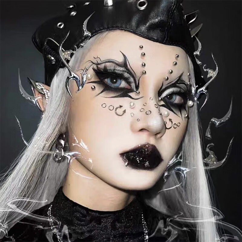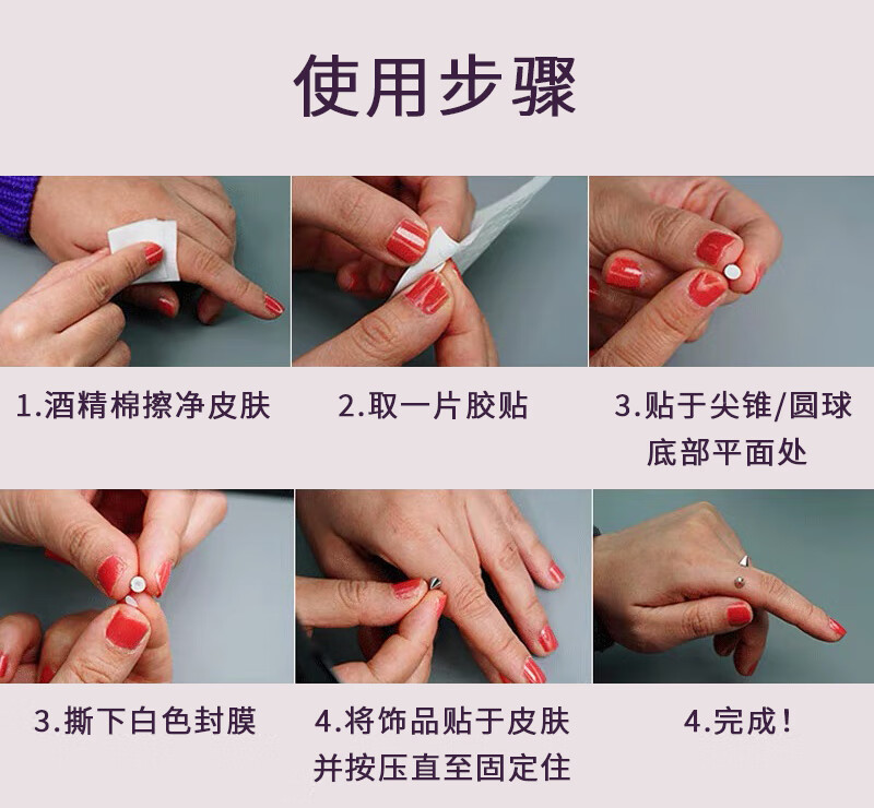 Kunsui non-punching fake eyebrow nails, lip nails, pointed cone balls, handsome dimple nails, devil nose nails, no hole stickers, no hole nails, 5mm spherical + conical nails, 5 each (100 pieces of adhesive stickers)