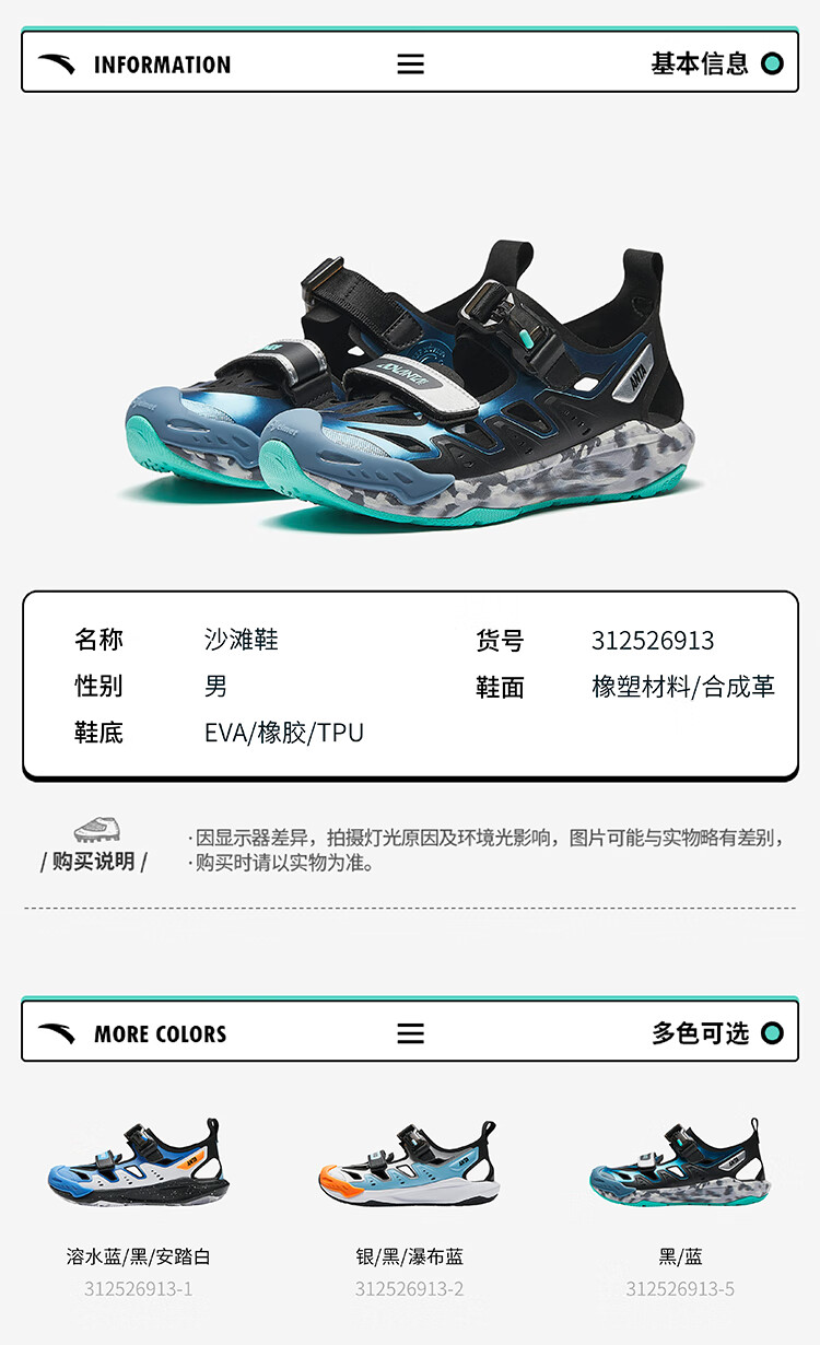 ANTA Children's Qingyu Baotou Sandals Summer New Style Comfortable Cushioning Beach Shoes for Boys and Girls, Trendy Casual Shoes for Large Kids Black/Blue-5 34 The shoe shape is too fat. If you have thin feet, it is recommended to take a smaller size.