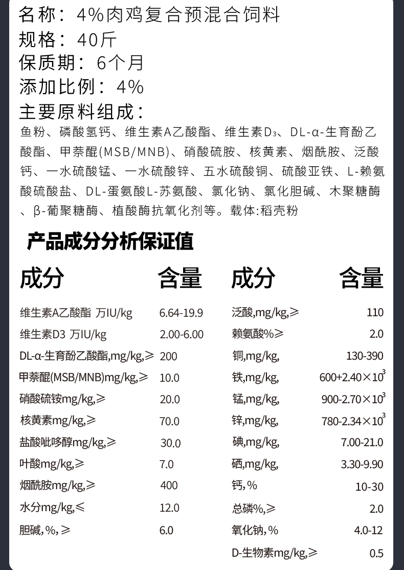Mulandia 4% broiler compound premix feed for fattening chickens supplements fishmeal protein, vitamins and trace elements 4% broiler premix 10 bags 20kg/bag