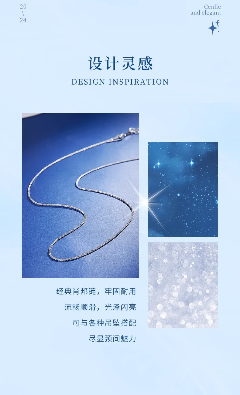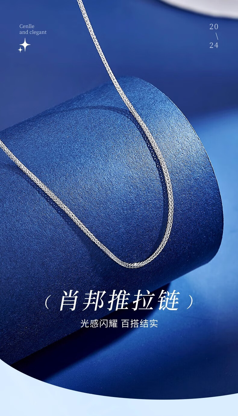 Lao Fengxiang PT950 platinum necklace for men and women, plain chain, platinum Chopard chain, anniversary birthday gift for girlfriend and wife, PT950 platinum Chopard push-pull chain, about 2.7g, brand gift box