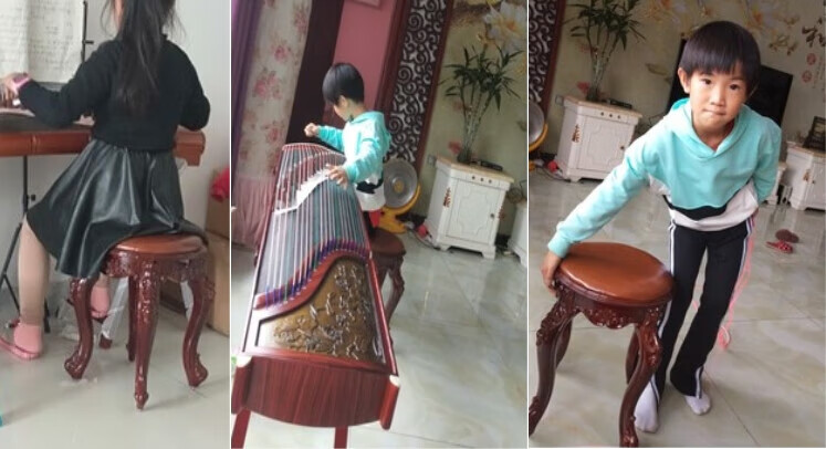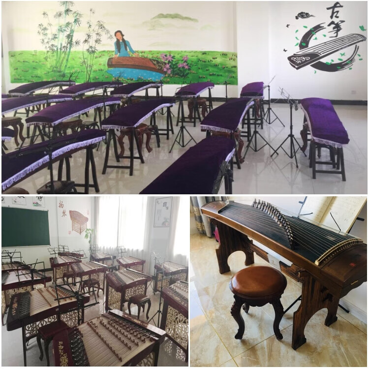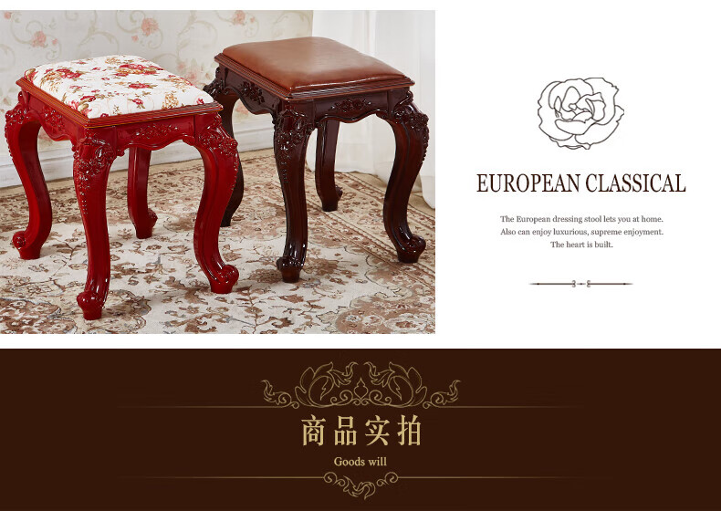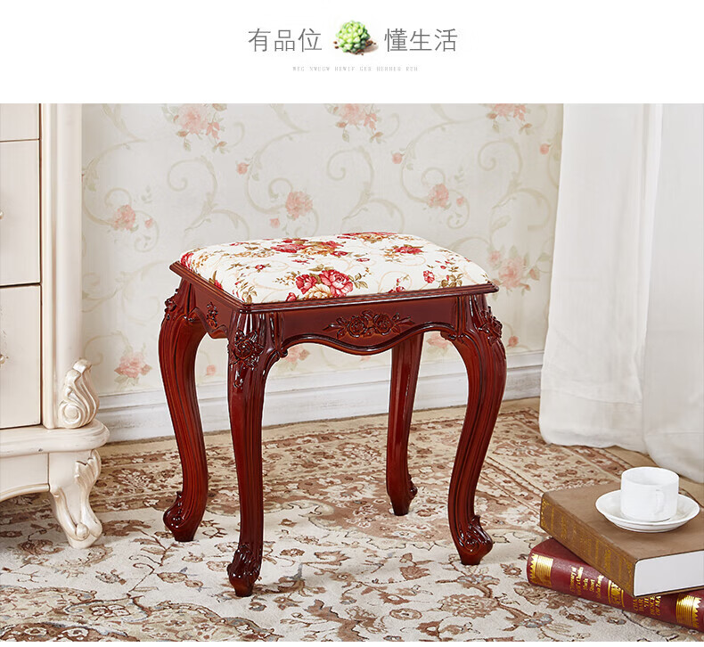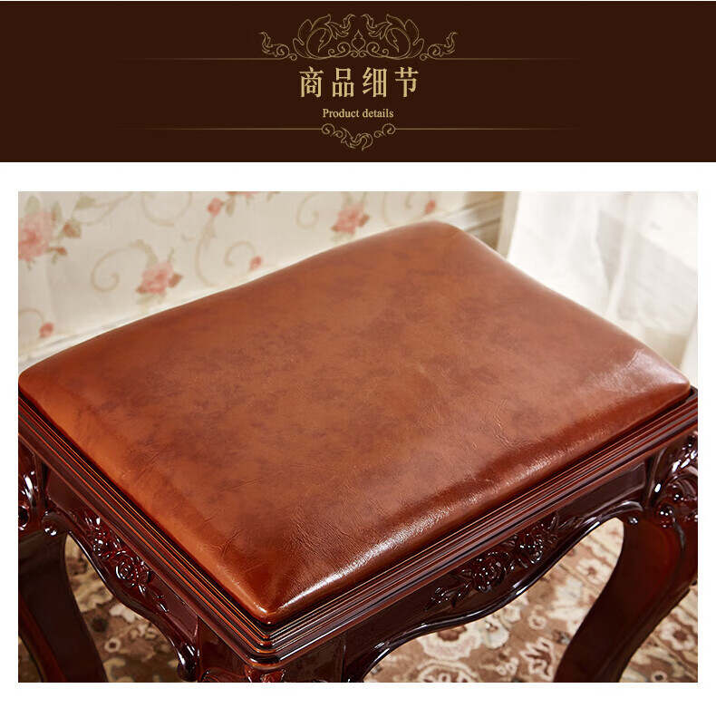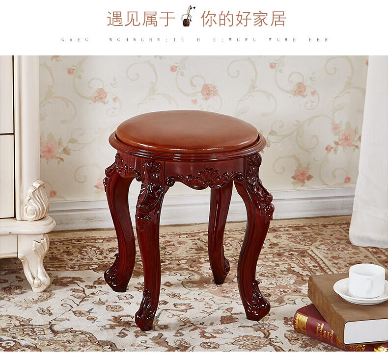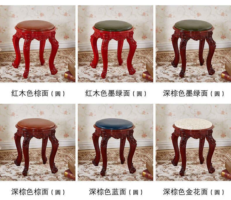 Okwen guzheng stool piano stool single European dressing table stool American makeup chair Chinese classical household square stool round stool dark brown (round) stool brown surface