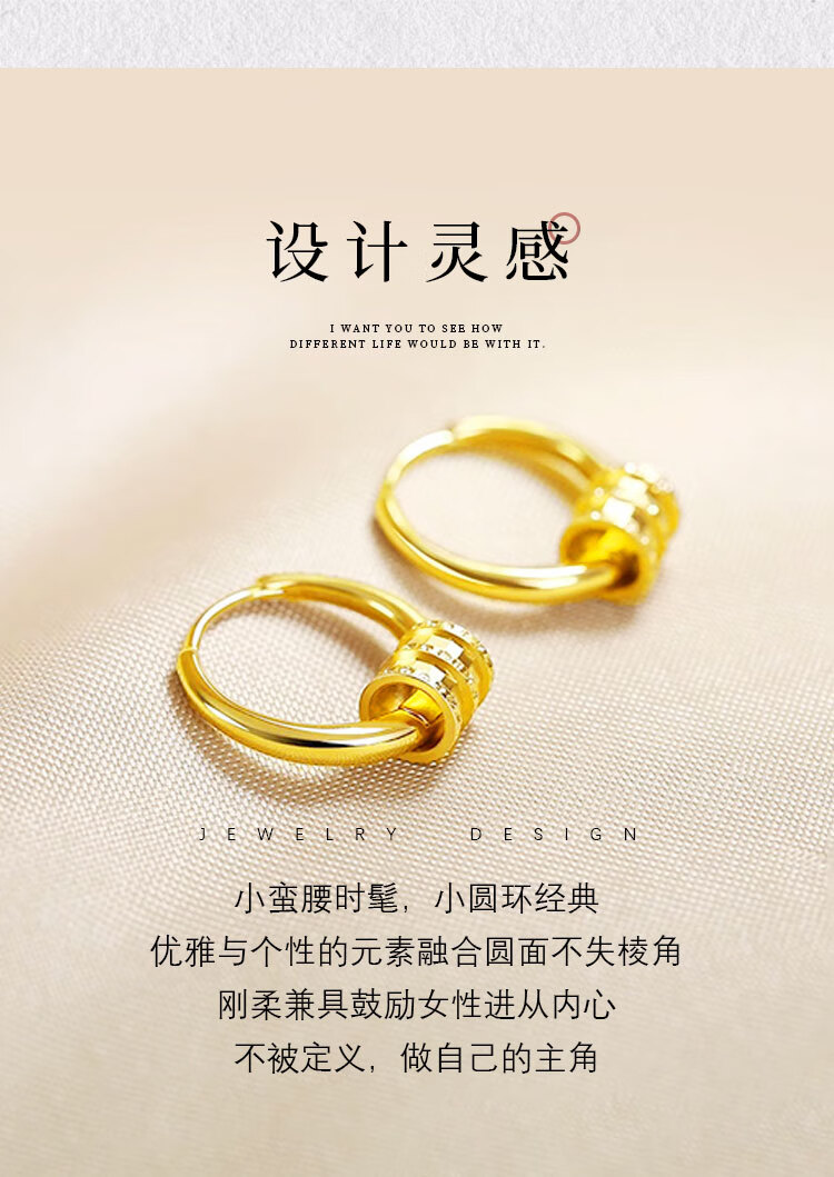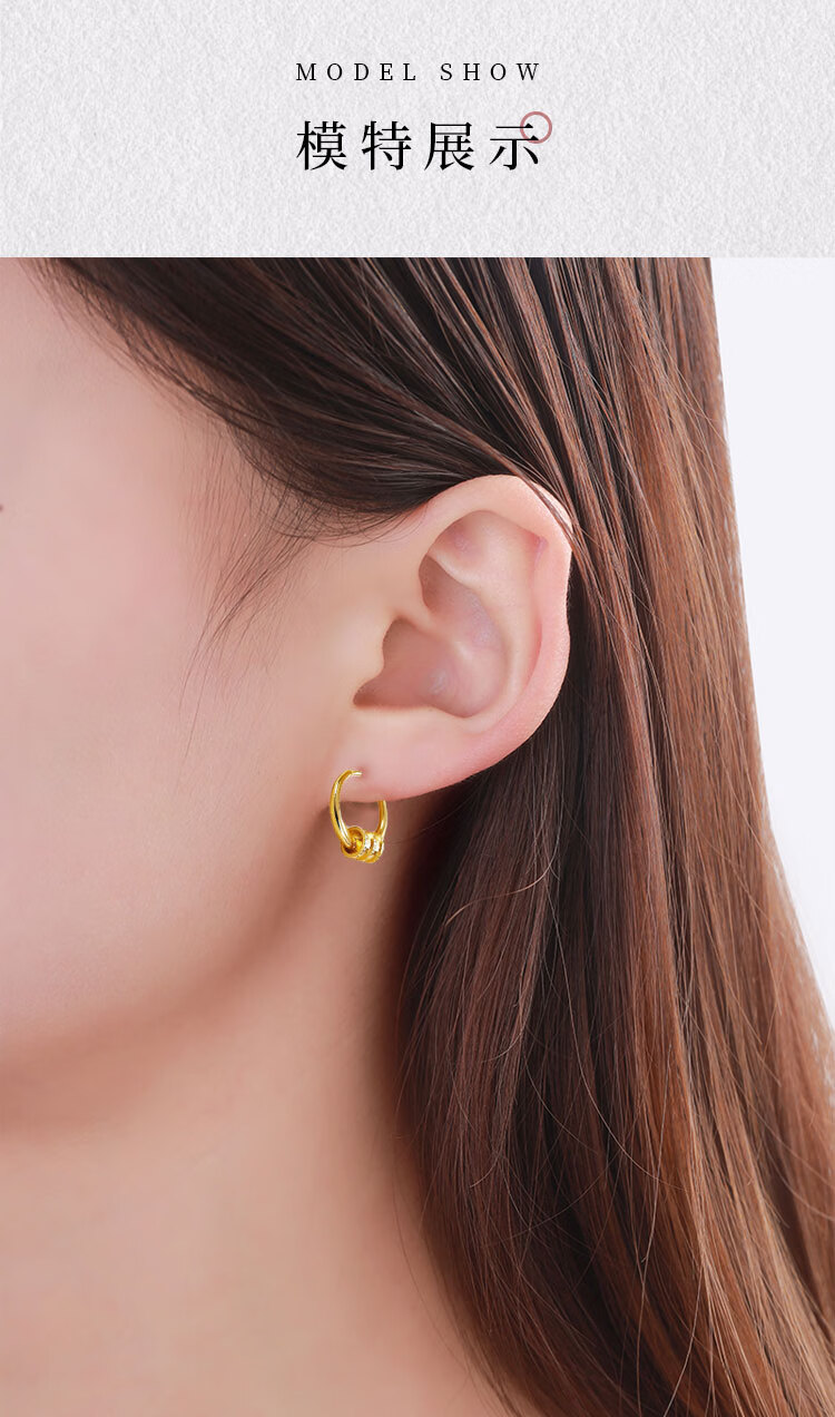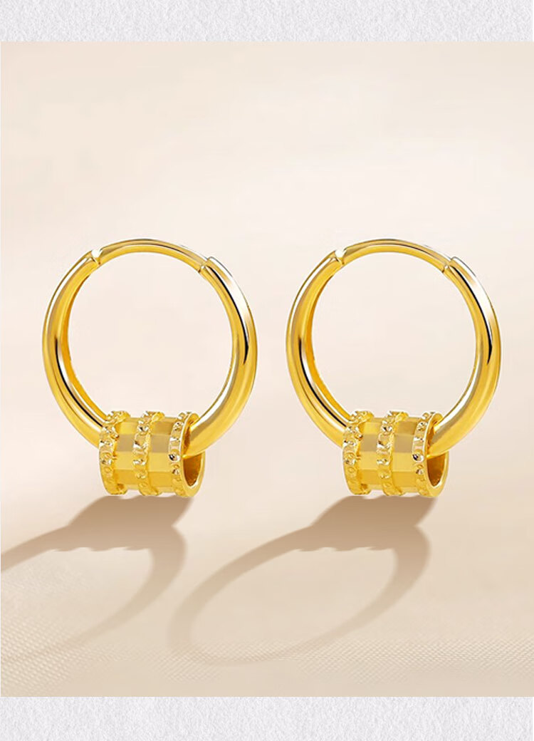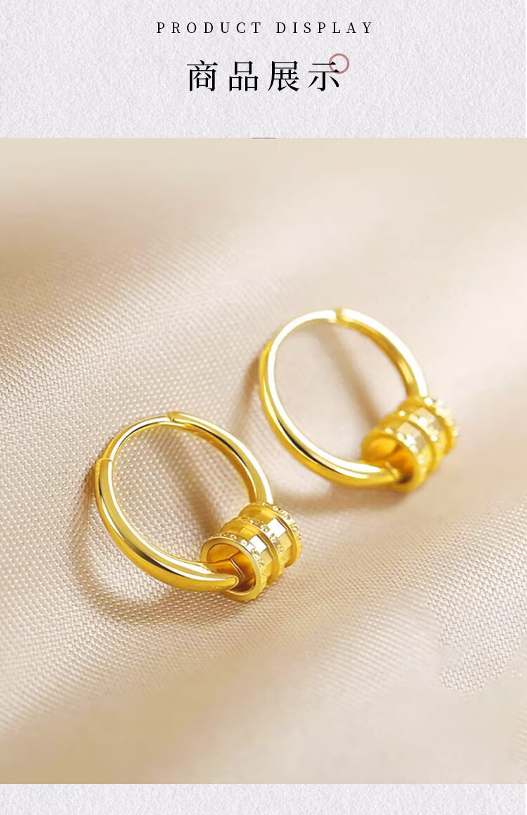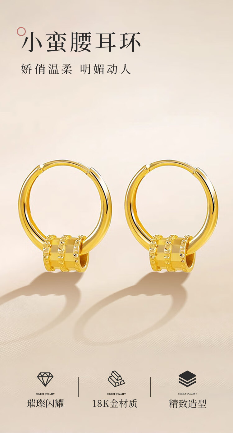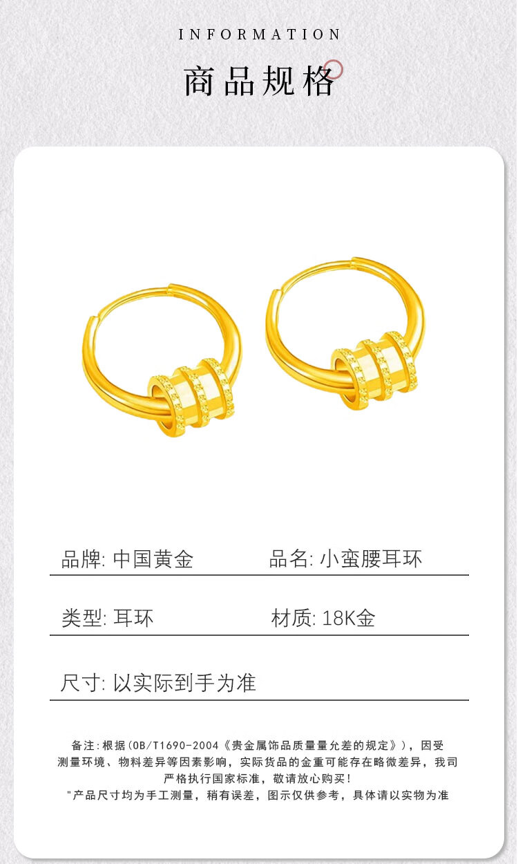 CHINA GOLD 18K gold stud earrings for women, simple and versatile small waist cylinder earrings Valentine's Day birthday gift for girlfriend and lover 18K small waist earrings