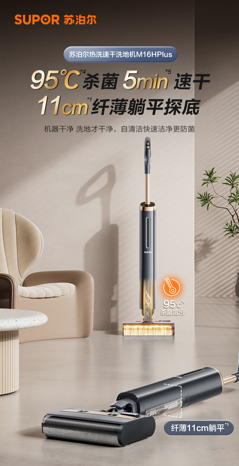 Поломоечная машина SUPOR, бытовая универсальная машина для мытья полов, всасывание и мытье полов, ручной пылесос, интеллектуальная беспроводная электрическая швабра, автоматическая очистка, высокотемпературная стерилизация, сушка воздухом 180, горизонтальное положение EWV-M16H PLUS