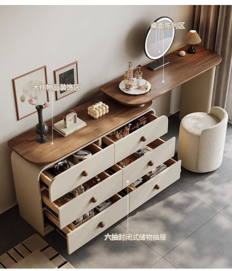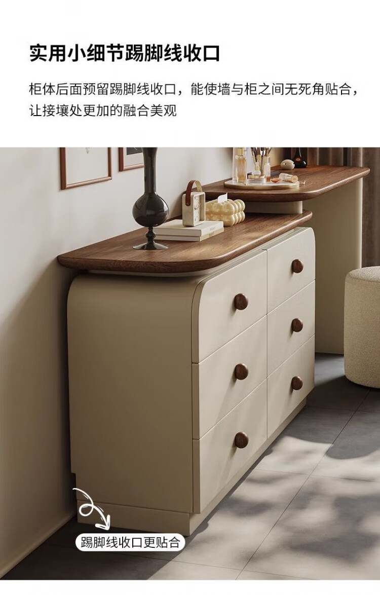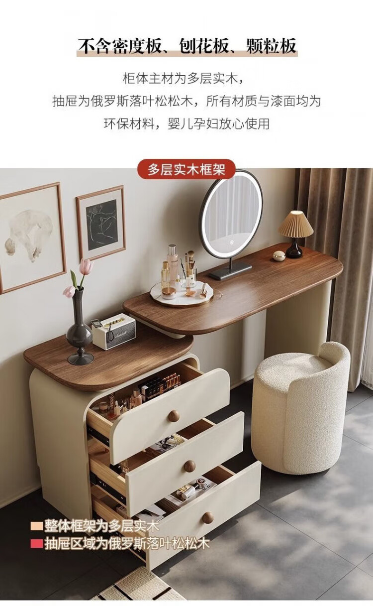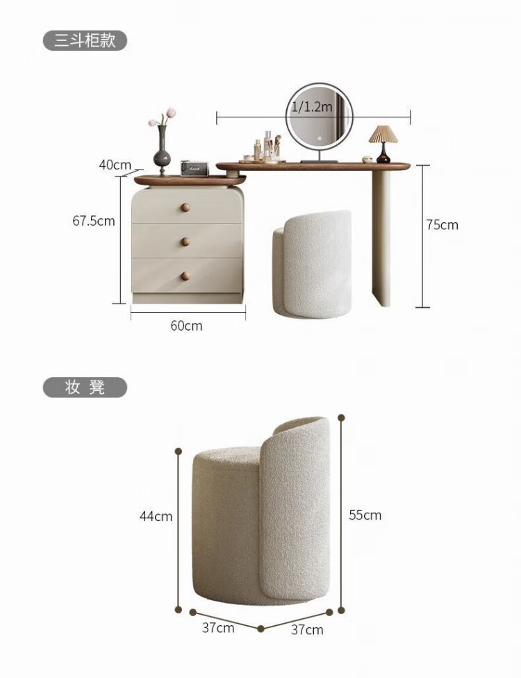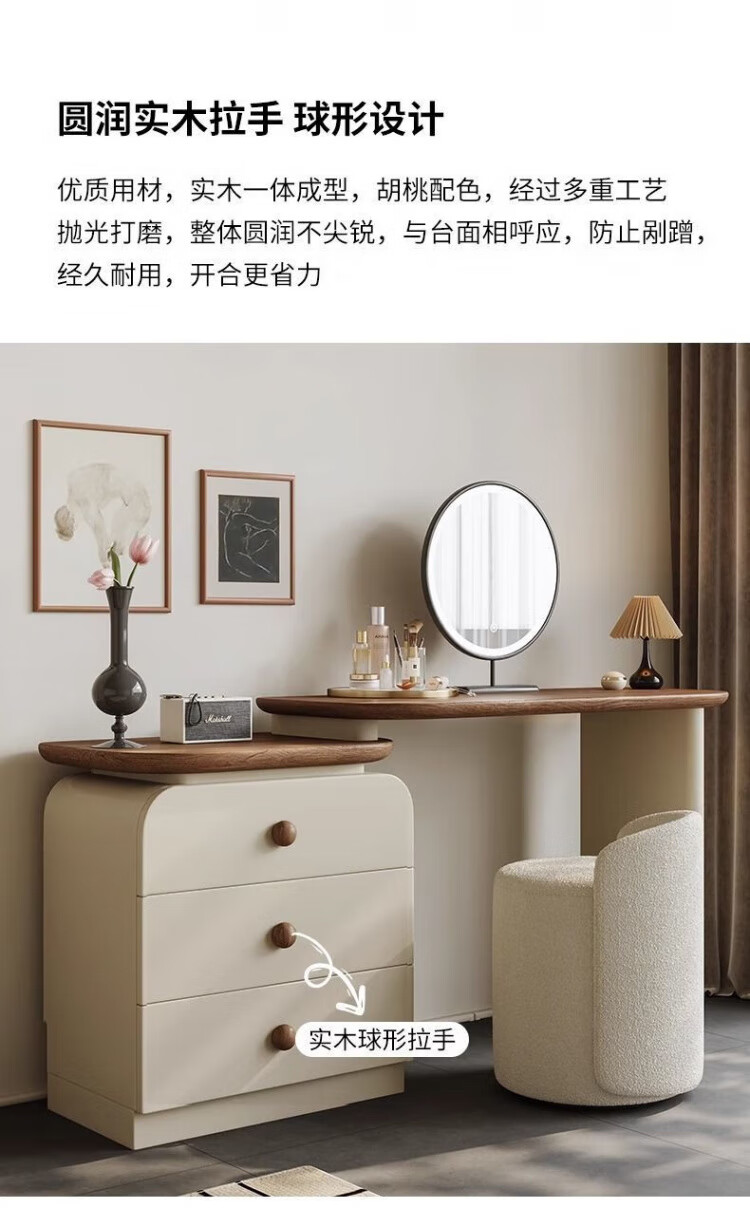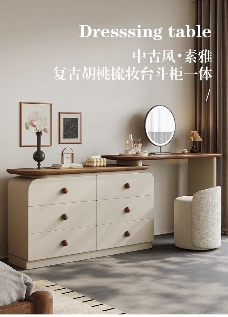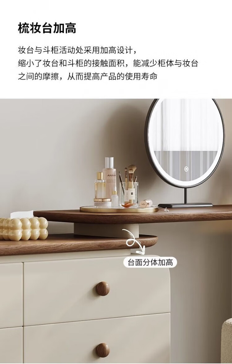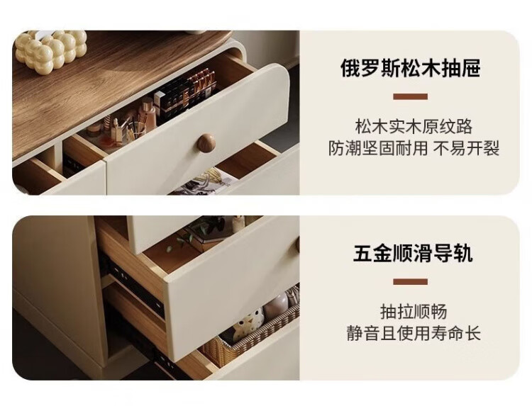 Fubai antique solid wood dressing table storage cabinet integrated cream simple drawer cabinet bedroom bedside cabinet retro dressing table storage three-drawer three-piece set 0.6 three-drawer cabinet + 1m dressing table + makeup stool complete set