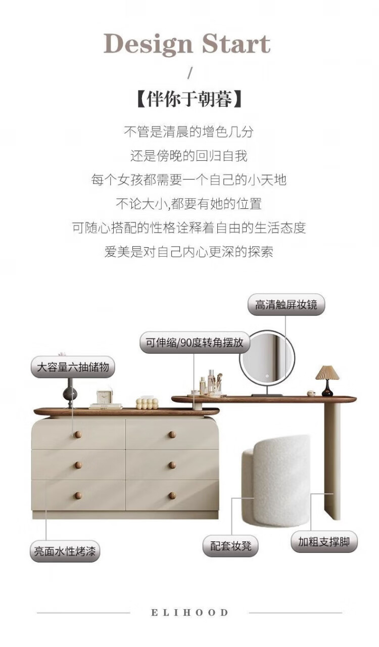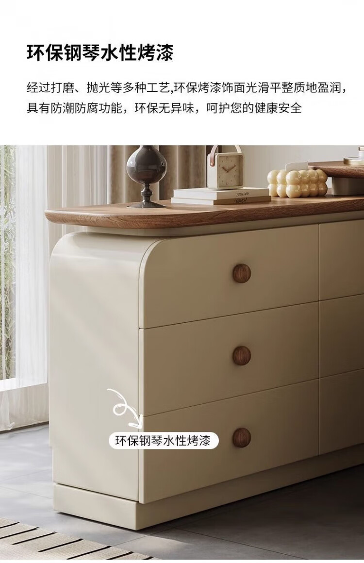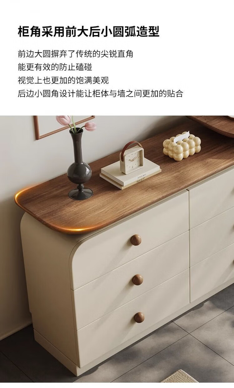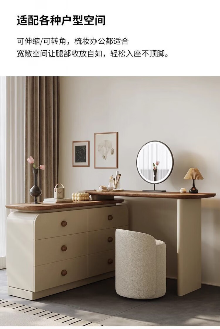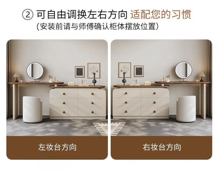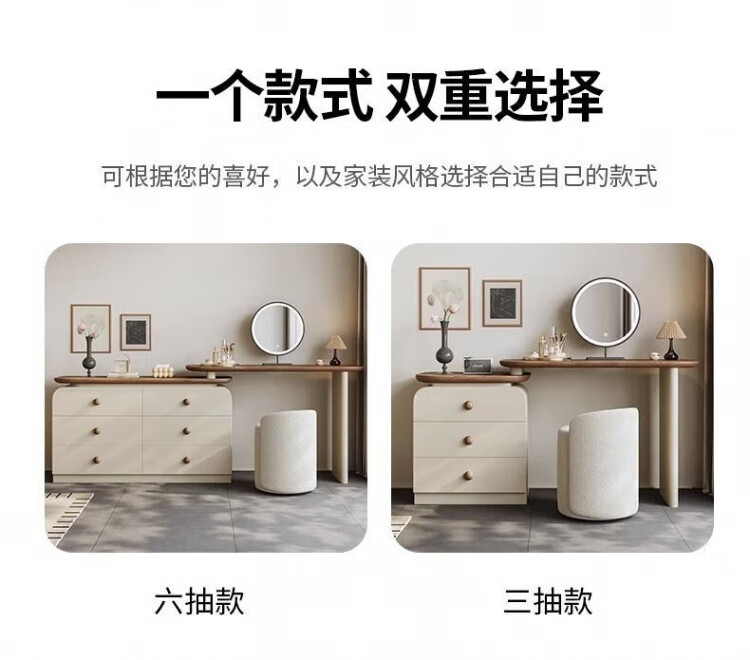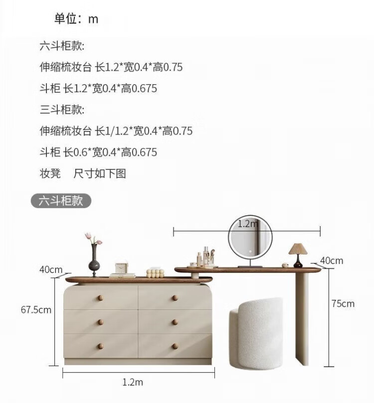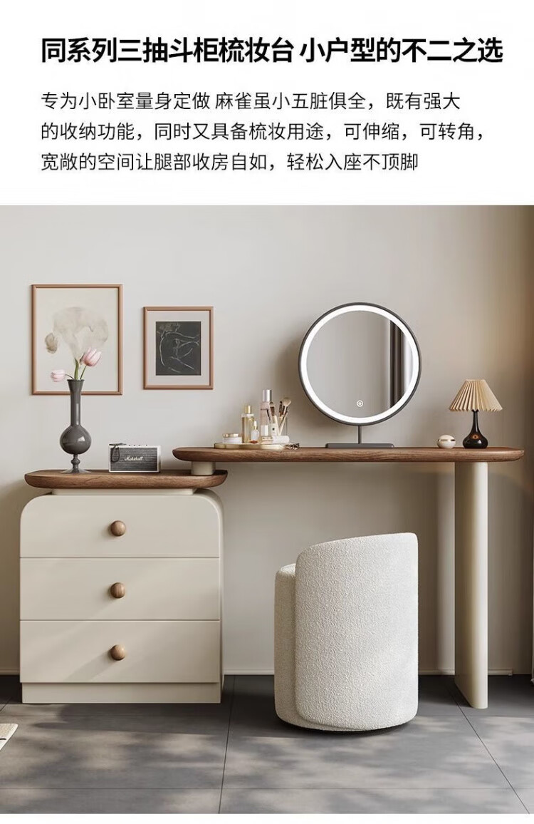 Fubai antique solid wood dressing table storage cabinet integrated cream simple drawer cabinet bedroom bedside cabinet retro dressing table storage three-drawer three-piece set 0.6 three-drawer cabinet + 1m dressing table + makeup stool complete set