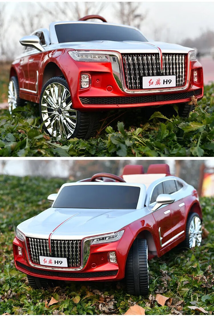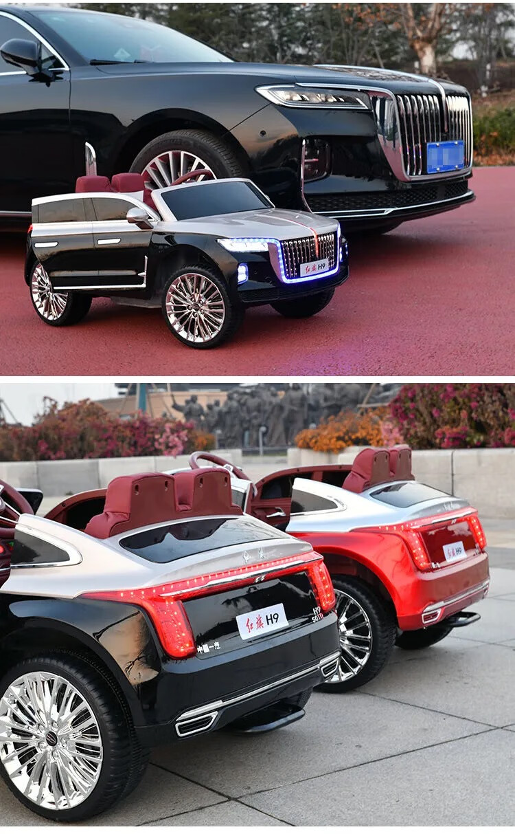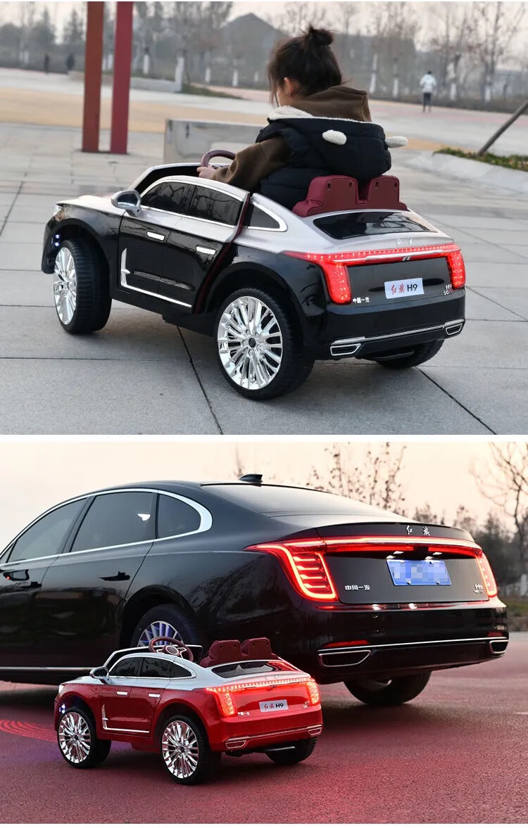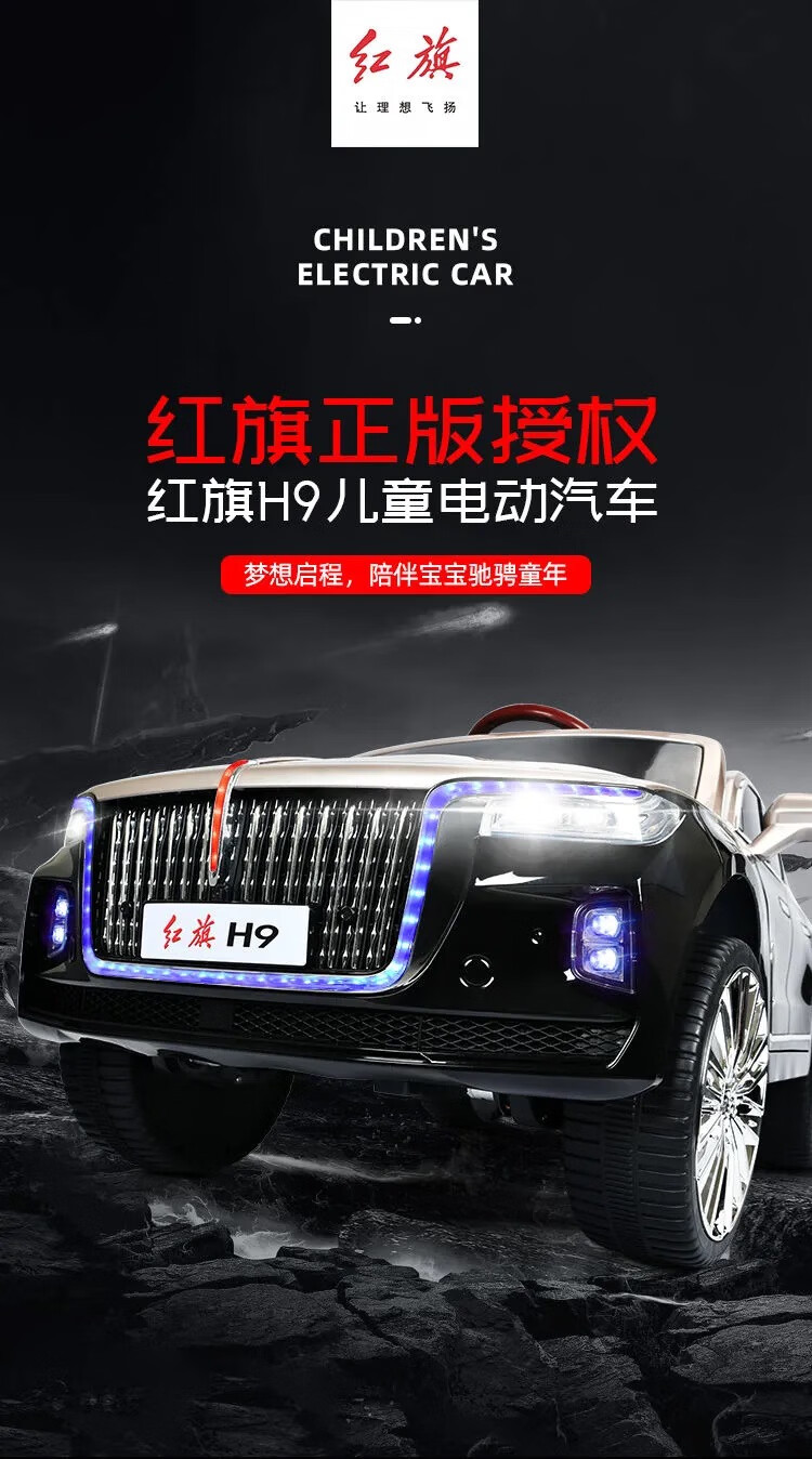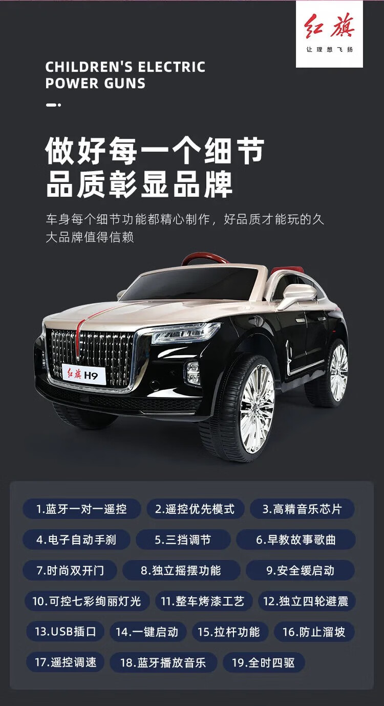 Meitu officially authorized Hongqi H9 children's electric car can sit on four-wheeled car with remote control for boys and girls baby stroller black + Bluetooth + remote control + leather seat + 12V7A battery