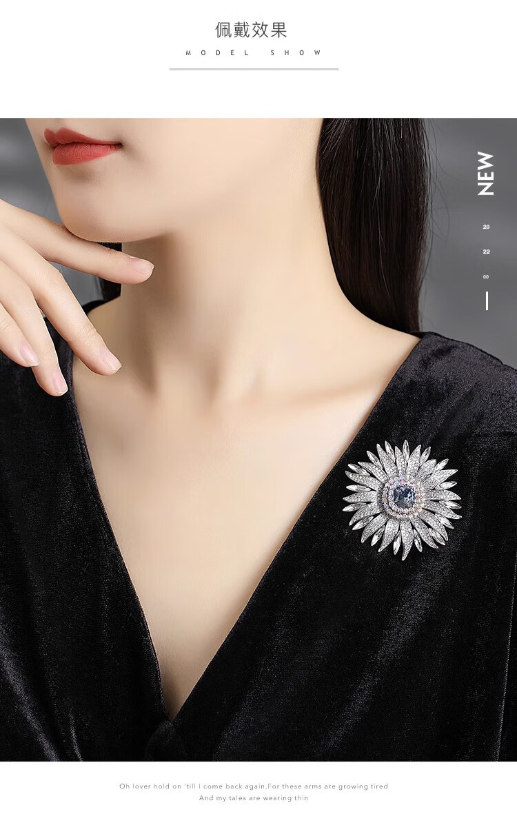 High-end Korean sunflower brooch for women, fashionable temperament, high-end suit pin accessories, sunflower brooch A027