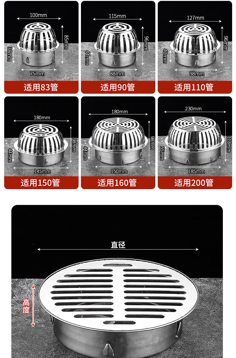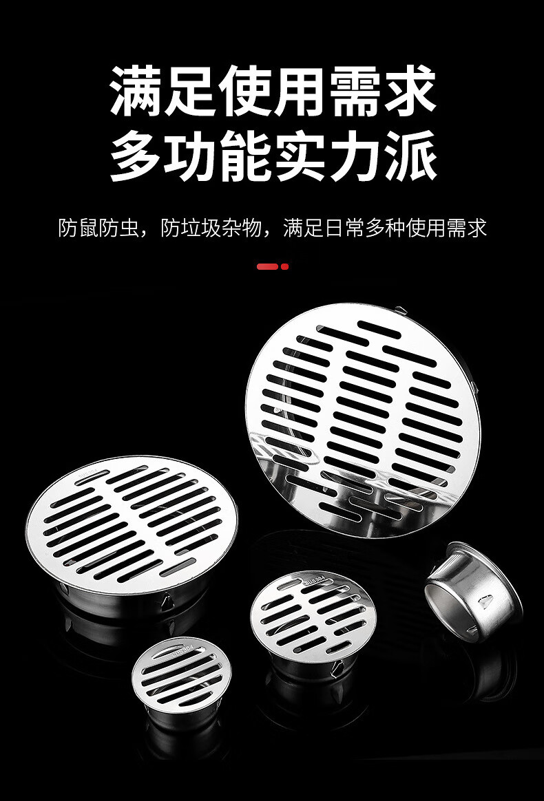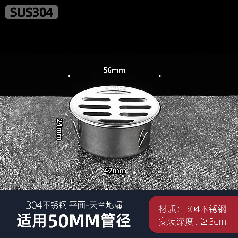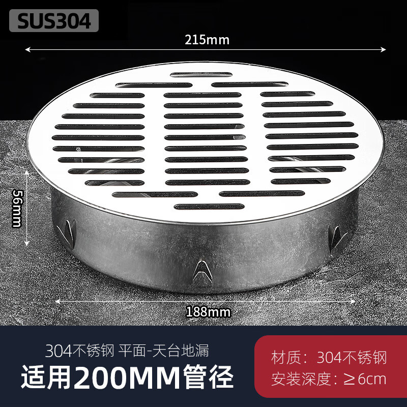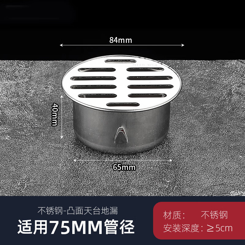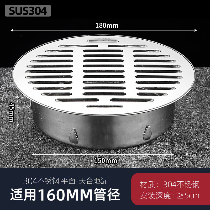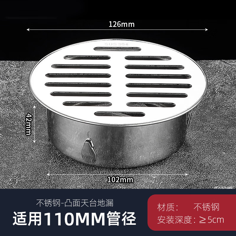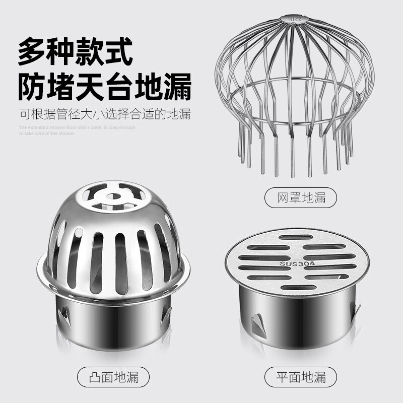 Shantou Lincun 304 stainless steel rooftop floor drain balcony roof outdoor sewer drain pipe anti-blocking round flat filter 110 flat floor drain (304 material)