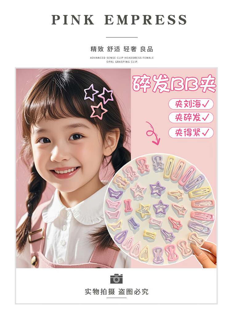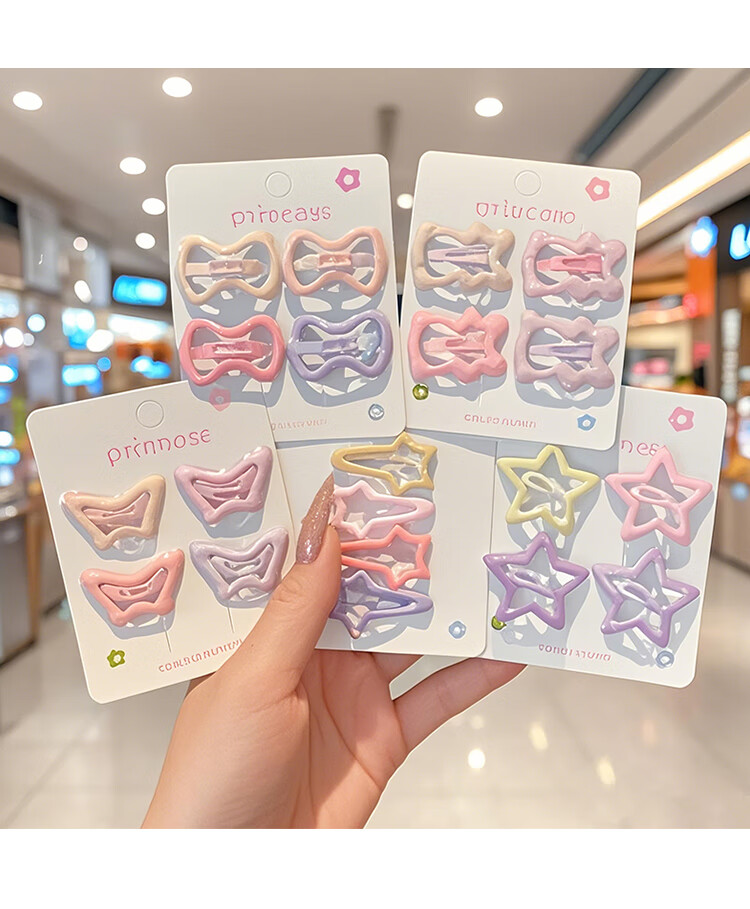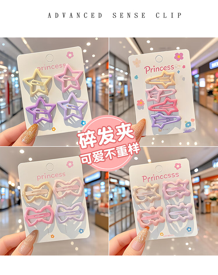 Dopamine children's hair clip baby hollow side clip girls hair clip bangs forehead broken hair clip does not hurt hair headwear 13# Qianmeng 12 pieces