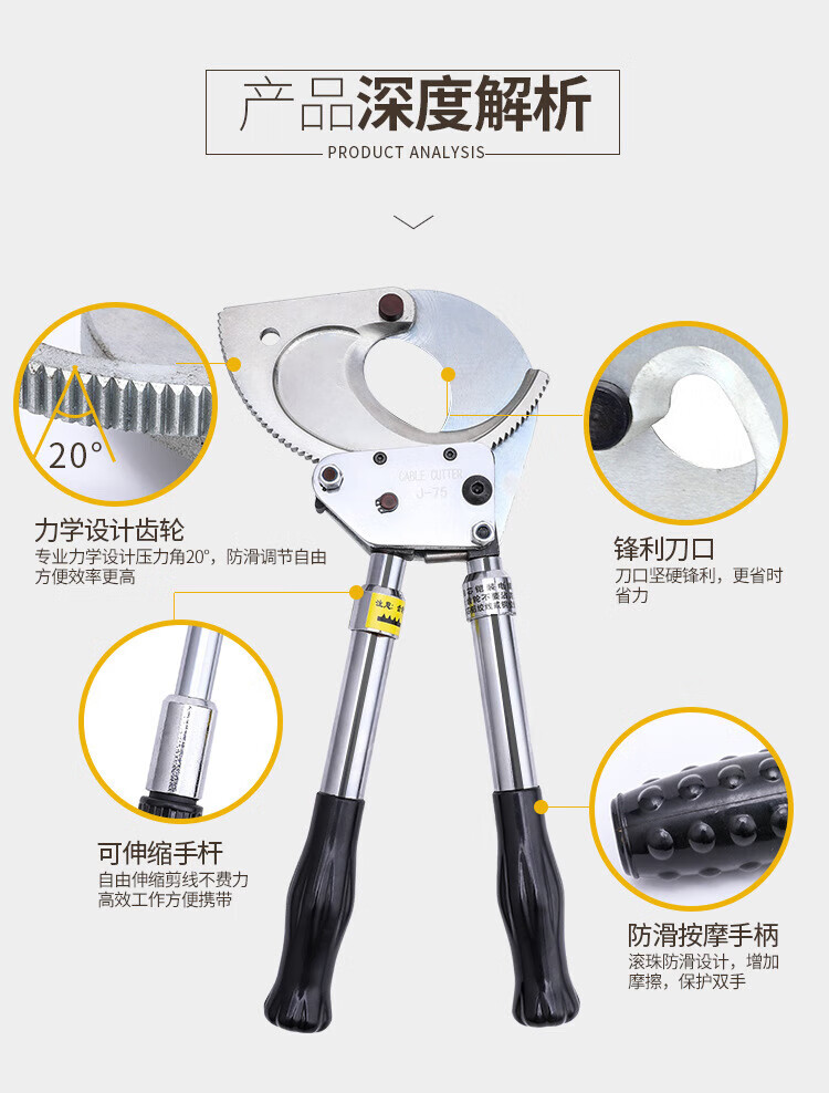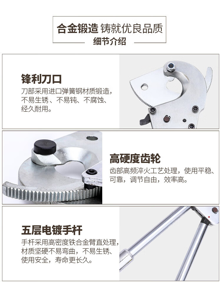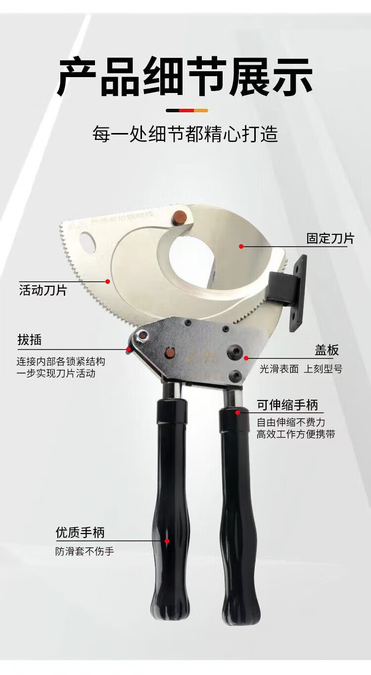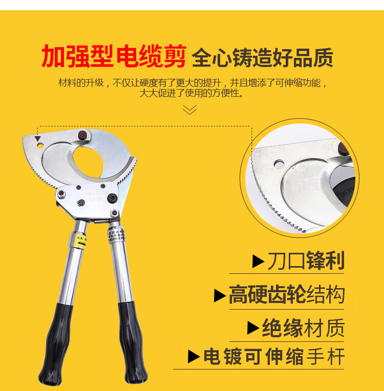 Cable Scissors Ratchet Scissors Gear Type Bolt Cutters Electrician Wire Steel Strand Cutting Wire Cutting Cable J40 Ratchet Cable Scissors Copper and Aluminum Below 30