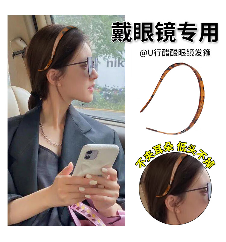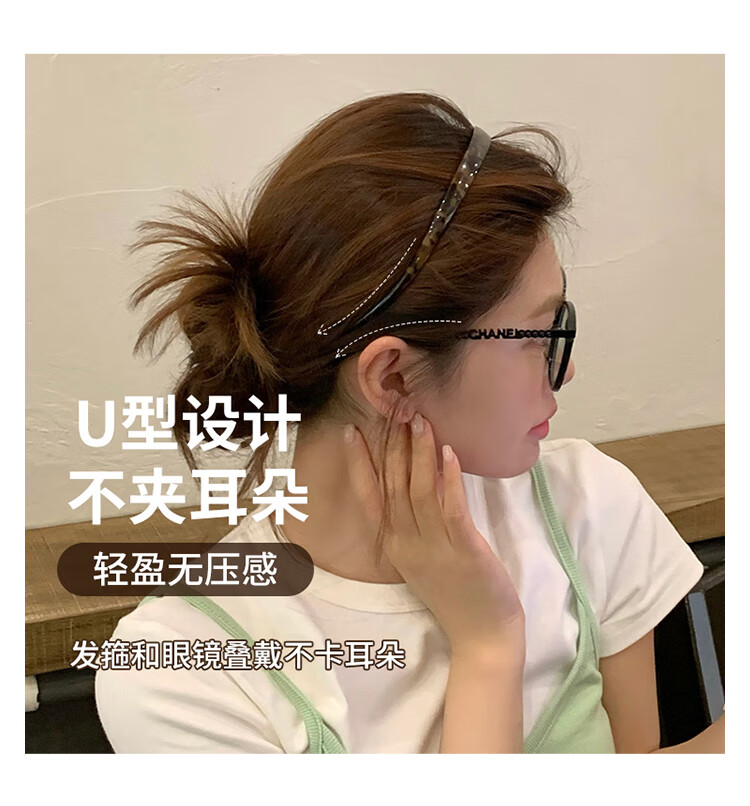 U-shaped glasses headband for women 2025 new high skull headband hair hole hairpin daily wear hair bundle headdress 1# dark brown tortoise shell color