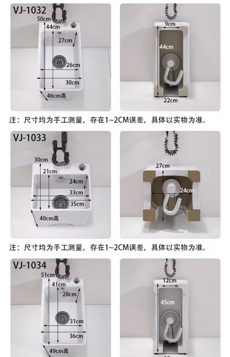 Shantou Lincun small apartment balcony mop pool extremely narrow bathroom wash mop pool ultra narrow small household narrow and long mop pool basin VJ-1000 small square model 30x30x40