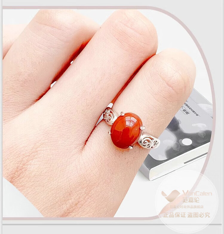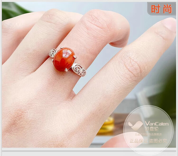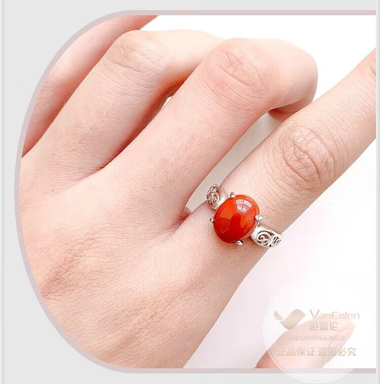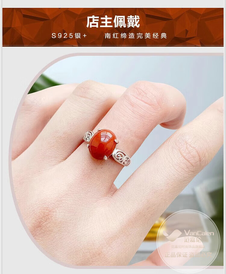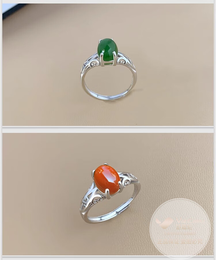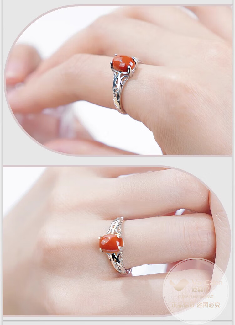 Fan Jialun Silver Ring Women's Southern Red Agate Women's S925 Silver Women's Ring Jewelry Colored Gemstone Ring Single Ring Green