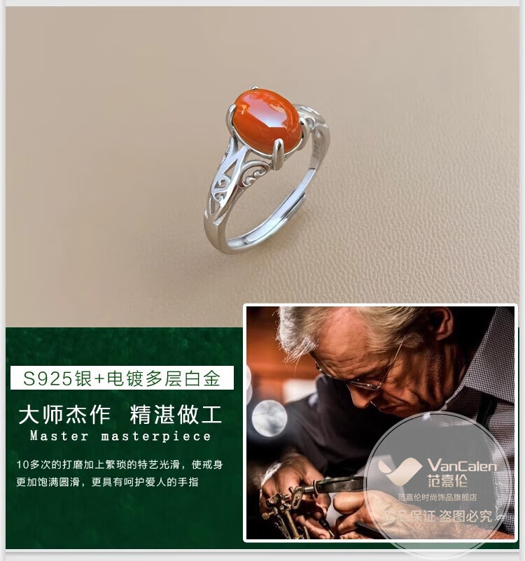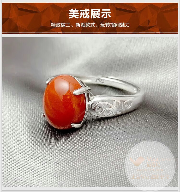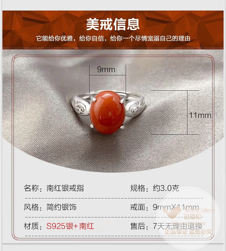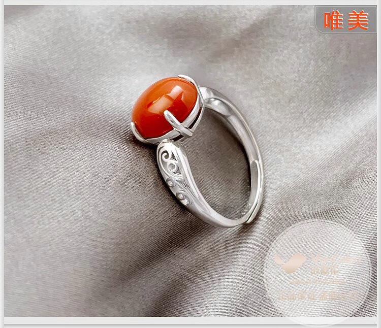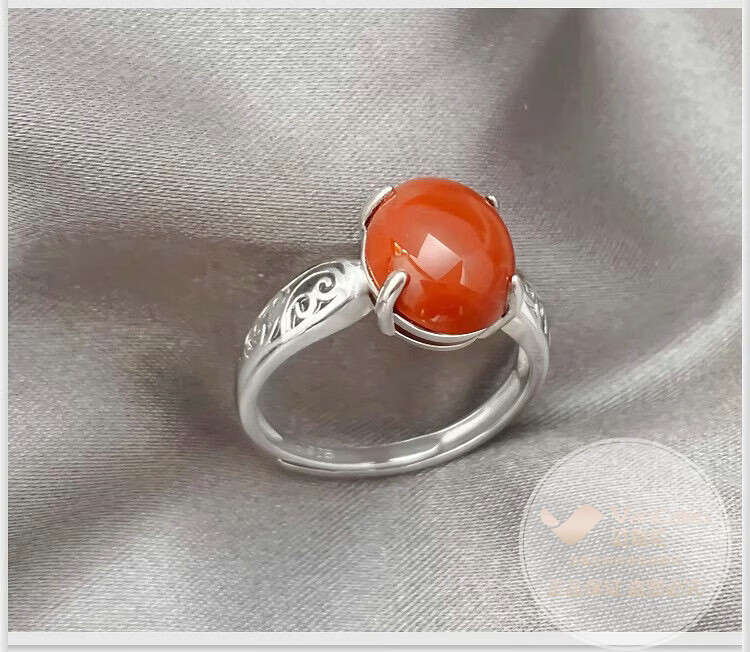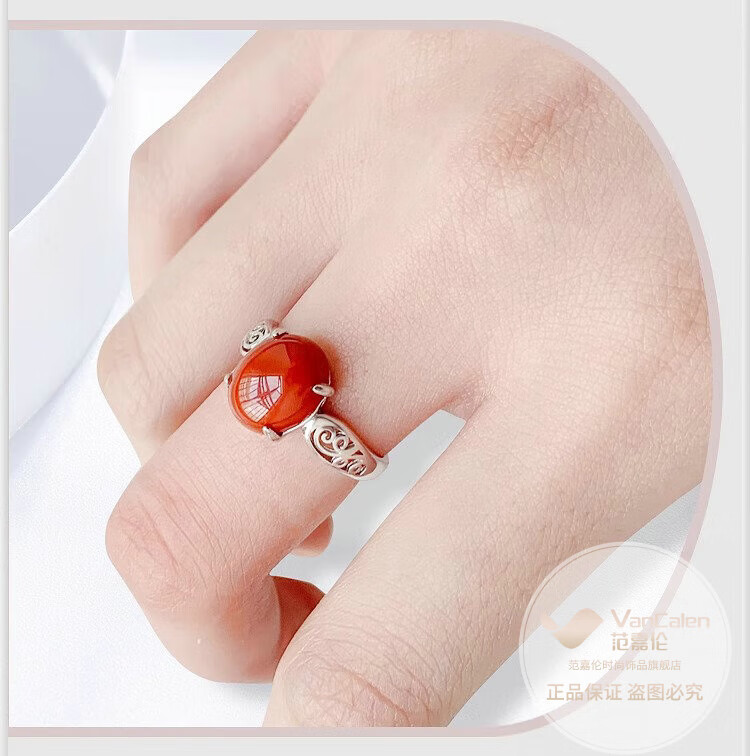 Fan Jialun Silver Ring Women's Southern Red Agate Women's S925 Silver Women's Ring Jewelry Colored Gemstone Ring Single Ring Green